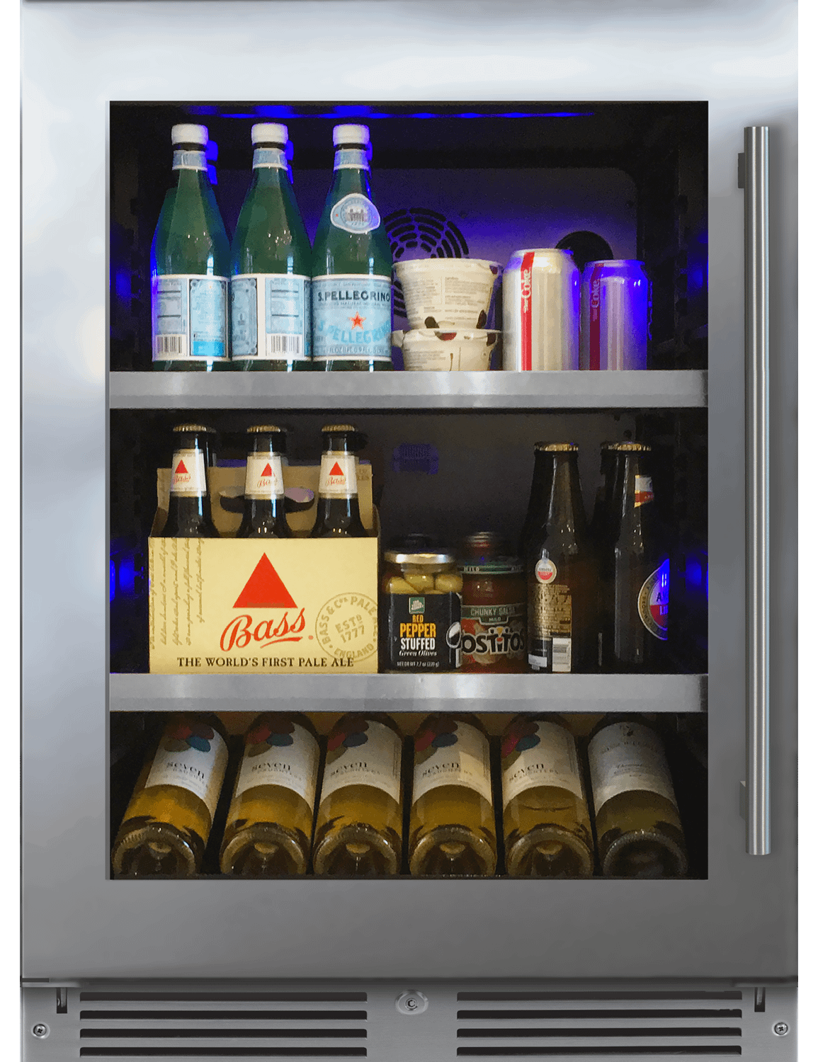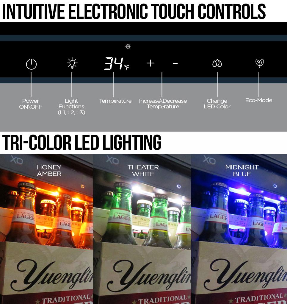 Easy to Store - Easy to Find. Your XO undercounter Beverage Center is the quick, convenient way to keep all your favorite beverages close at hand. The clear glass shelves fully extend while loaded to let you see and find everything at a glance. And because they easily adjust to 15 different positions, you can quickly configure the beverage center into your beverage center.