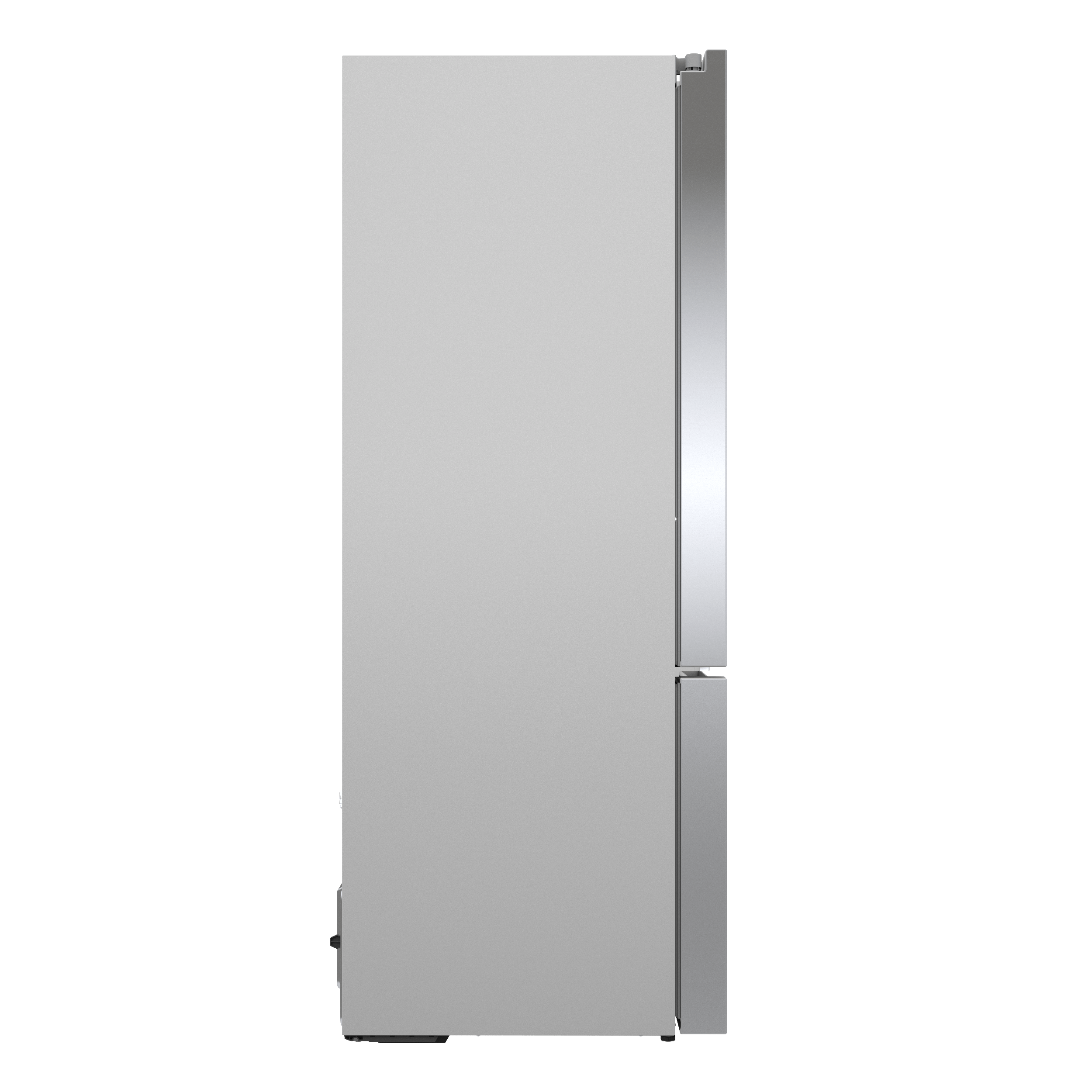 The bottom freezer features full-extension drawers and no-frost technology, ensuring hassle-free maintenance by preventing ice buildup. The LED lighting illuminates every corner of the refrigerator and freezer, providing bright, energy-efficient visibility.