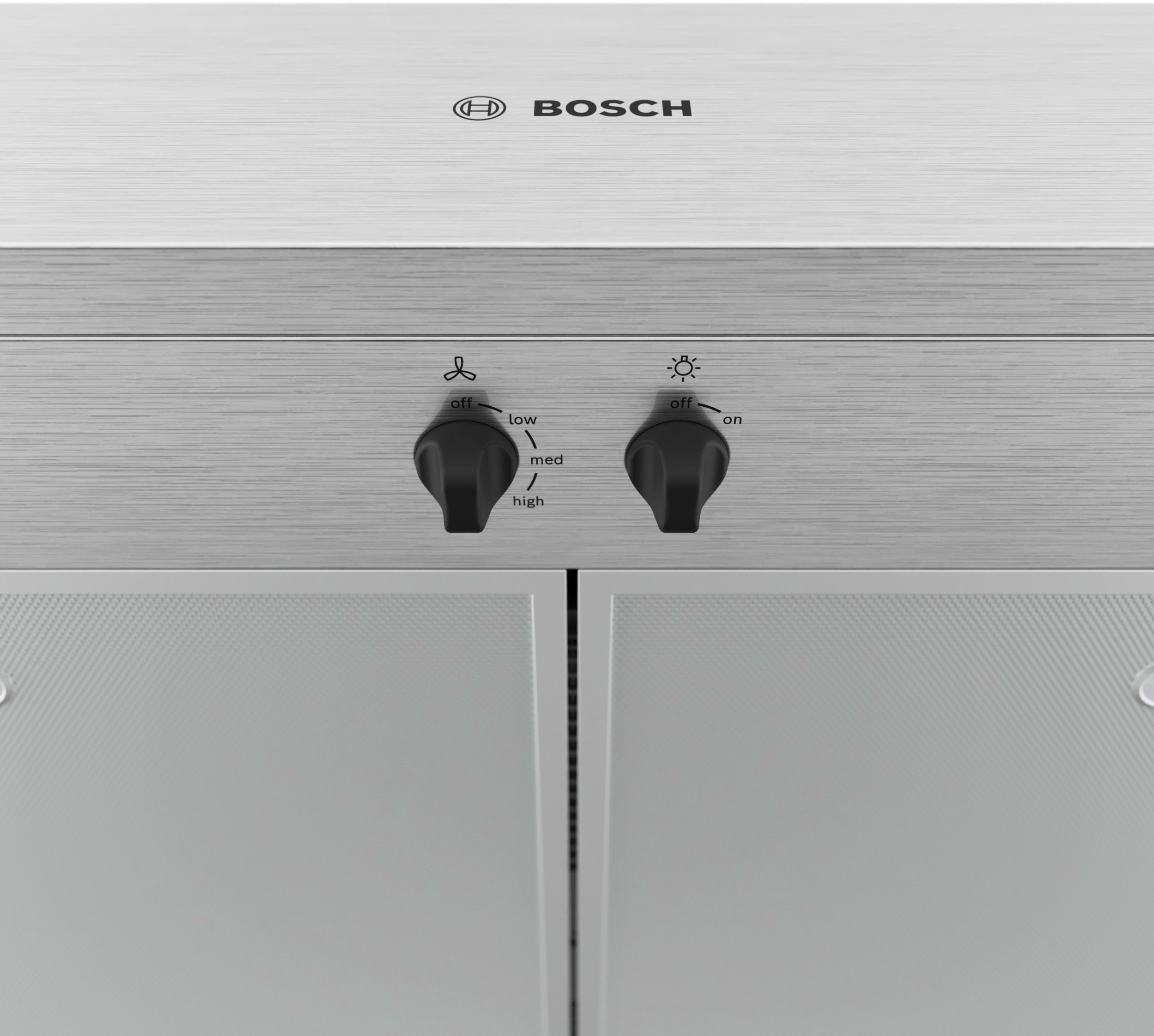 The Bosch 300 Series 30" Under-Cabinet Range Hood (Model: DUH30253UC) combines functionality and style to enhance your kitchen ventilation. Its stainless steel design complements modern kitchen aesthetics, while the 300 CFM blower effectively removes unwanted smoke, steam, and cooking odors. The hood offers three fan speeds, allowing you to adjust the ventilation intensity to match your cooking needs, all controlled via intuitive rotary knobs. Two LED lights provide bright illumination over your cooktop, improving visibility during meal preparation. The dishwasher-safe aluminum mesh filters capture grease and particulates, making cleanup simple and convenient. Additionally, the hood supports both ducted and recirculating installations (with an optional accessory kit), providing flexibility to suit various kitchen configurations.