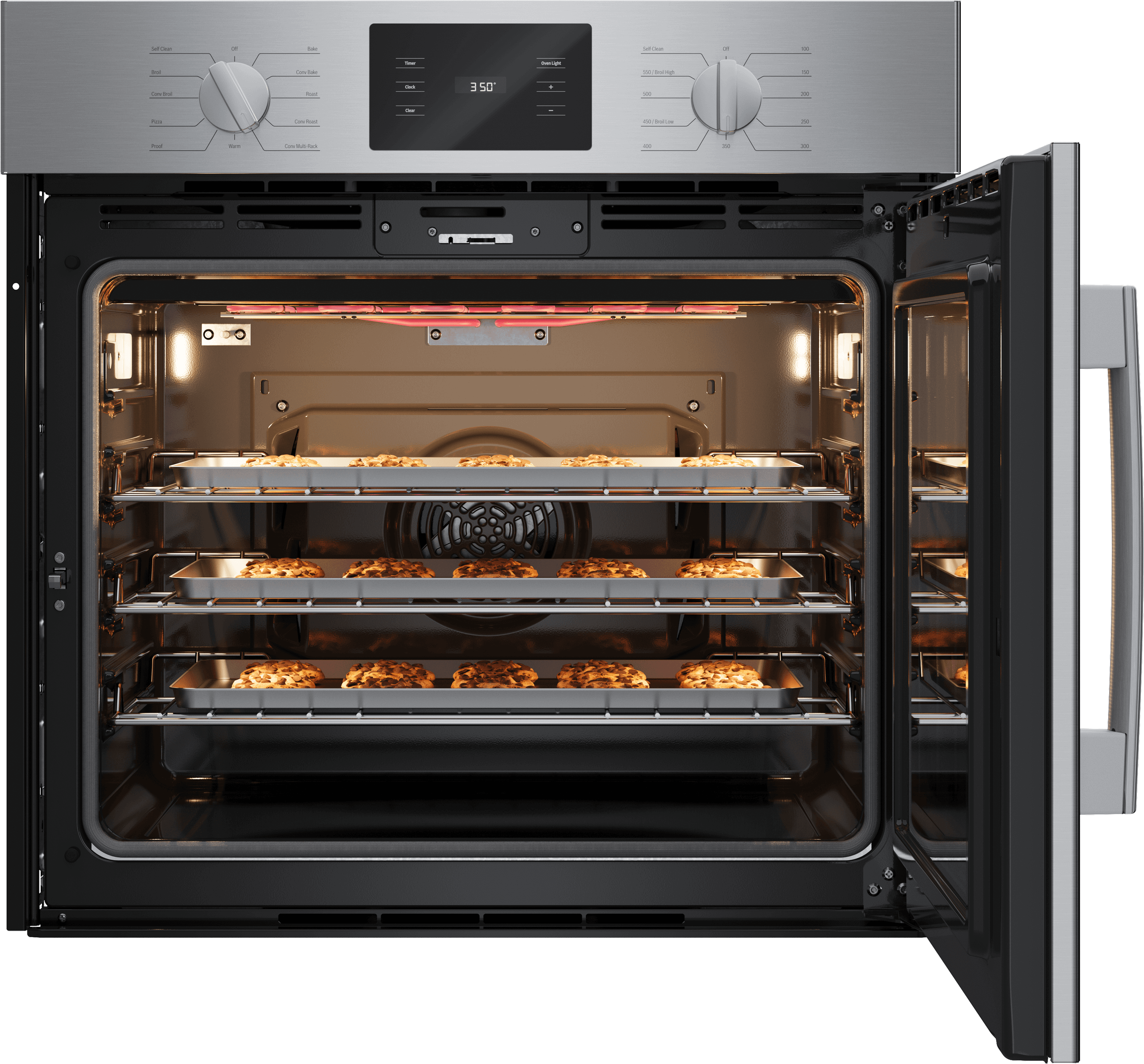 Uses a third heating element and fan to evenly circulates air around the cavity so you get consistently even results. - Premium knobs - Heavy duty metal knobs provide a premium feel and professional-style for your kitchen