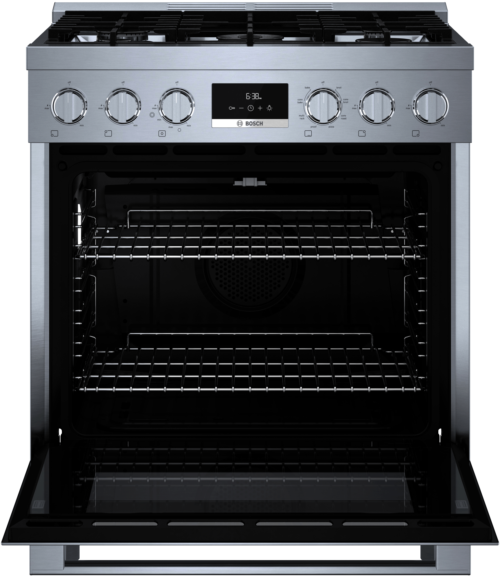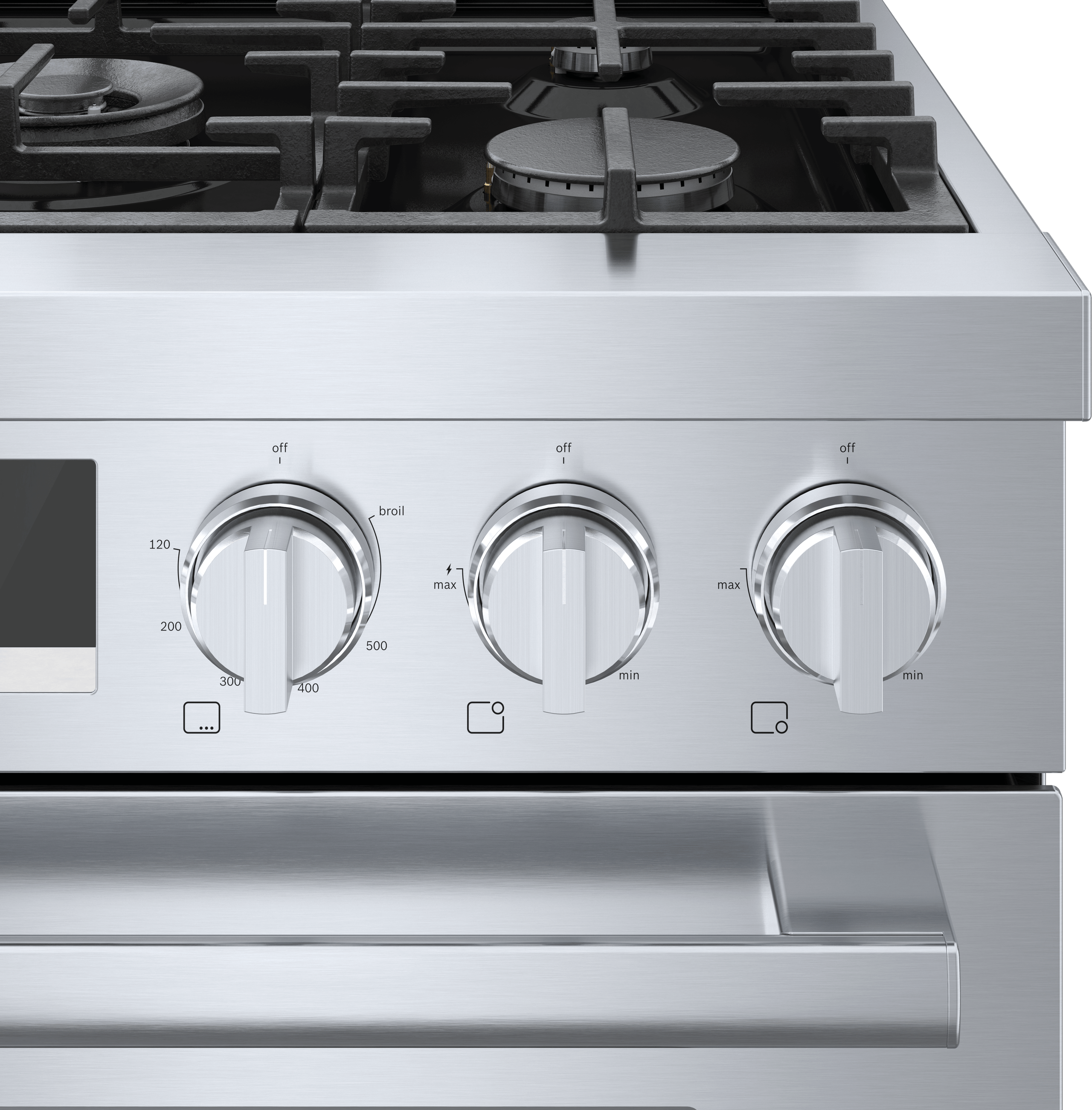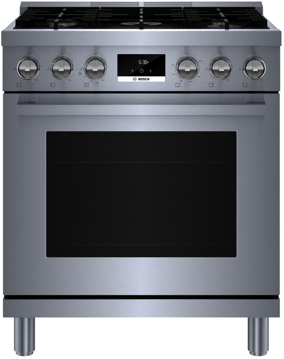 The Bosch HDS8055U is a 30-inch slide-in dual-fuel range from the 800 Series, combining the precise control of a gas cooktop with the even baking performance of an electric convection oven. The stainless steel finish adds a professional touch to your kitchen, while the slide-in design provides a seamless, built-in look.