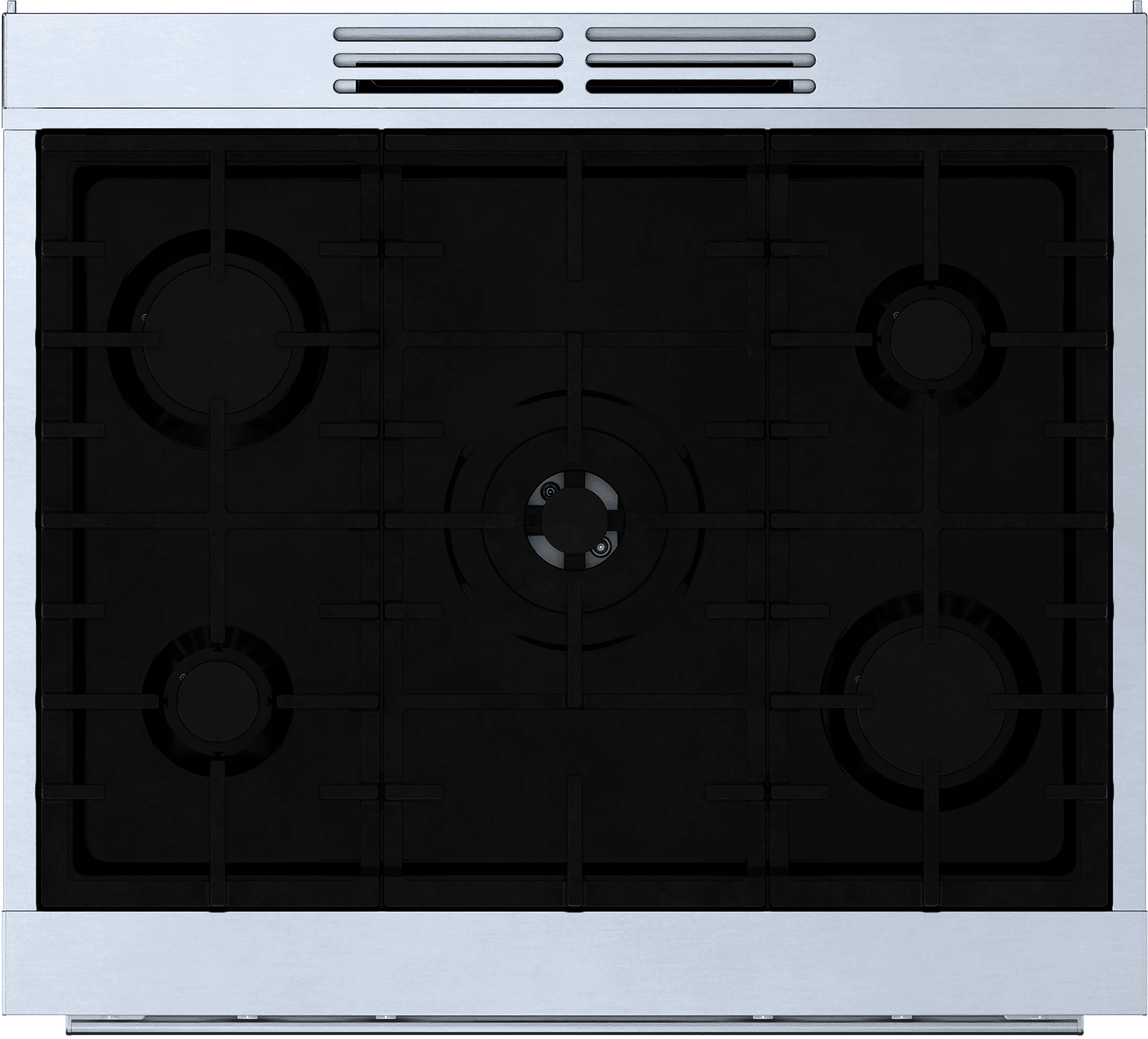 The five sealed gas burners include an 18,000 BTU dual-ring burner for rapid boiling and high-heat searing, as well as a 5,000 BTU simmer burner for delicate sauces and slow cooking. The spacious 4.8-cubic-foot convection oven features True European Convection for consistent heat distribution, making it ideal for multi-rack cooking.