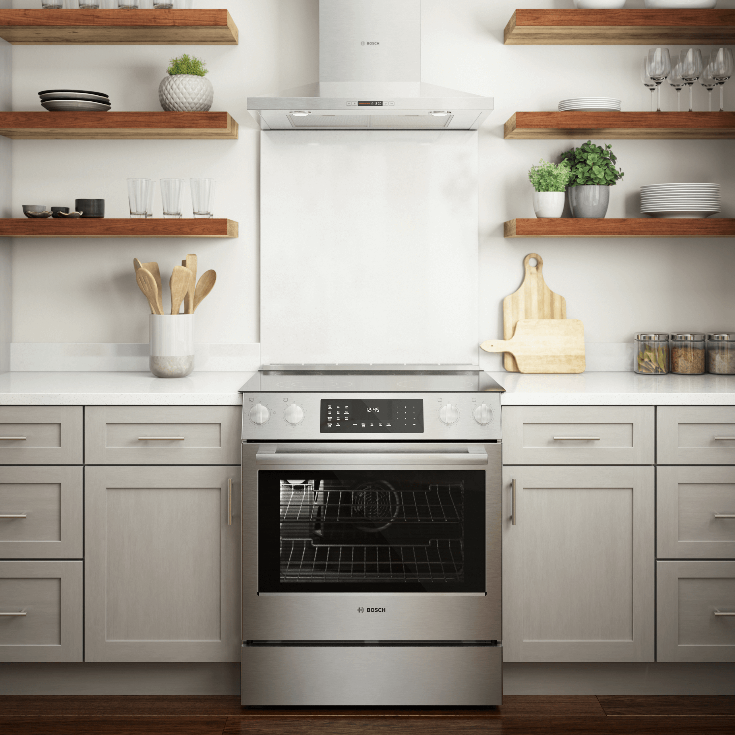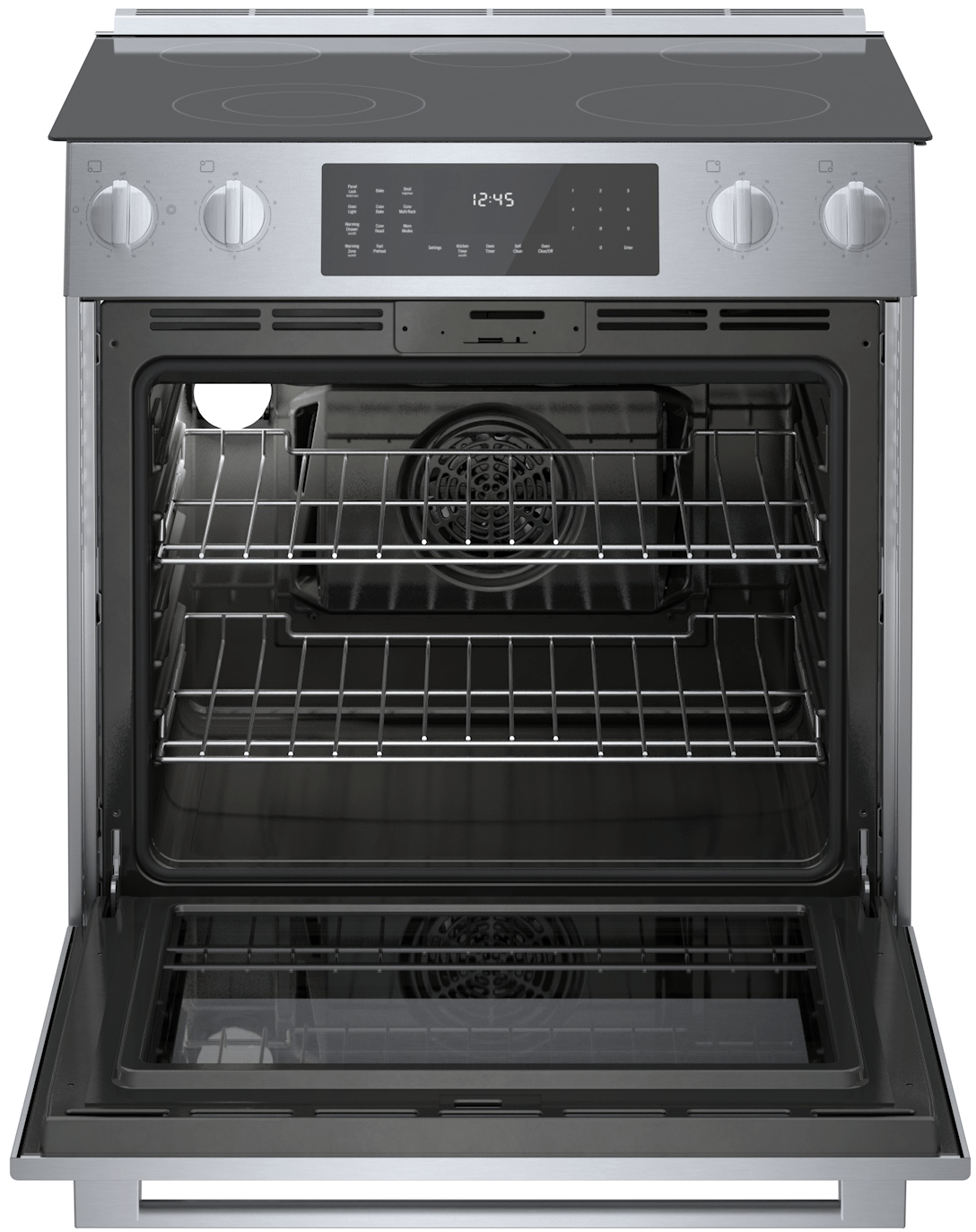 The touch control panel provides intuitive access to precise temperature settings, timers, and cooking modes. Additional features include a self-cleaning cycle for easy maintenance, a Fast Preheat function to reduce waiting time, and Sabbath Mode for special cooking needs. The Bosch HEI8056U slide-in design offers a seamless, built-in look that fits flush with your countertops.
