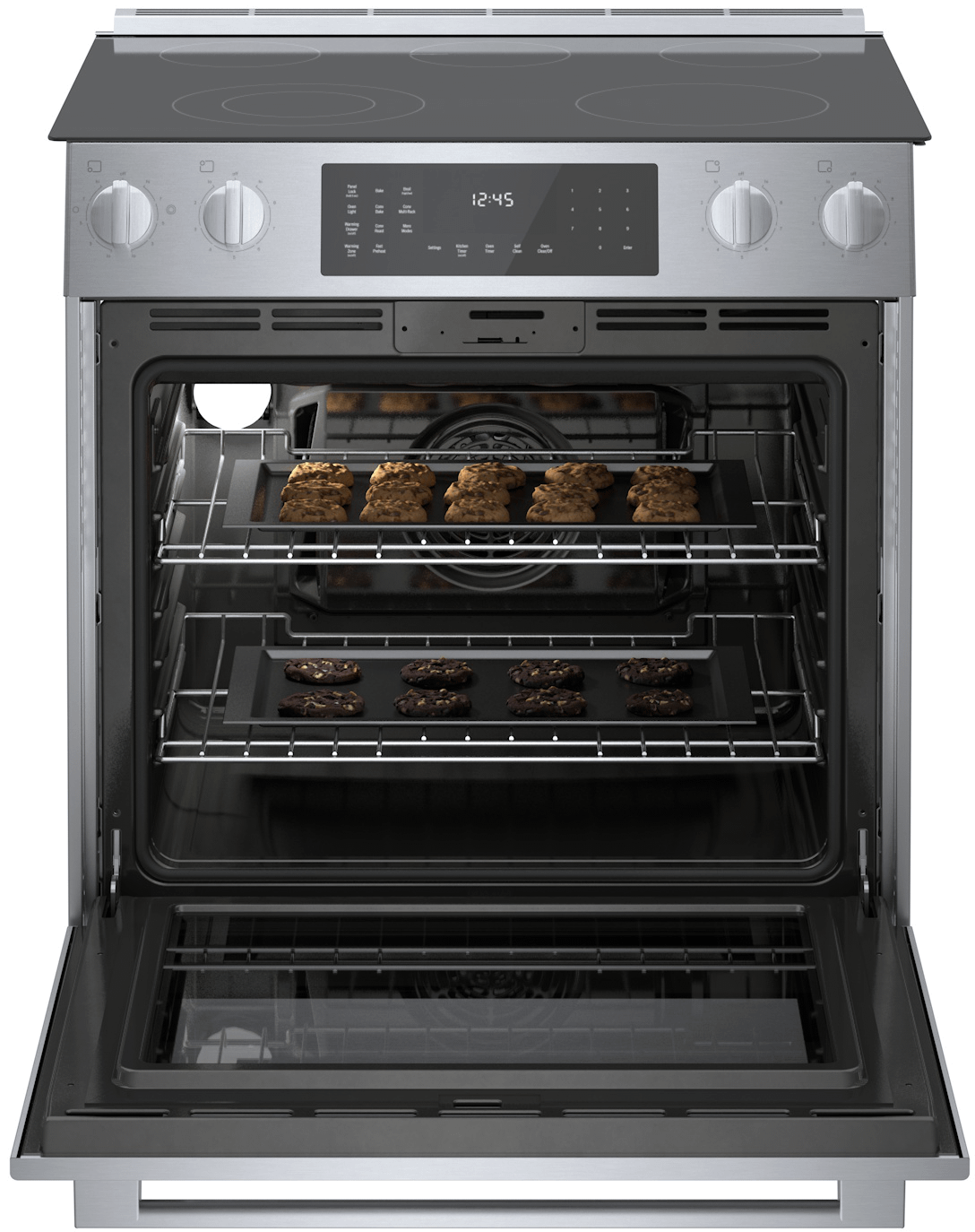 The European Convection system in the 4.6-cubic-foot oven ensures even heat distribution for perfectly baked goods, roasted meats, and casseroles. The oven also offers 11 cooking modes, such as Bake, Roast, Broil, and Convection Multi-Rack, making it versatile for every cooking style.
