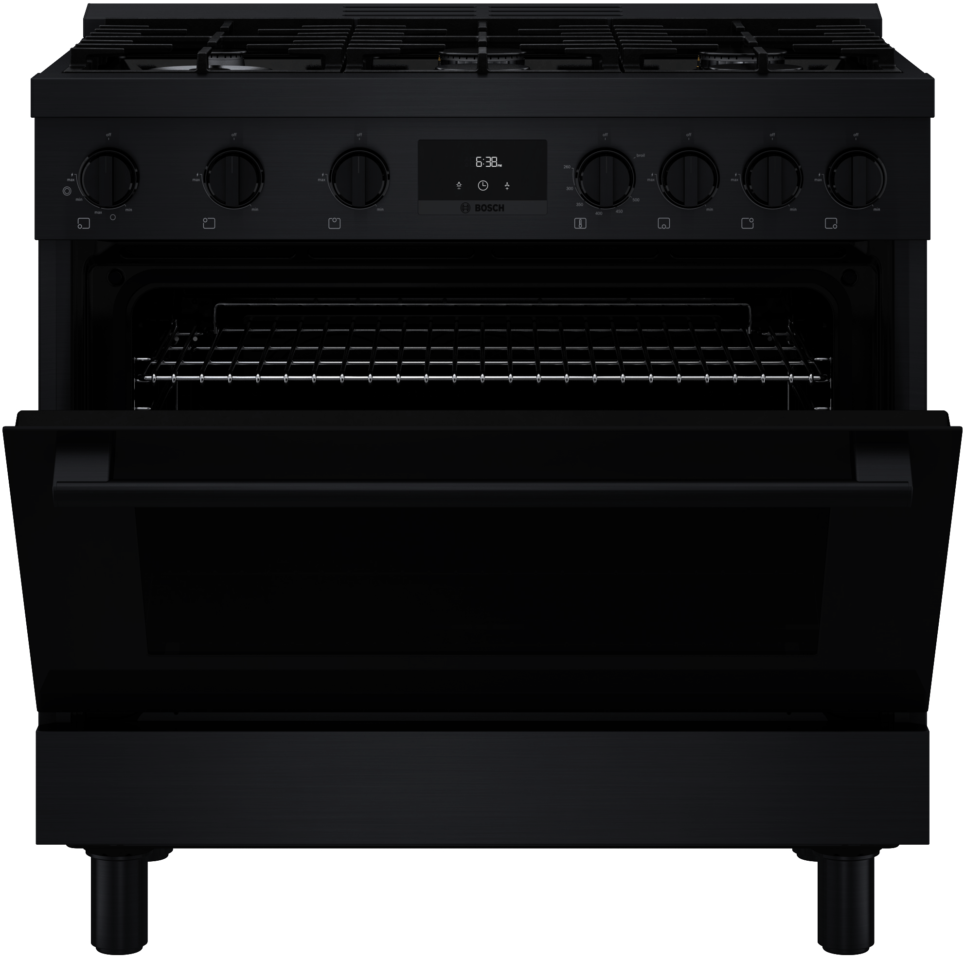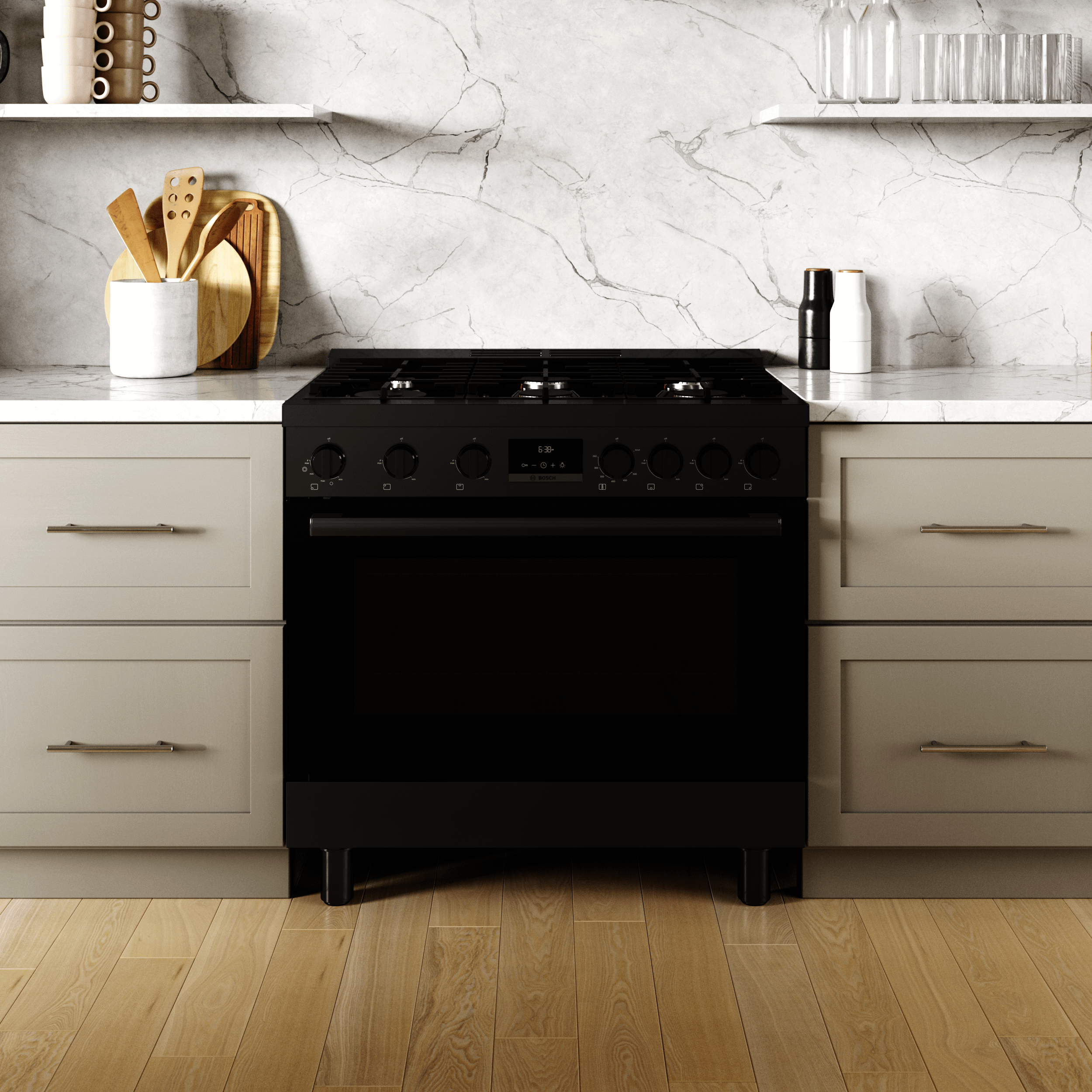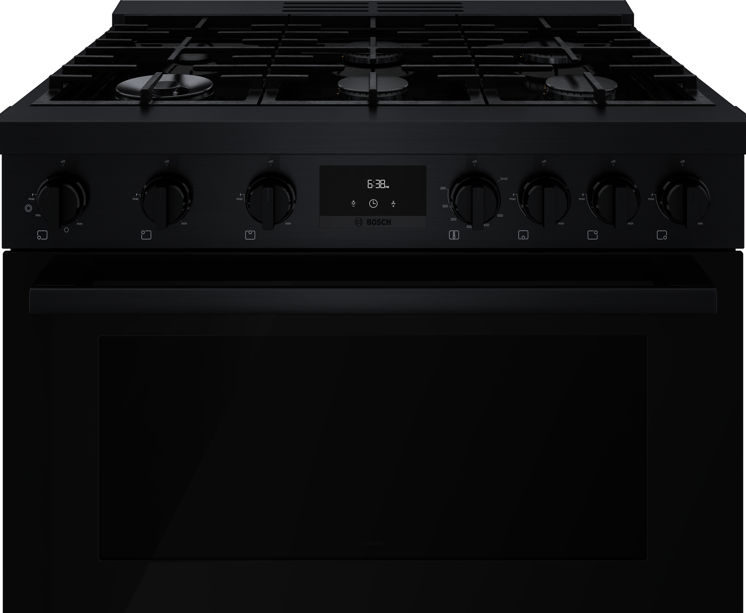 The Bosch HGS8645UC is a 36-inch freestanding gas range from the 800 Series, designed to deliver exceptional cooking performance and elevate your kitchen aesthetics. The stainless steel finish provides durability and a contemporary look that complements any modern kitchen.