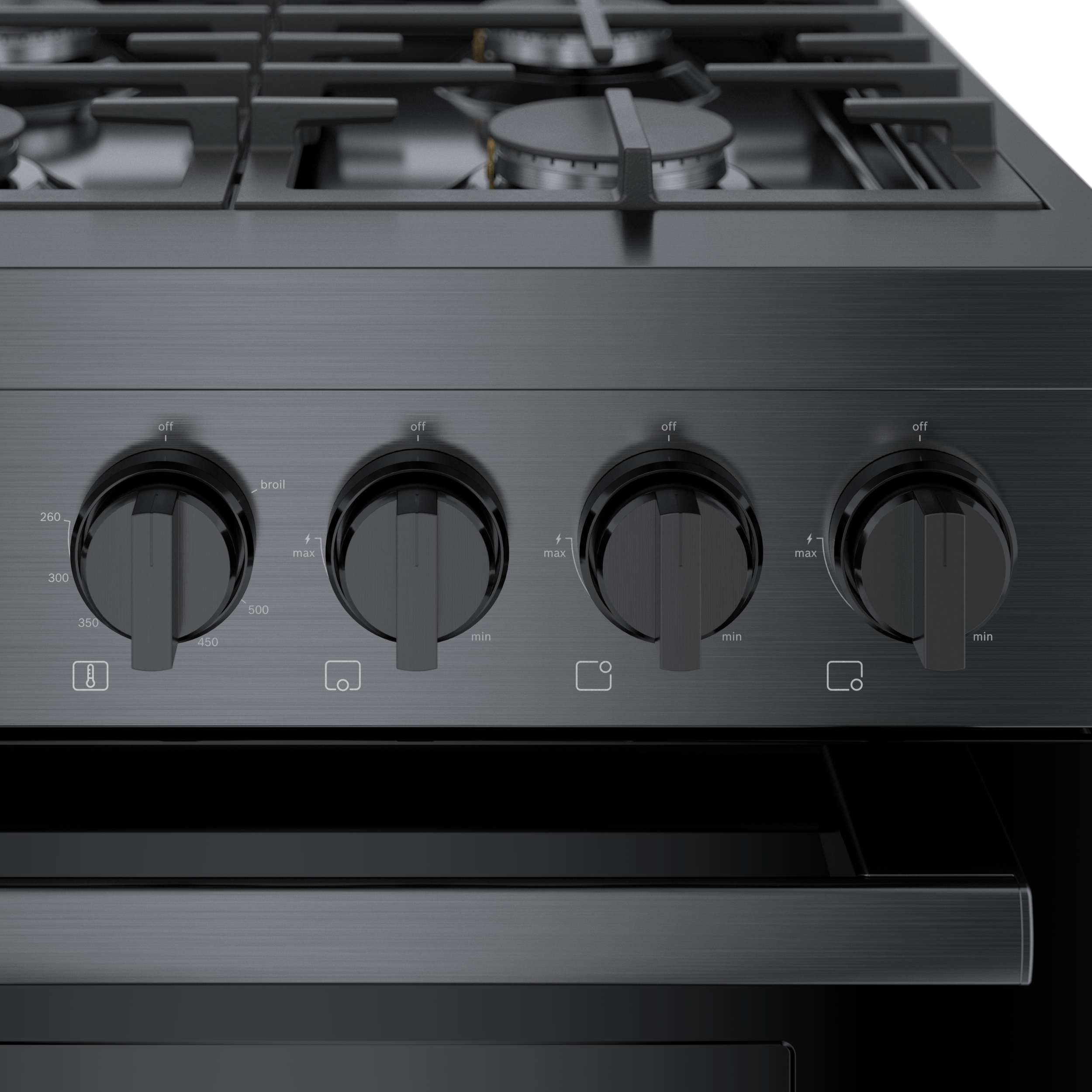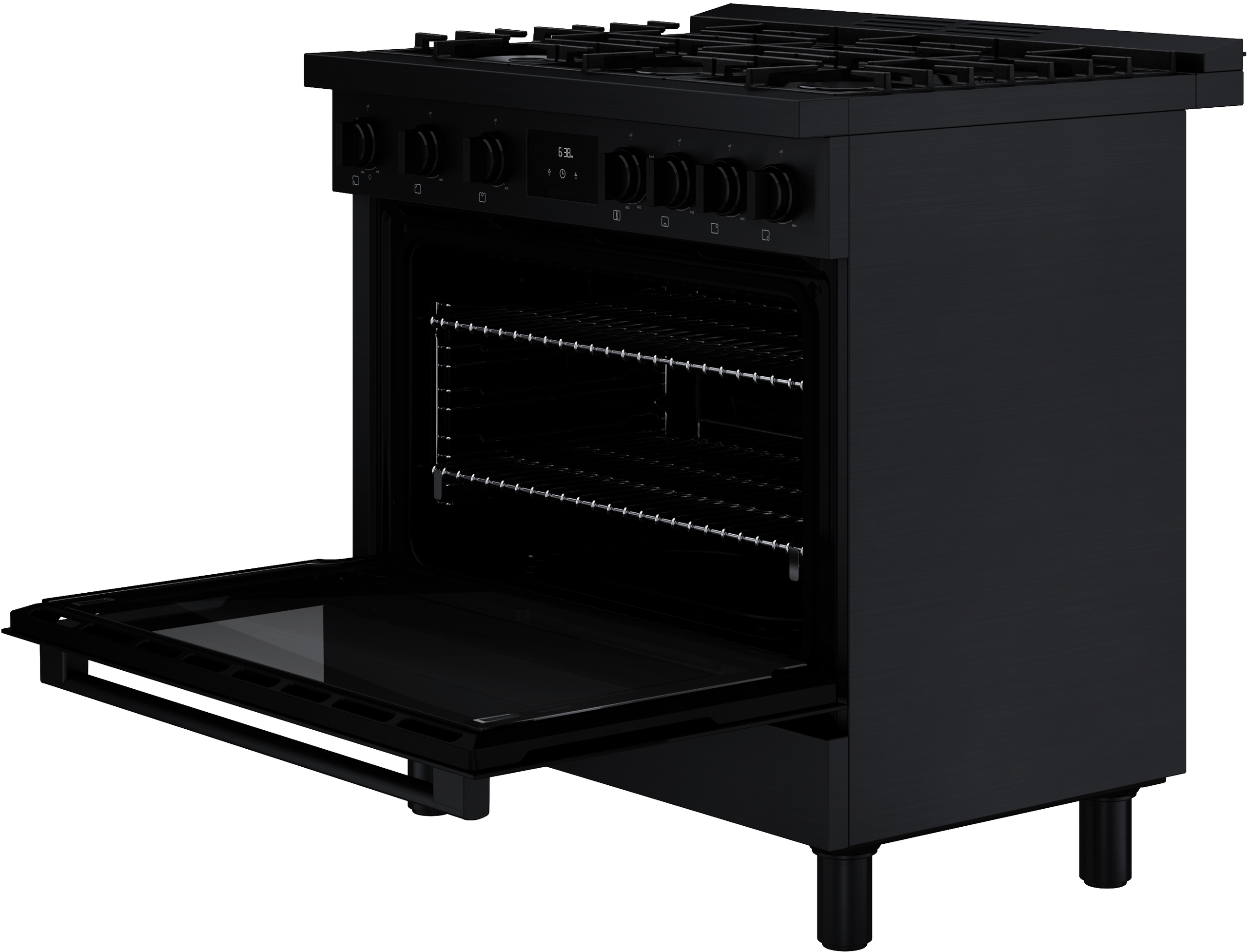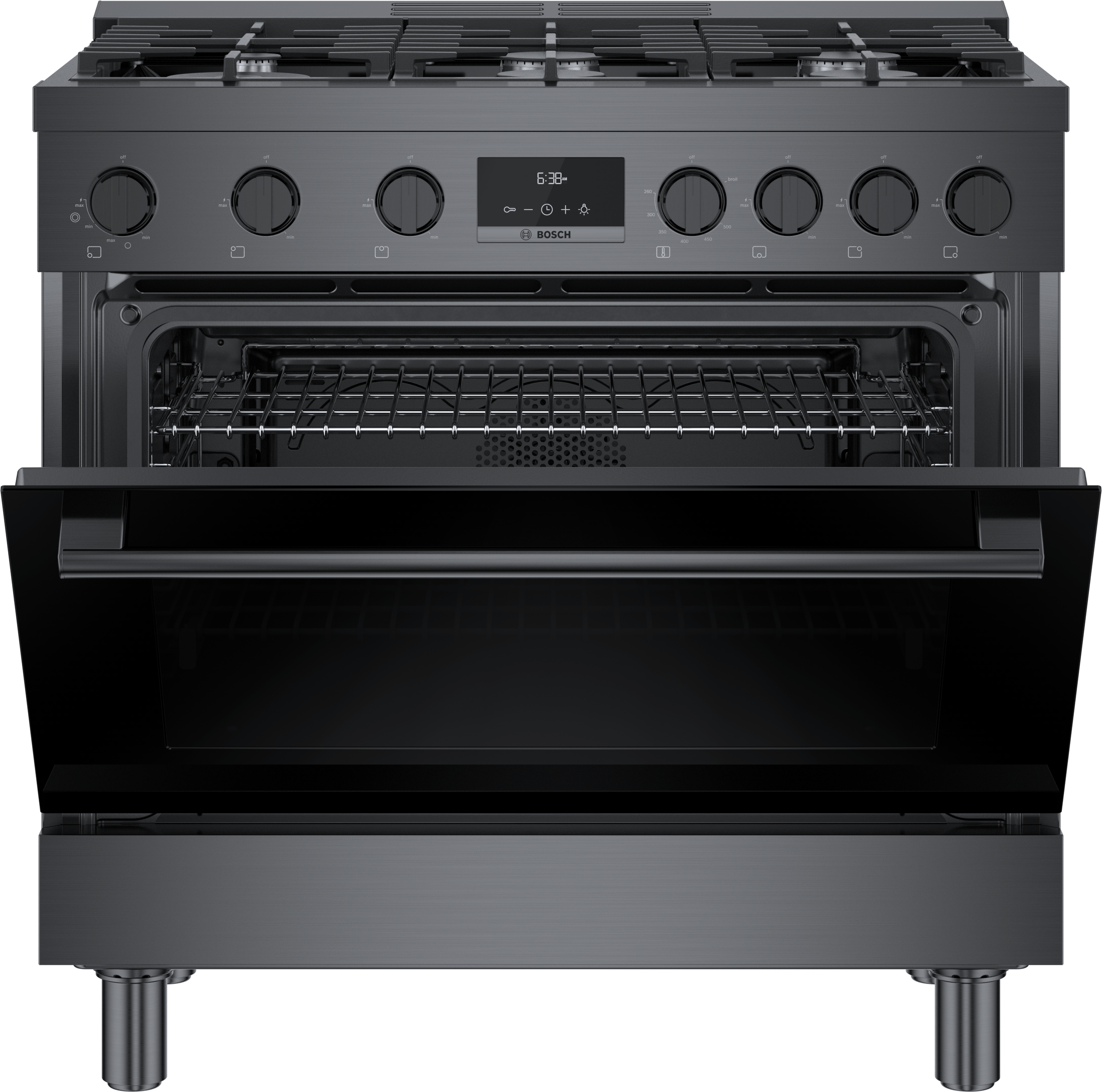 The Bosch HGS8645UC is a 36-inch freestanding gas range from the 800 Series, designed to deliver exceptional cooking performance and elevate your kitchen aesthetics. The stainless steel finish provides durability and a contemporary look that complements any modern kitchen.