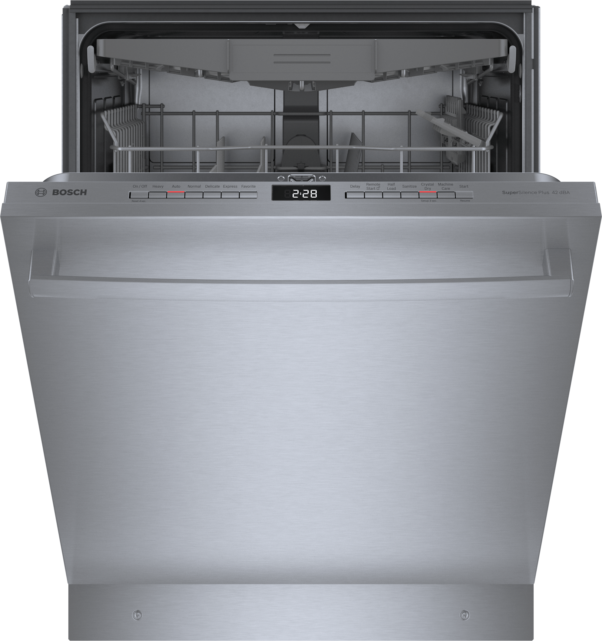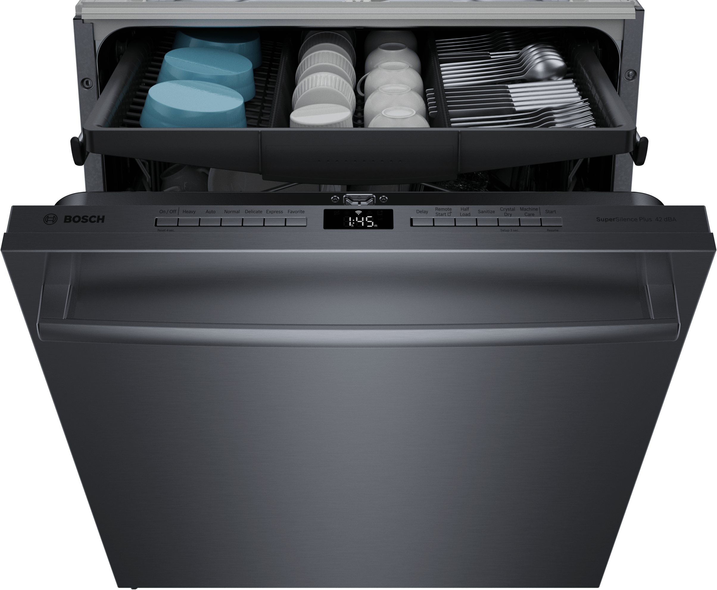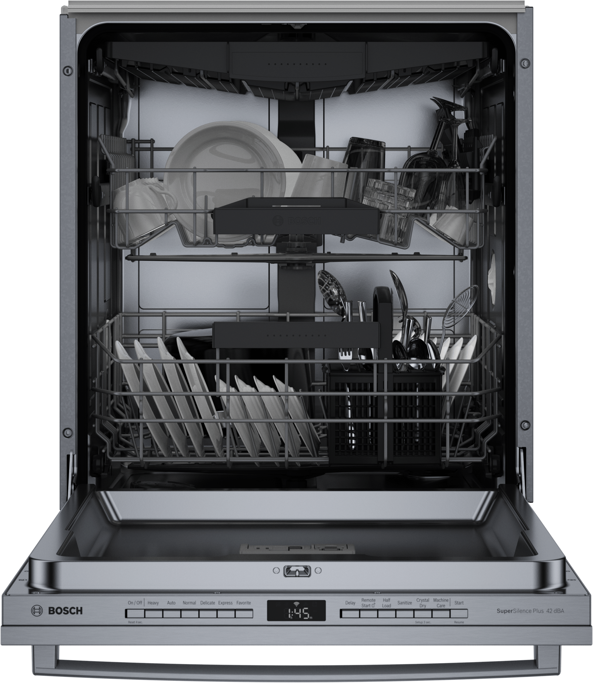 With Wi-Fi connectivity and Home Connect™ integration, you can monitor and control your dishwasher remotely using a smartphone or voice assistant. Its 42 dBA ultra-quiet operation ensures minimal noise, perfect for open-concept homes. The stainless steel tub enhances durability and resists stains while providing a sleek, premium look.