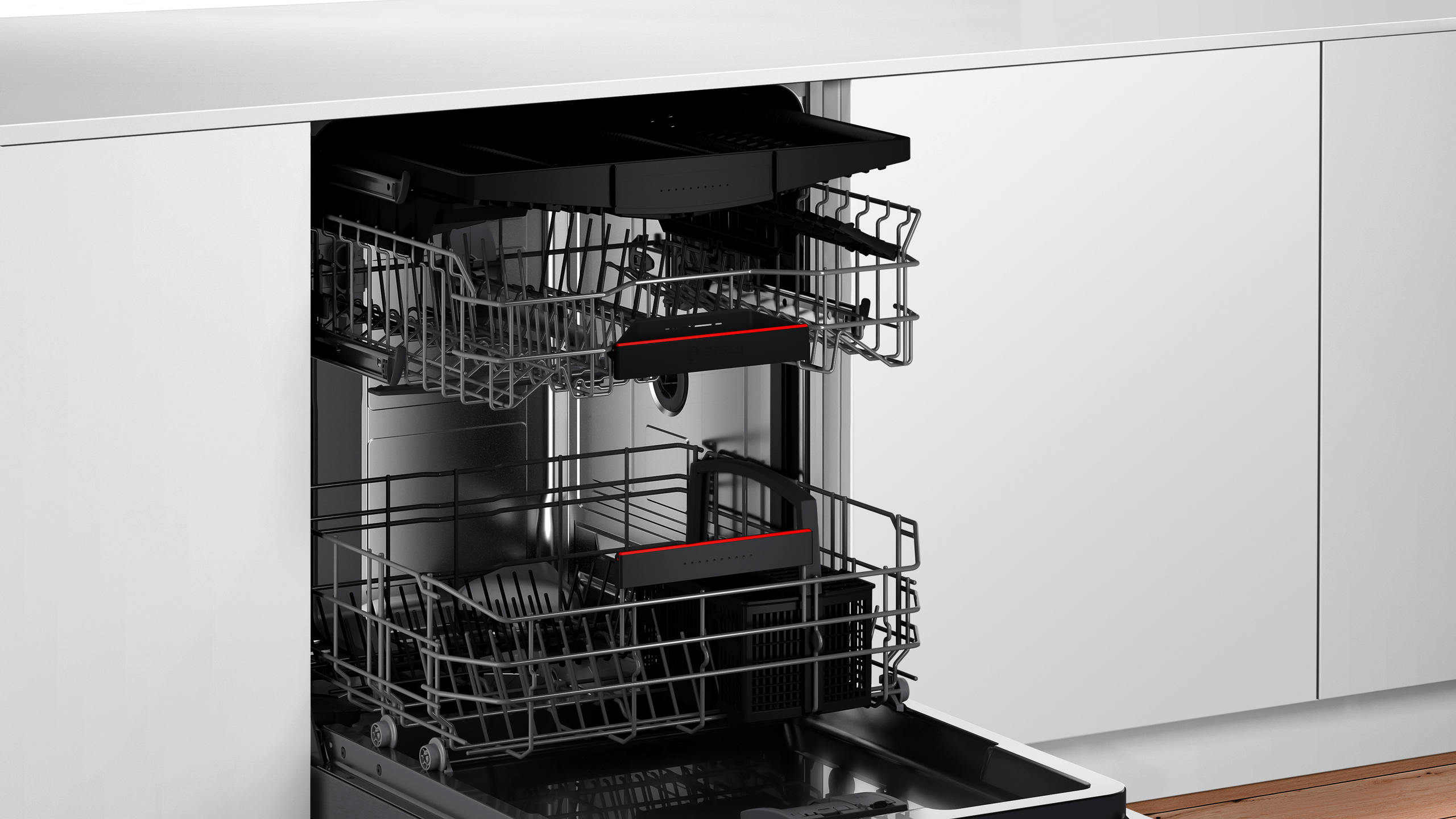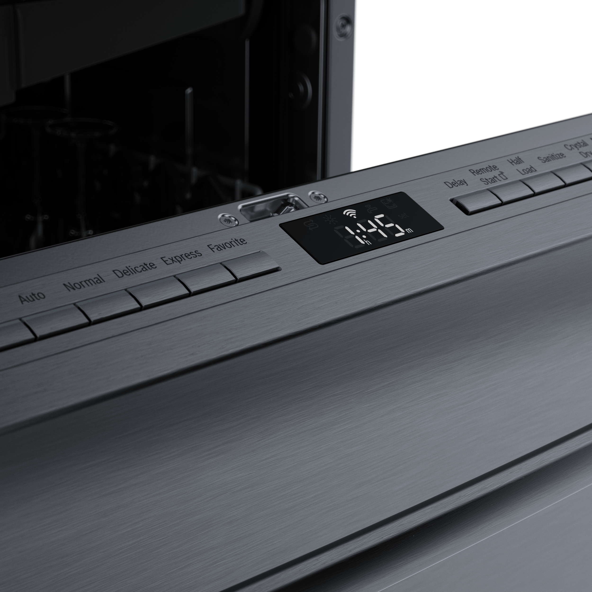 This dishwasher features an AutoAir™ door, which automatically opens at the end of the cycle to enhance drying performance. The RackMatic® system provides three adjustable height levels and nine rack positions, allowing you to fit more dishes, large pots, and glassware effortlessly.