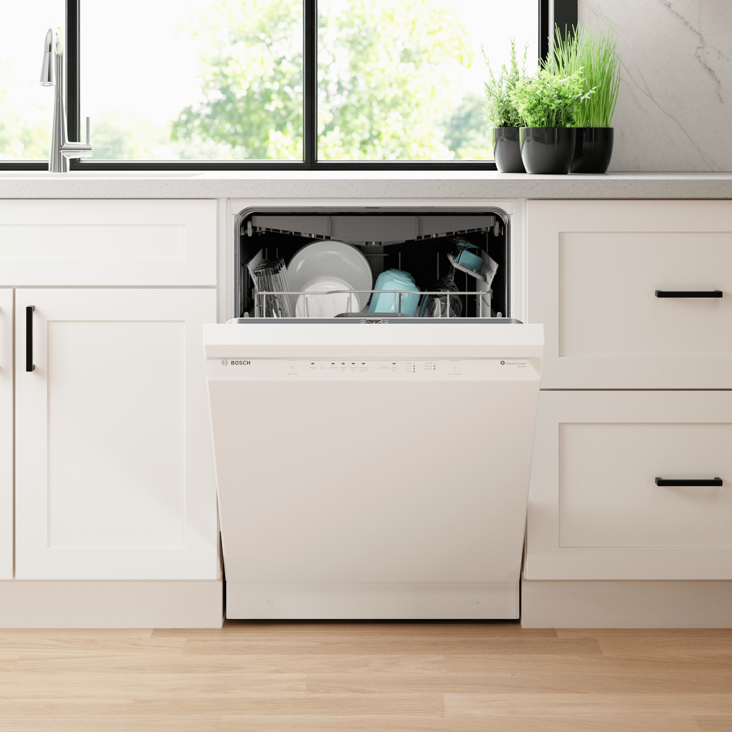 Upgrade your kitchen with the Bosch SHE53C82N, a high-quality 24-inch built-in dishwasher designed for efficiency and convenience. This stainless steel dishwasher operates at a low noise level, making it ideal for open-concept kitchens. With PrecisionWash™ Technology, it intelligently detects and adjusts for the best cleaning performance. The AutoAir™ feature enhances drying by automatically opening the door at the end of the cycle, reducing moisture buildup. RackMatic® technology provides adjustable racks to accommodate large pots and delicate glassware. Plus, with Energy Star certification, it helps conserve energy while delivering exceptional results.