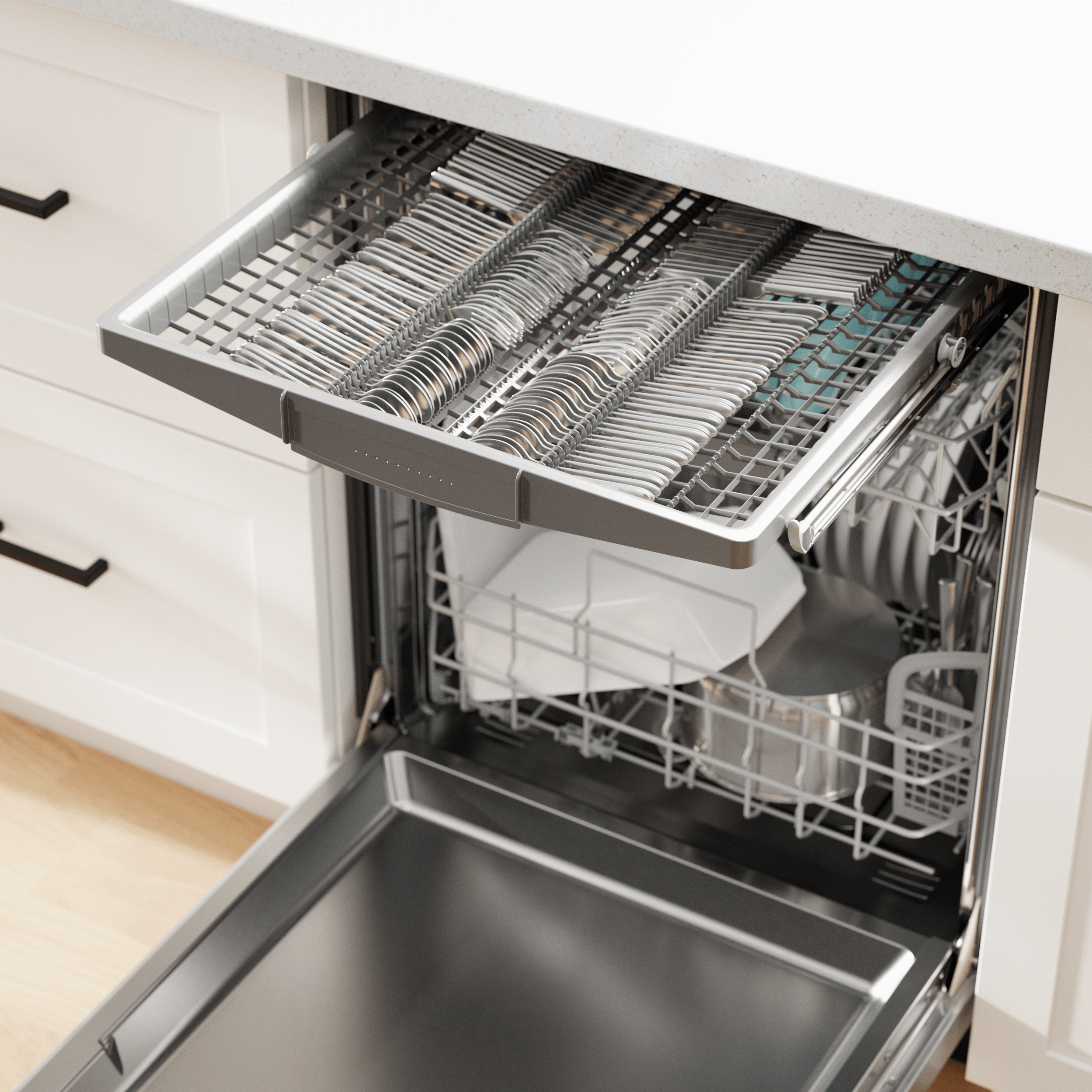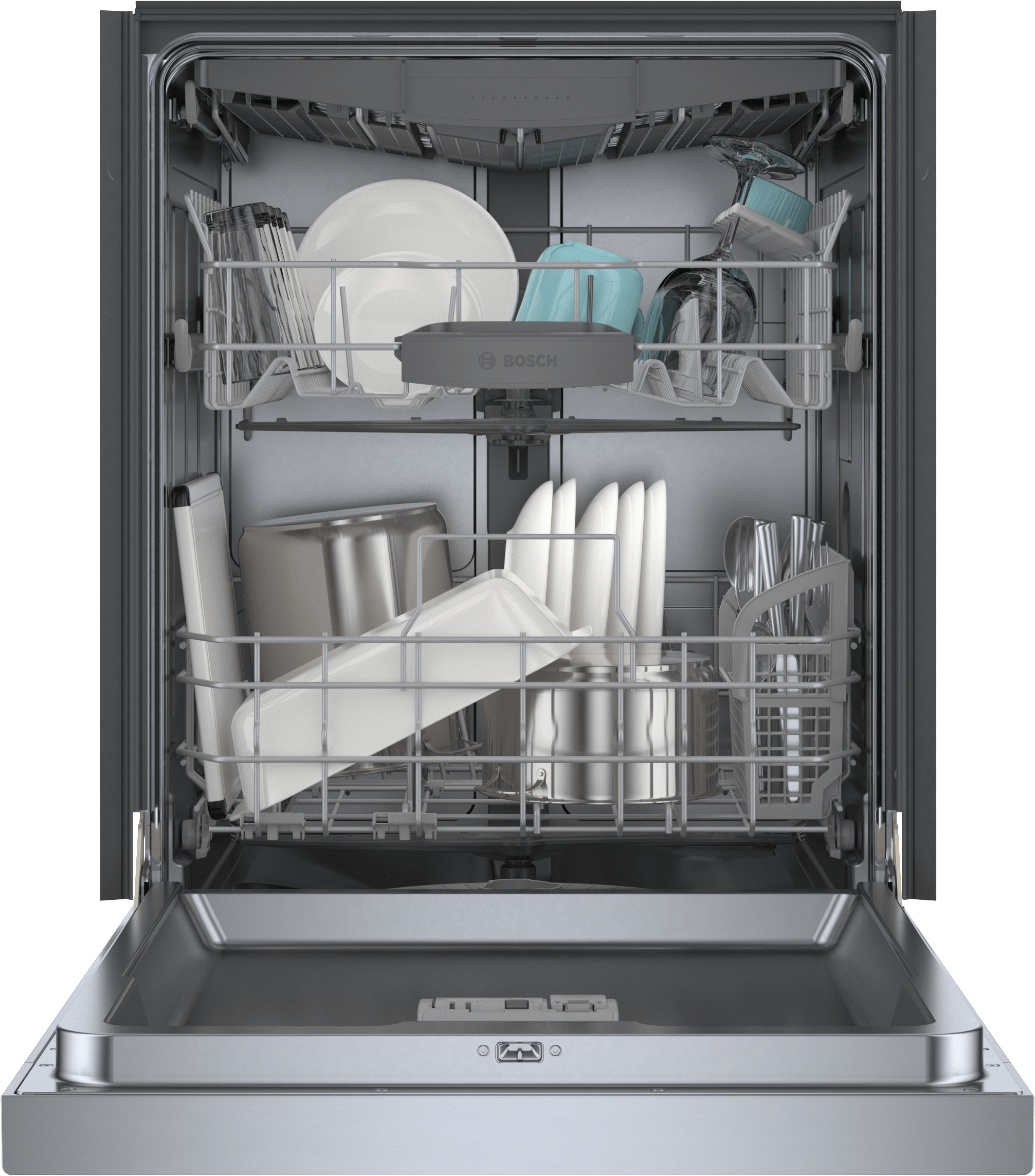 The Bosch SHE53C85N is engineered for high performance, making it a standout addition to any kitchen. With a stainless steel finish, it offers a modern aesthetic while being smudge-resistant for a clean look. The PrecisionWash™ system ensures thorough cleaning by using intelligent sensors to adjust water pressure and cycle duration. The AutoAir™ feature improves drying efficiency by automatically opening the door at the end of the cycle, allowing fresh air to circulate. Equipped with RackMatic® technology, this dishwasher provides adjustable rack heights, making it easy to fit various dish sizes. Operating at an ultra-quiet 46 dBA, it delivers powerful cleaning with minimal noise. Additionally, with Energy Star certification, it is designed to save water and electricity without compromising performance.