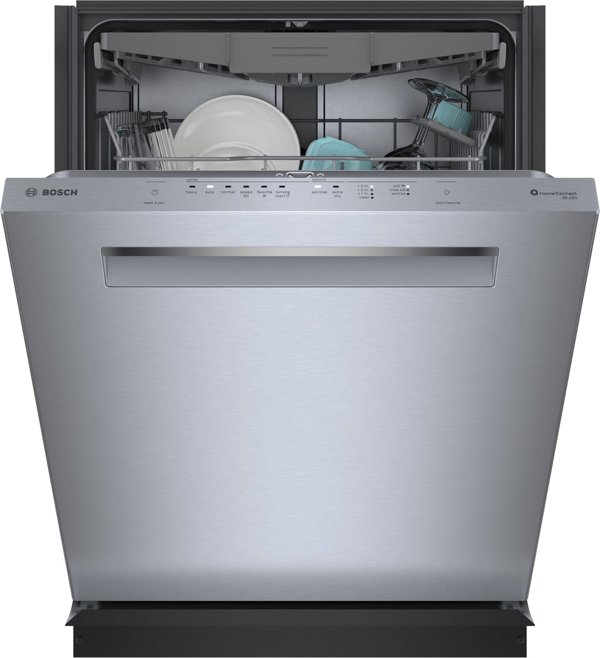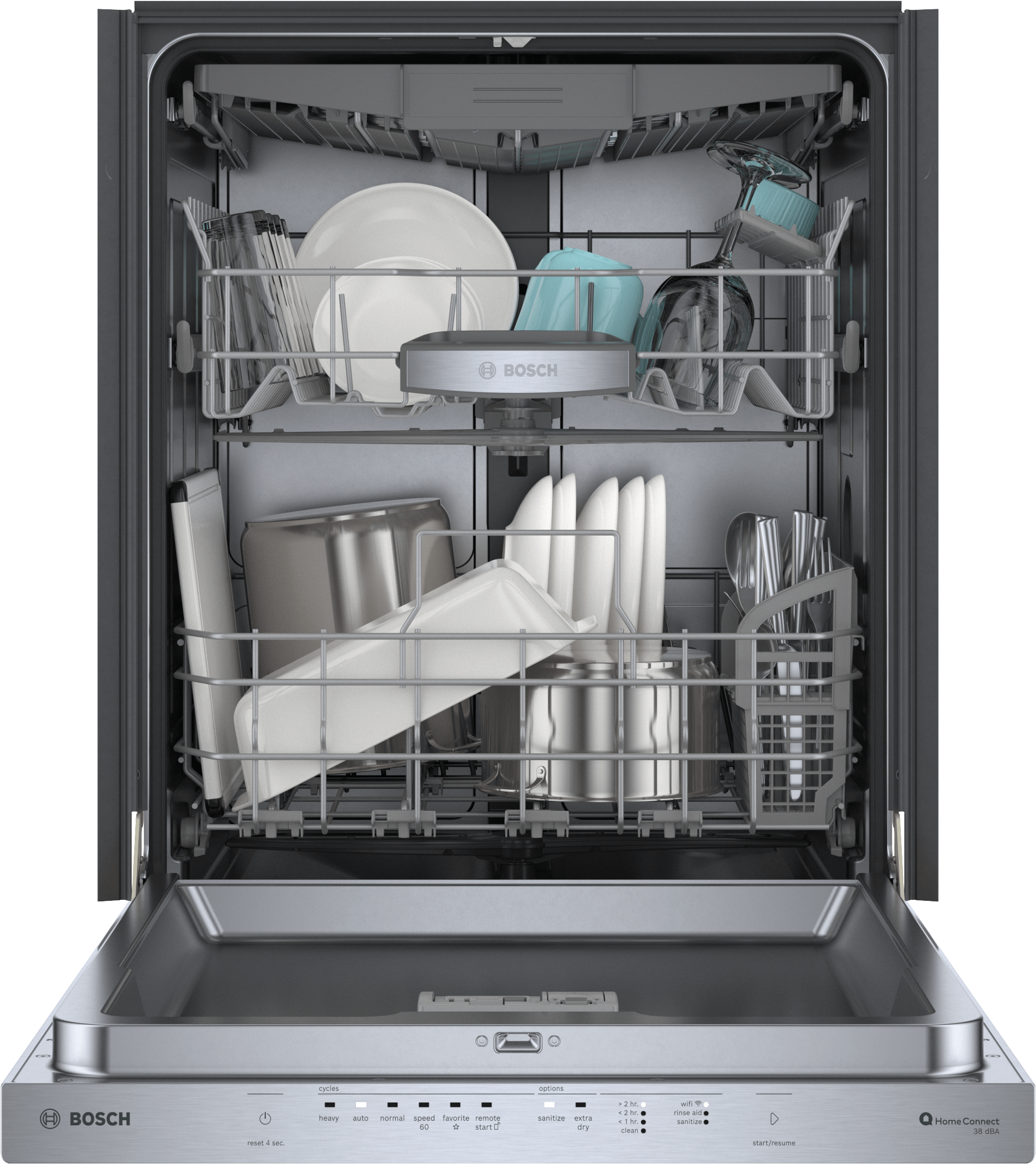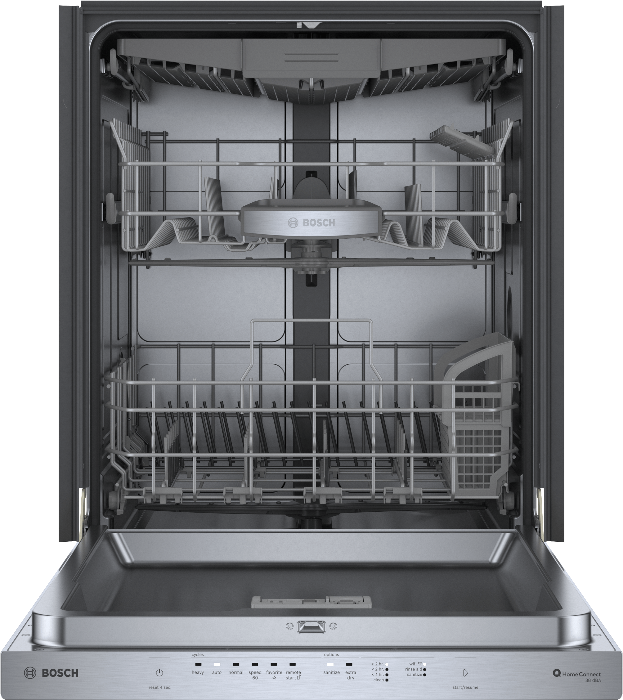 With Wi-Fi connectivity through Home Connect®, you can monitor and control your dishwasher remotely, access additional wash cycles, and receive notifications. The stainless steel tub enhances durability and improves drying performance, while the stainless steel anti-fingerprint finish complements various kitchen decors.