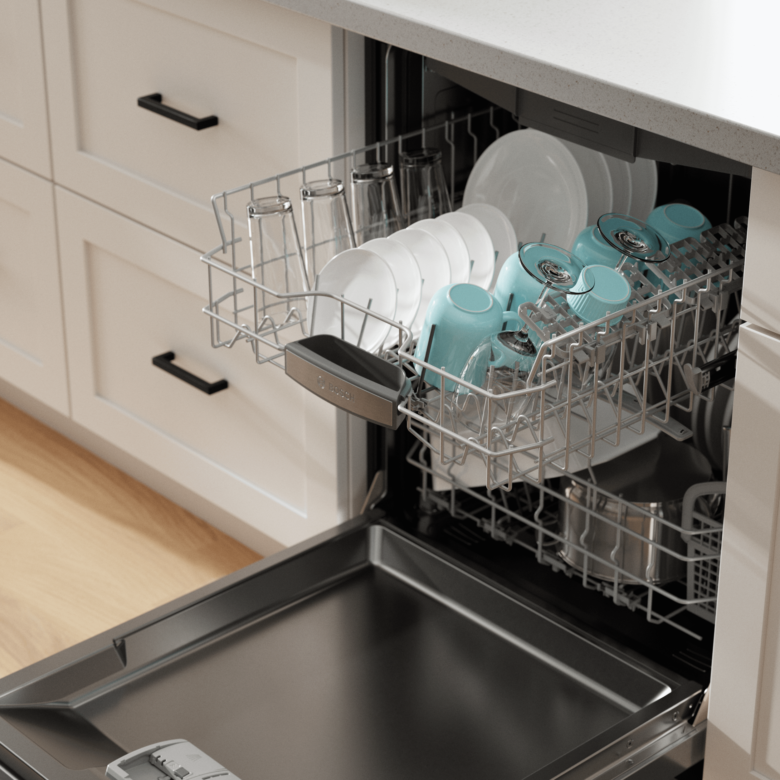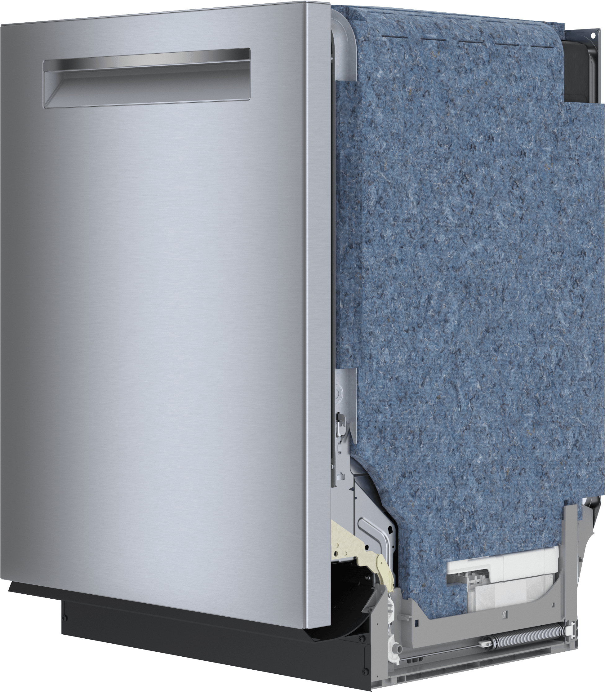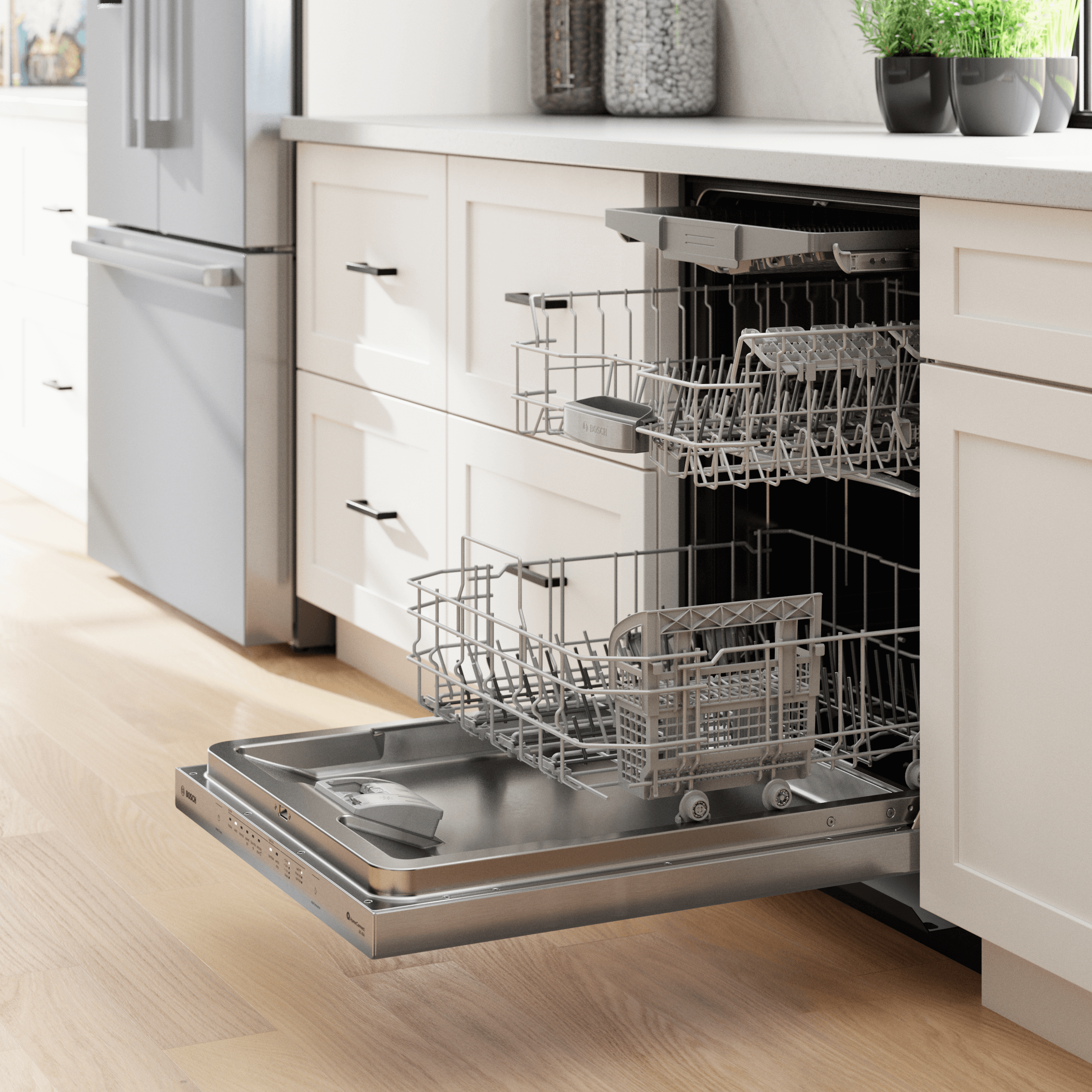 The Bosch SHP95CM5N 24-inch Top-Control Built-In Dishwasher combines advanced cleaning technologies with user-friendly features. Its PrecisionWash® system utilizes intelligent sensors and powerful spray arms to ensure thorough cleaning of every dish. Operating at an ultra-quiet 38 dBA, it maintains a peaceful kitchen environment.