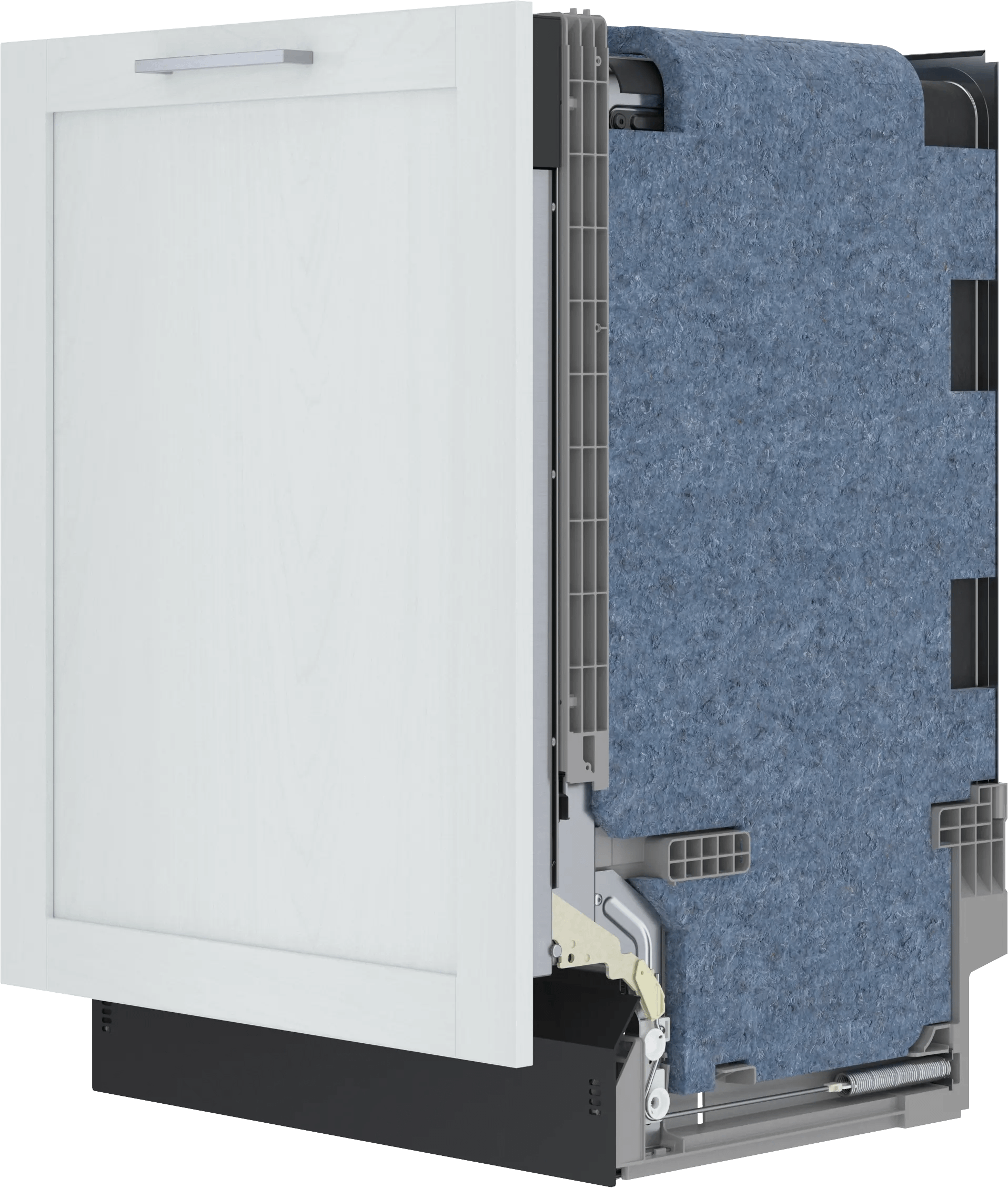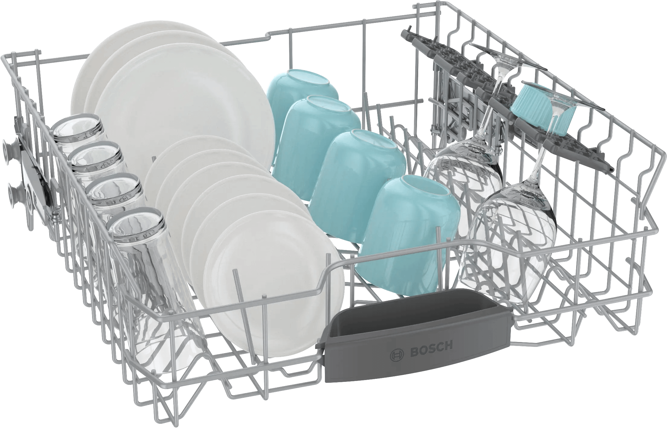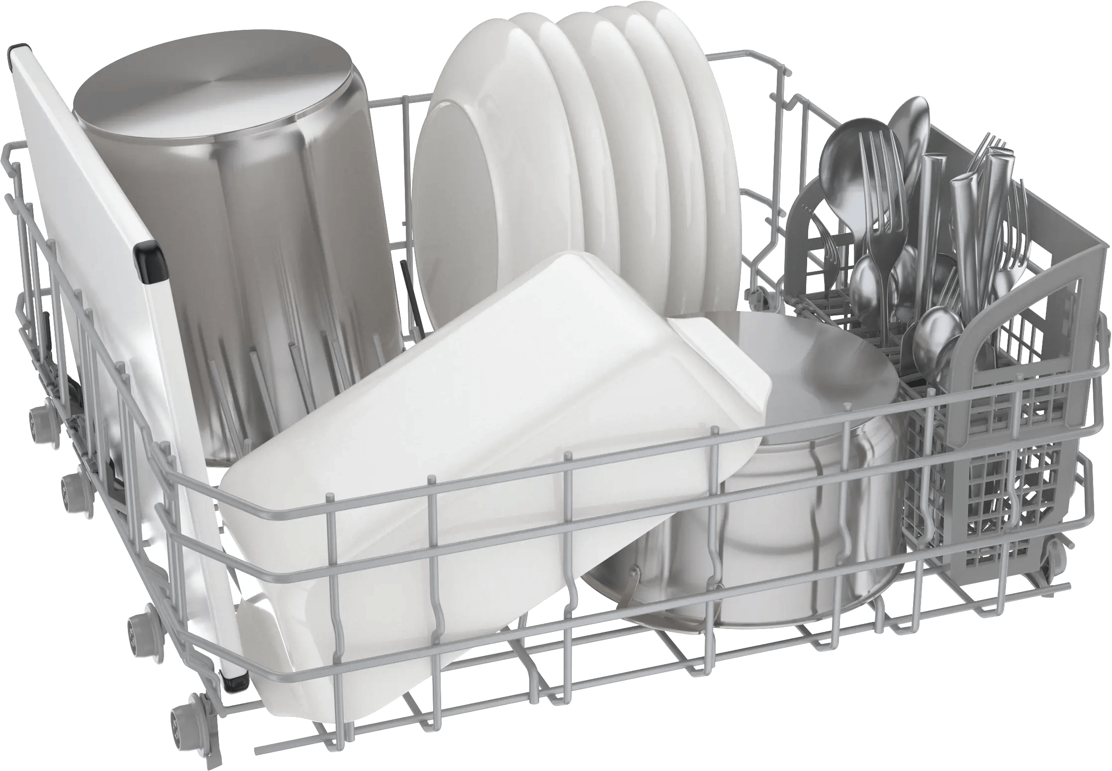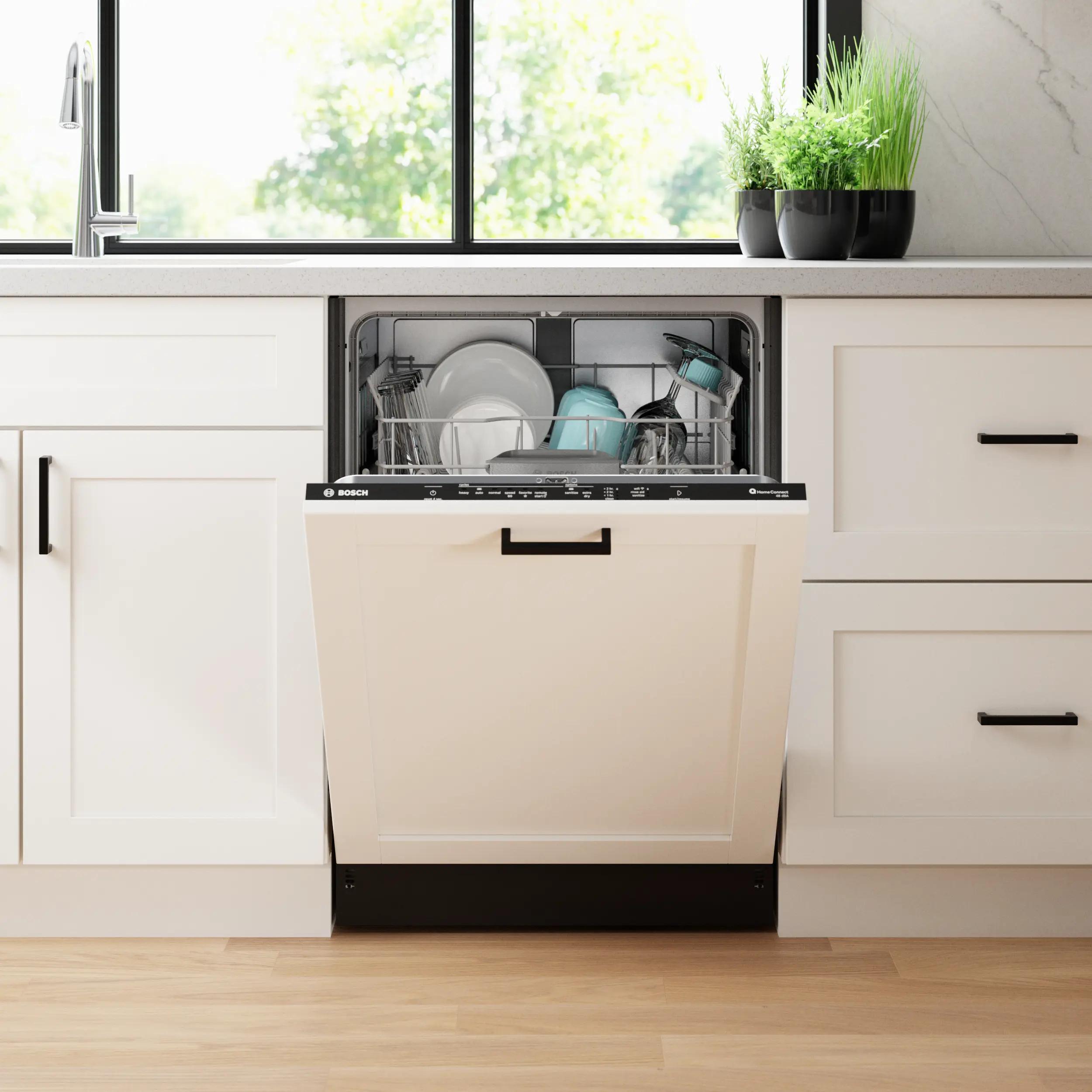 The Bosch SHV4AEB3N 100 Plus Series dishwasher offers a customizable panel-ready design, seamlessly integrating into your kitchen cabinetry for a sleek, uniform look. Its spacious interior accommodates up to 14 place settings, making it suitable for both daily use and entertaining. The RackMatic® system provides three height levels and nine possible rack positions, allowing for flexible loading of various dishware sizes. PrecisionWash® technology utilizes intelligent sensors to monitor the wash water and automatically adjust the cycle for a smarter clean, while PureDry® ensures energy-efficient drying without the use of an exposed heating element, making it safe for plastics. Operating at a quiet 48 dBA, this dishwasher won't disrupt your household activities. With Home Connect® integration, you can monitor and control your dishwasher remotely, access additional wash cycles, and receive notifications, enhancing your overall user experience.