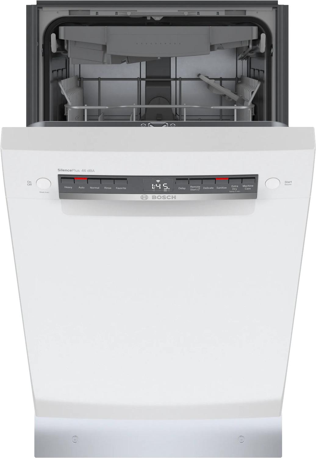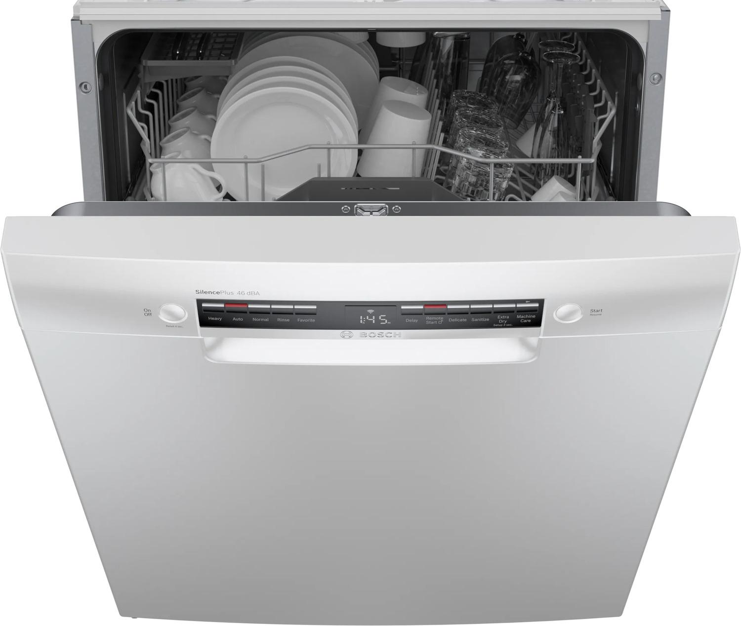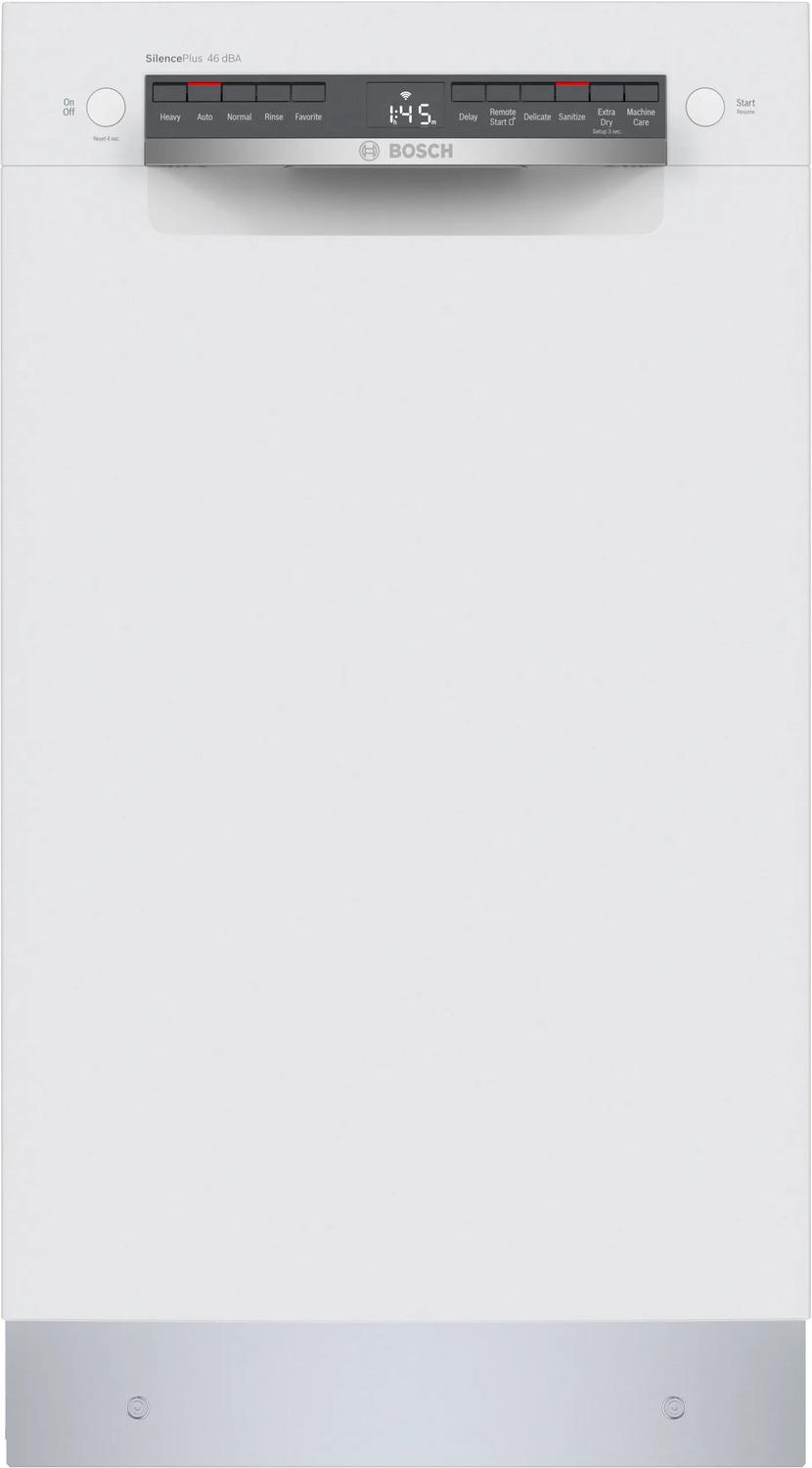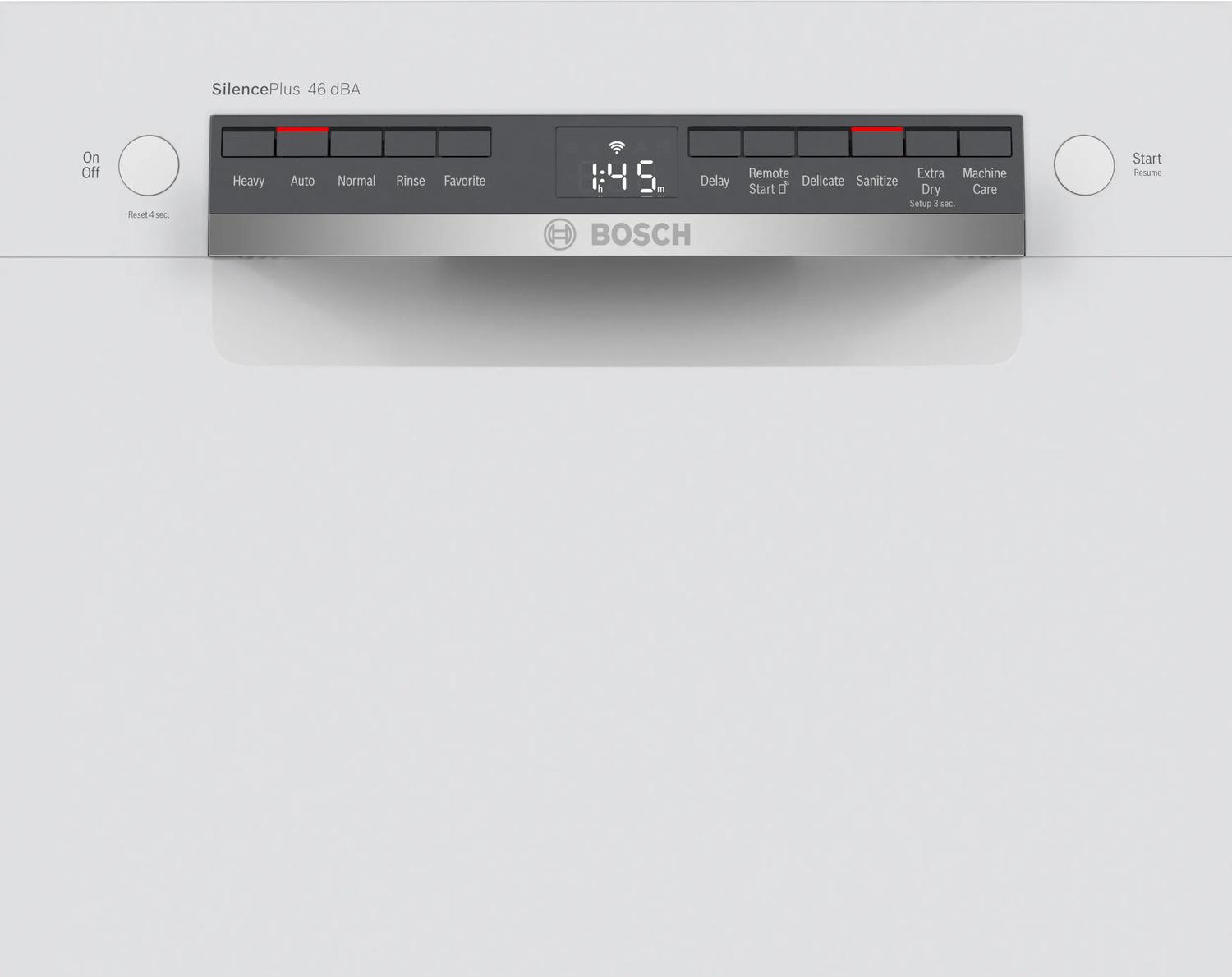 The Bosch SPE53C52UC dishwasher combines innovative features with a compact design, making it ideal for smaller kitchen spaces. Its PrecisionWash® system uses intelligent sensors to monitor the wash water and automatically adjust the cycle for a smarter clean, ensuring every dish emerges spotless. The PureDry® technology provides an energy-efficient drying system that safely dries plastics anywhere in the dishwasher without the risk of melting. The RackMatic® feature allows the upper rack to adjust to nine different positions, accommodating taller items like stemware or providing space for pots and pans below. With Home Connect® integration, you can remotely monitor and control your dishwasher via a smartphone or tablet, enhancing your kitchen's connectivity. The InfoLight® projects a red light onto the floor during the wash cycle, so you know when your dishwasher is running. Designed with a white exterior, it offers a clean and timeless look that complements any kitchen decor.
