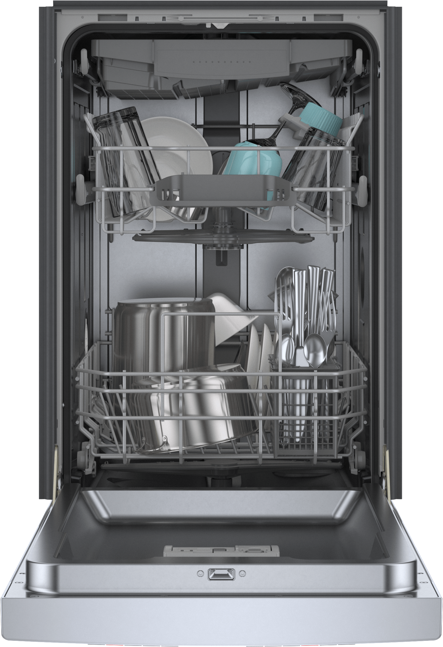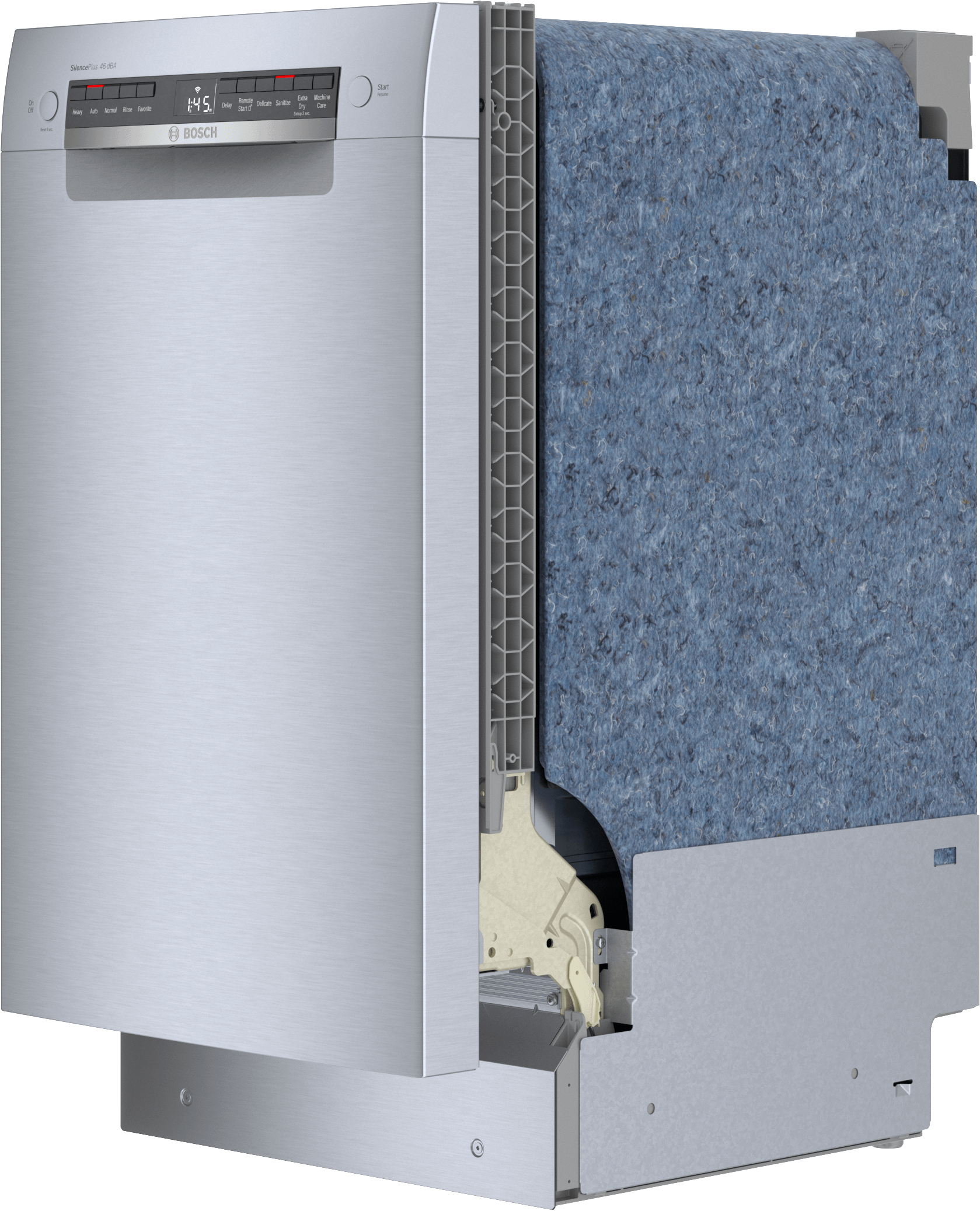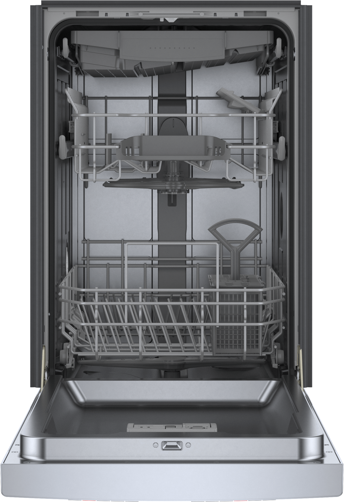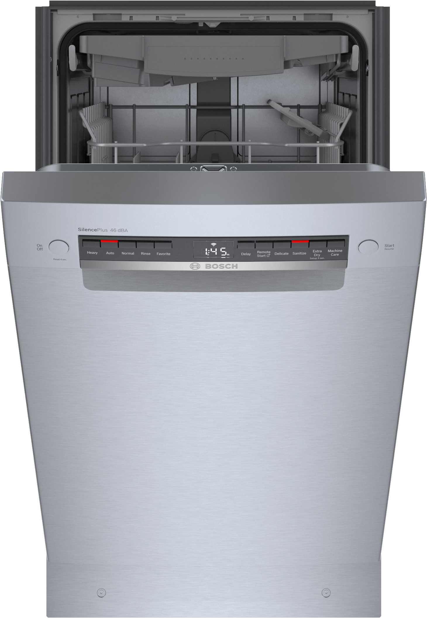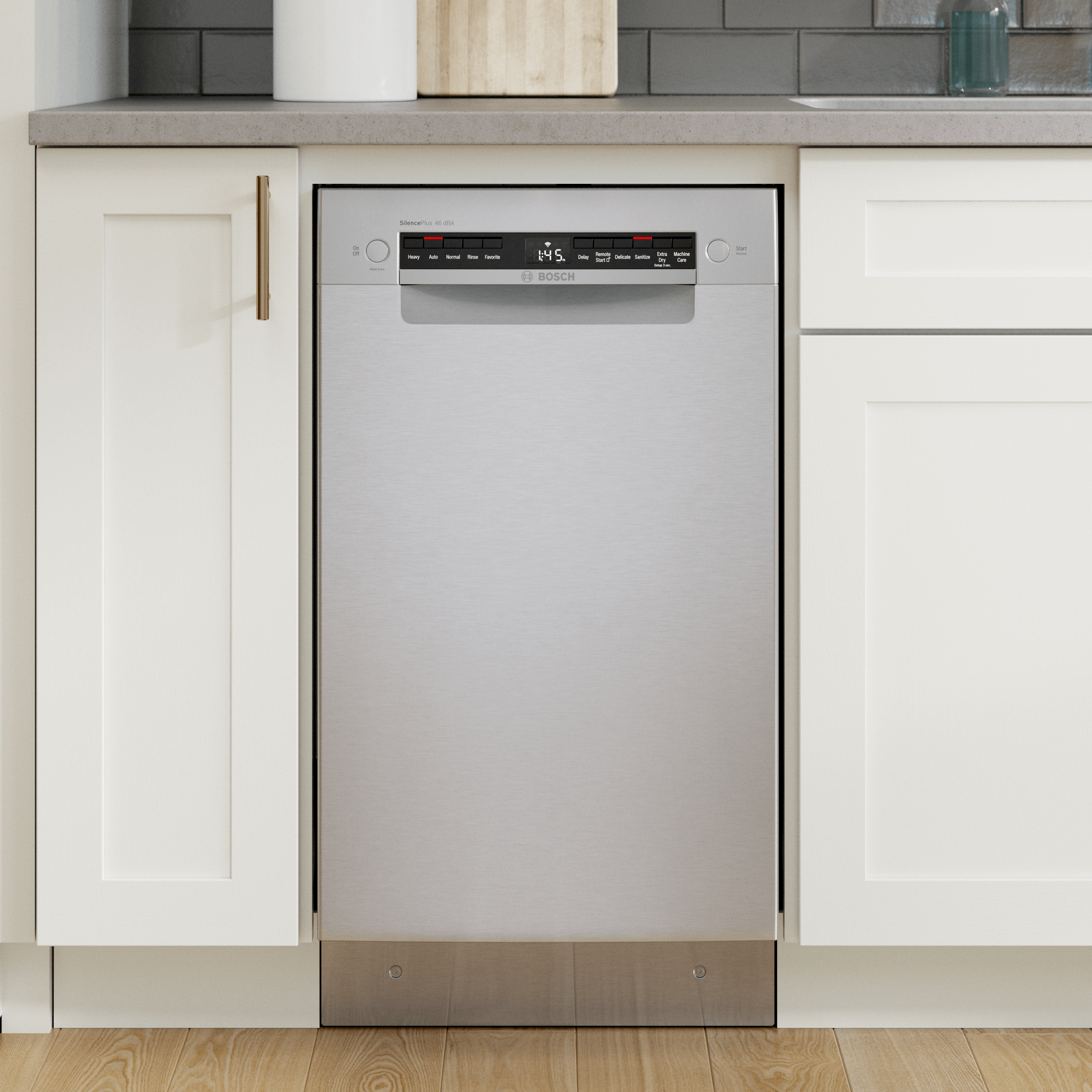 The Bosch SPE53C55UC 18-inch Built-In Dishwasher is a perfect solution for those looking for high performance in a compact design. Ideal for smaller kitchens, this dishwasher features a stainless steel interior for durability and better drying performance. With five wash cycles and multiple cleaning options, it ensures spotless dishes every time.
