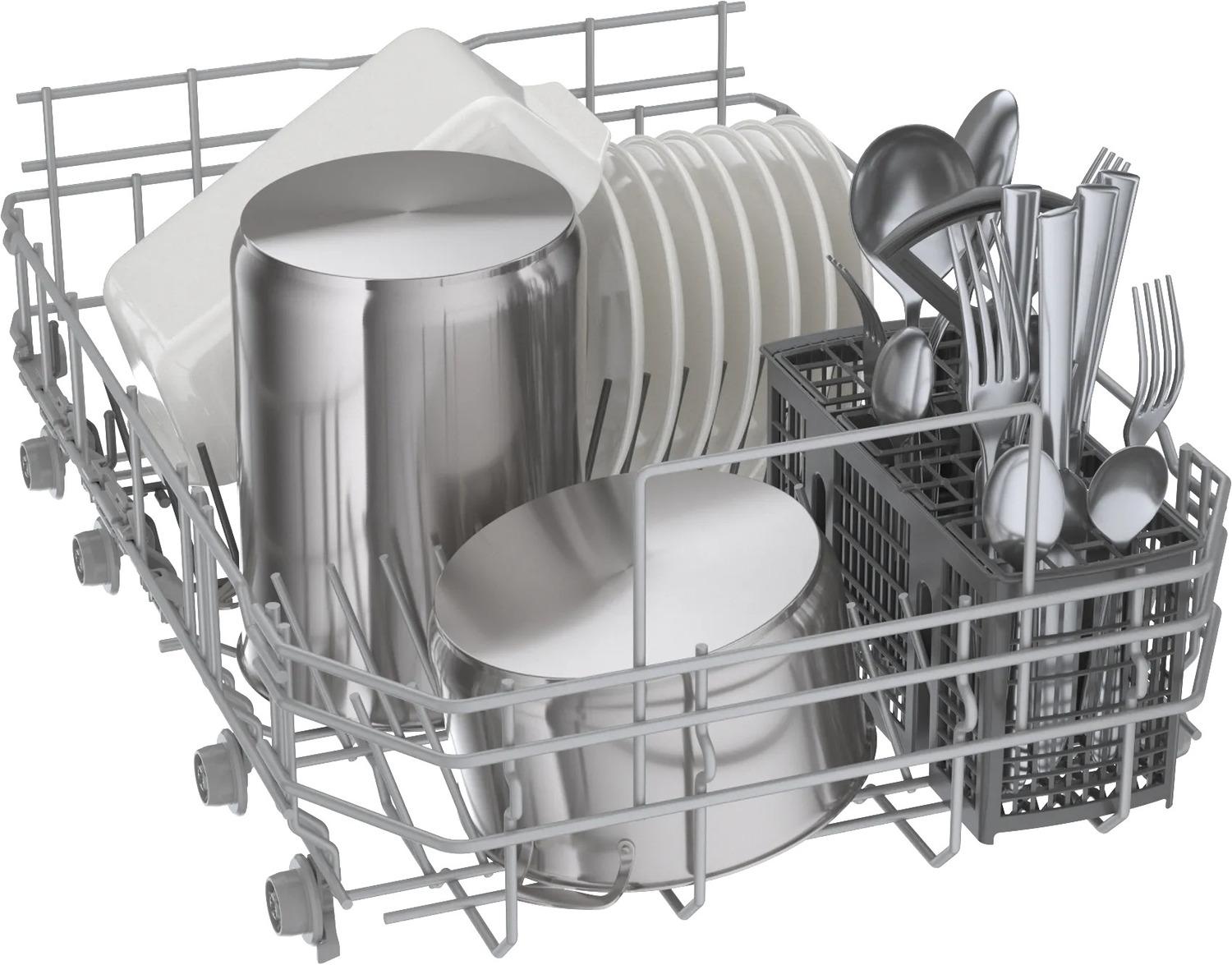 With a 46 dBA noise level, this dishwasher runs quietly, making it ideal for open-concept spaces. The RackMatic® system allows for easy height adjustments, providing flexibility to fit different dish sizes. The InfoLight® technology projects a red light onto the floor to indicate when the dishwasher is running, eliminating the need for loud cycle alerts.