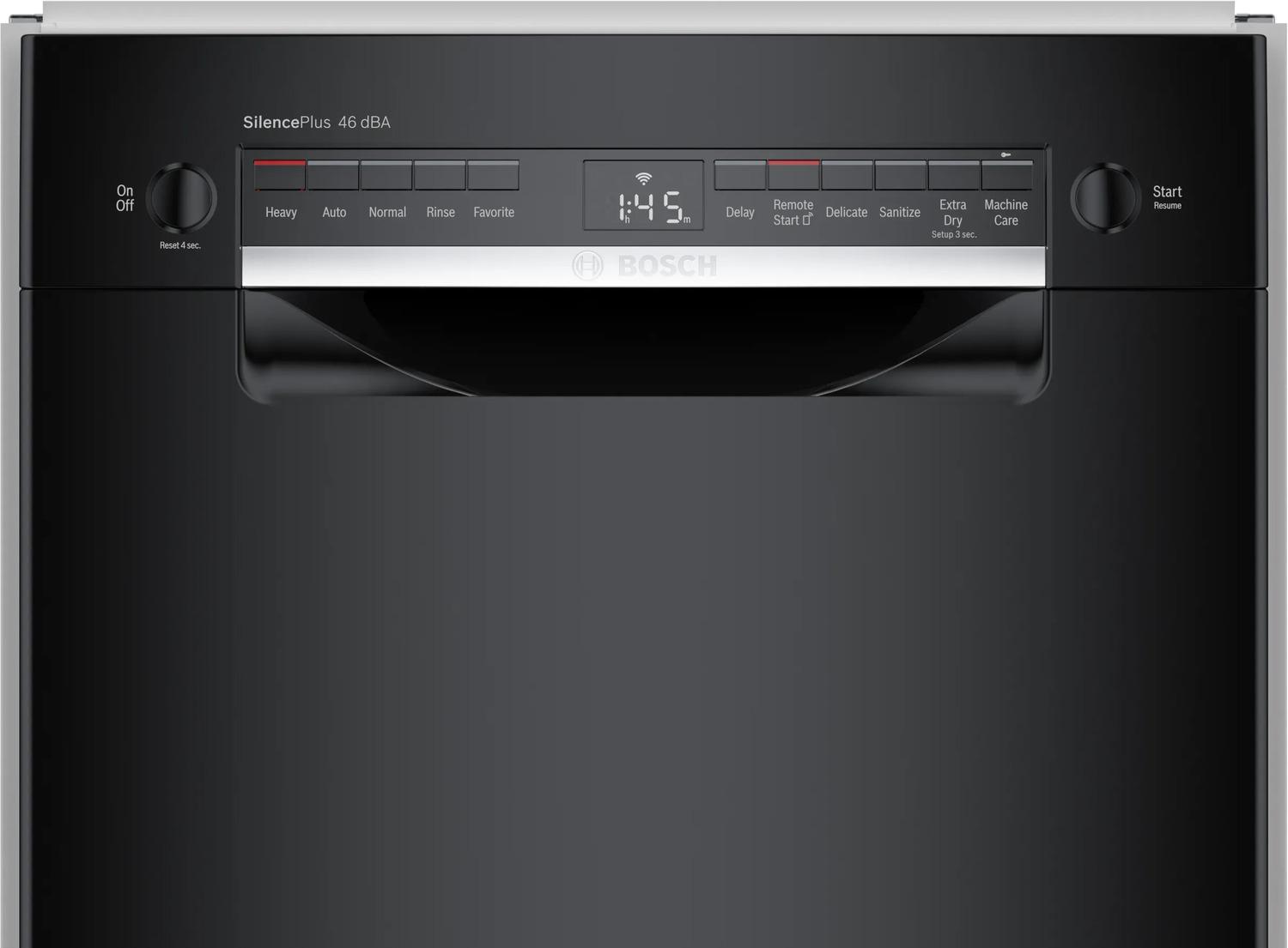 The Bosch SPE53C56UC 18-inch Built-In Dishwasher offers high performance in a space-saving design, making it perfect for smaller kitchens. The stainless steel tub enhances durability and drying performance, while the PrecisionWash™ system uses intelligent sensors to adjust the cleaning cycle for optimal results.