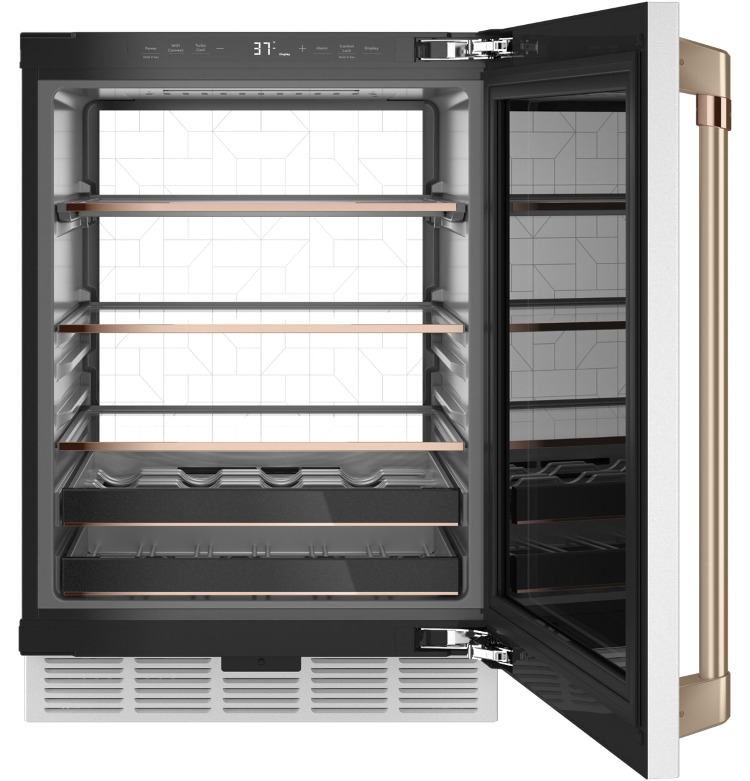The Café CCP06BP4PW2 is a sophisticated 24-inch built-in smart beverage center designed to enhance your entertaining experience. With a generous 5.1 cu. ft. capacity, it accommodates up to 126 cans and 14 bottles, ensuring ample space for your favorite beverages.