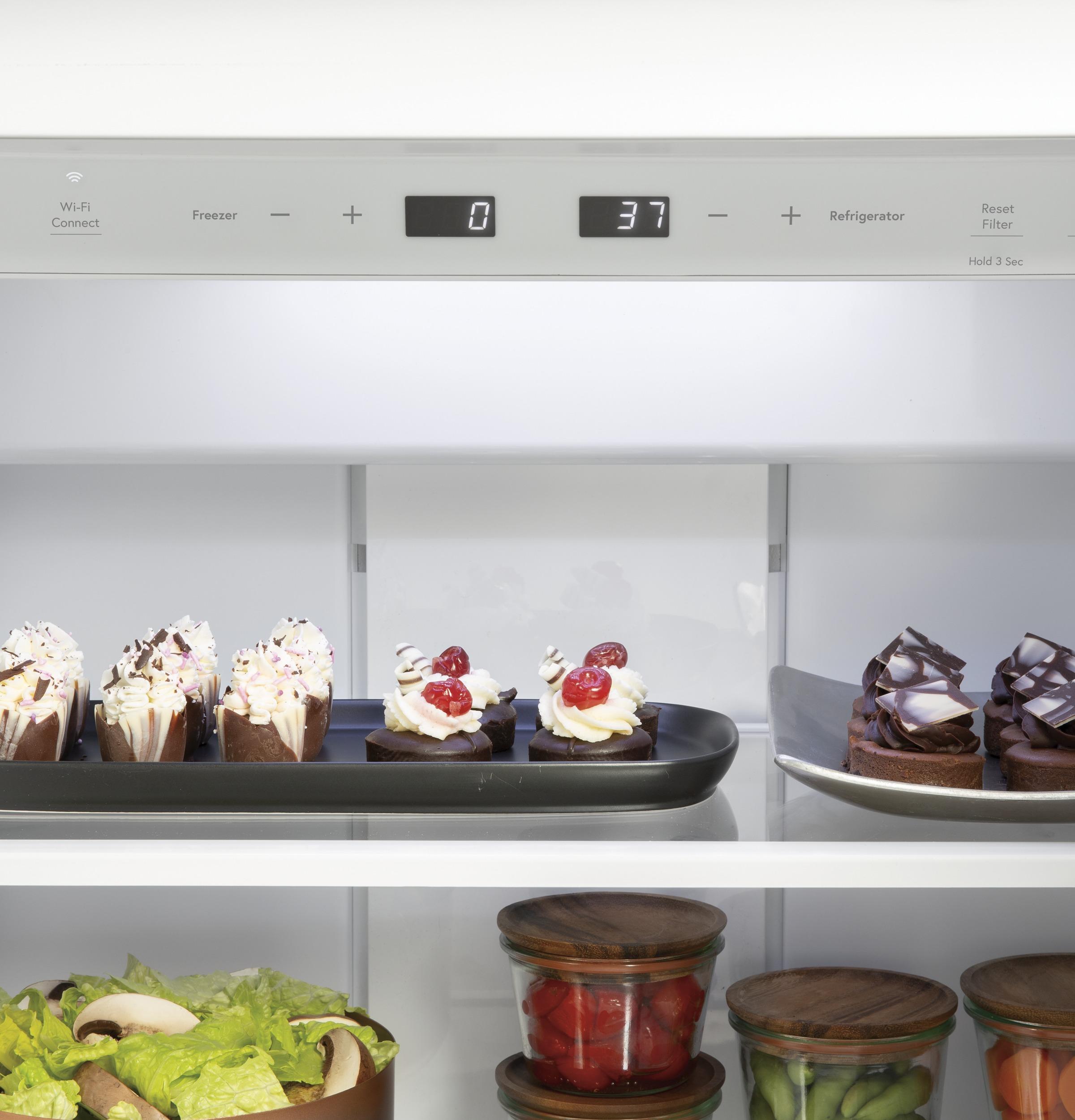 Equipped with WiFi Connect technology, this refrigerator allows you to monitor and control settings remotely through a smartphone app, providing convenience and peace of mind. The showcase LED lighting illuminates the interior, making it easy to locate items and adding a touch of elegance. Adjustable spillproof glass shelves offer flexibility in organizing your food and contain spills for easy cleanup. The factory-installed ice maker ensures a steady supply of ice, and the advanced water filtration system provides clean and fresh-tasting ice and water.