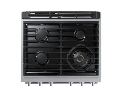Equipped with SimmerSear™ Burners, this range provides flexible temperature control, allowing you to quickly boil water with up to 20,000 BTUs of power or maintain a gentle simmer at 750 BTUs. The all-brass, dual valve, dual ring burners offer precise heat adjustments for various cooking needs.