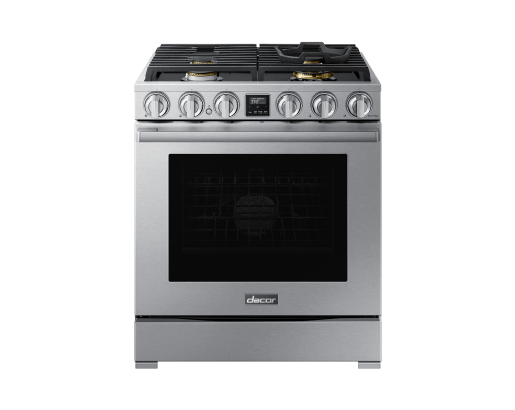 The Dacor DOP30T840GS 30-inch Freestanding Gas Range combines innovative cooking features with a stylish design to enhance your kitchen experience. The Dual Four-Part Pure Convection system ensures superior consistency and zero flavor transfer by evenly distributing heat throughout the oven, reducing cooking time and delivering exceptional results.