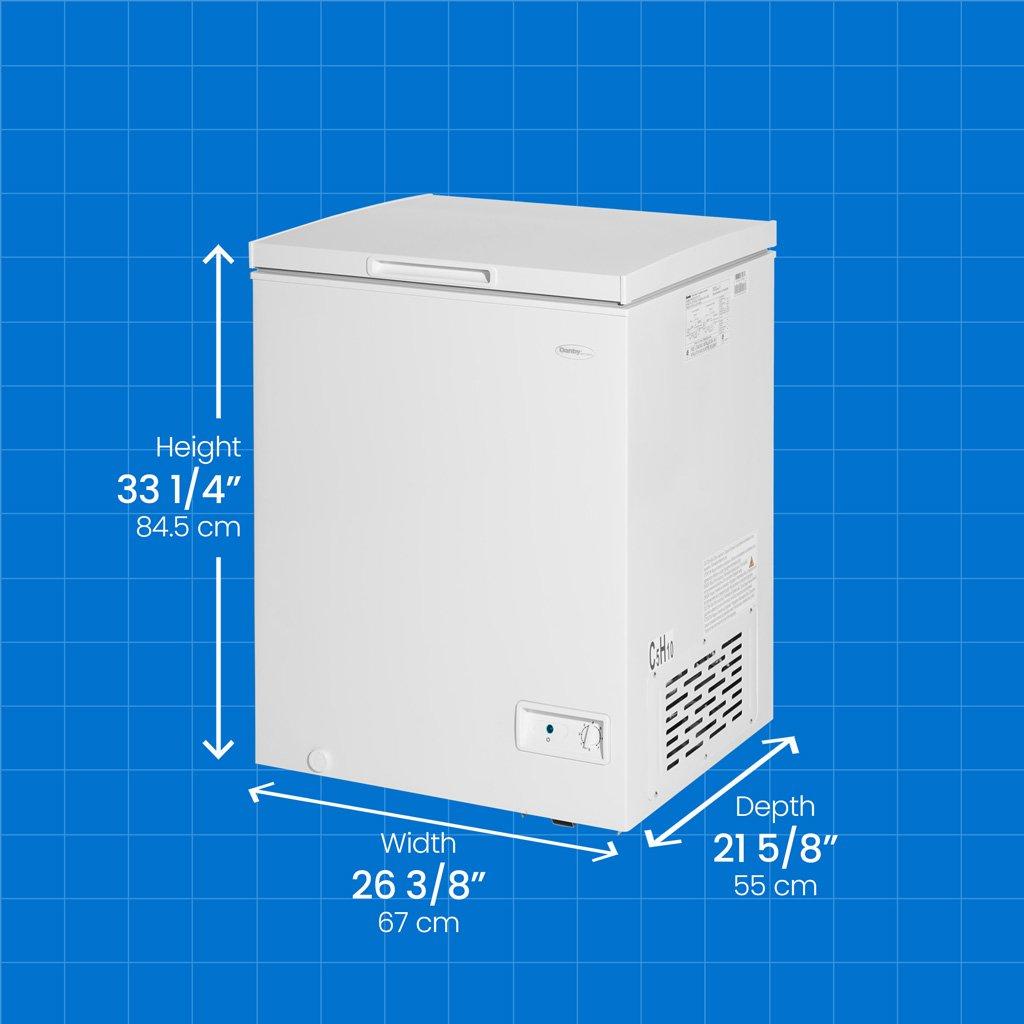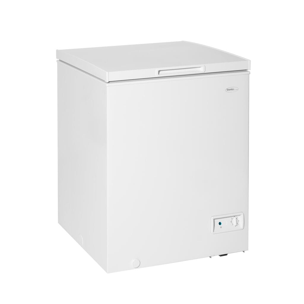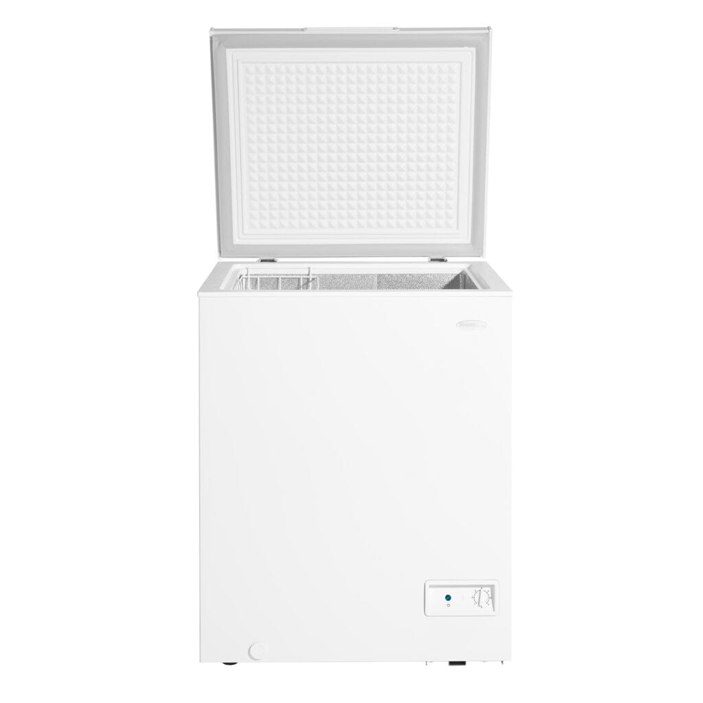 The Danby Diplomat 5.0 cu. ft. Chest Freezer is an ideal solution for households, cottages, offices, or any other location requiring additional storage space for frozen foods. Our power-on indicator light enables you to confirm the safety of your frozen items' preservation quickly and conveniently. This model is Garage Ready & able to maintain optimal performance at external temperatures between 0F to -110F (-17C to -43C). The 360-degree cooling system utilizes D-shaped coils that snugly hug the inner wall to optimize the freezing time of newly added foods in the freezer, which preserves nutrients. This model is DOE-compliant, saving you energy and money. This freezer can sit closer to walls thanks to the new thinner profile hinges. Additionally, the counter-balance hinges enable the lid to stay open at any angle, providing easy access. The freezer is equipped with a removable storage basket to help you separate and organize your food.