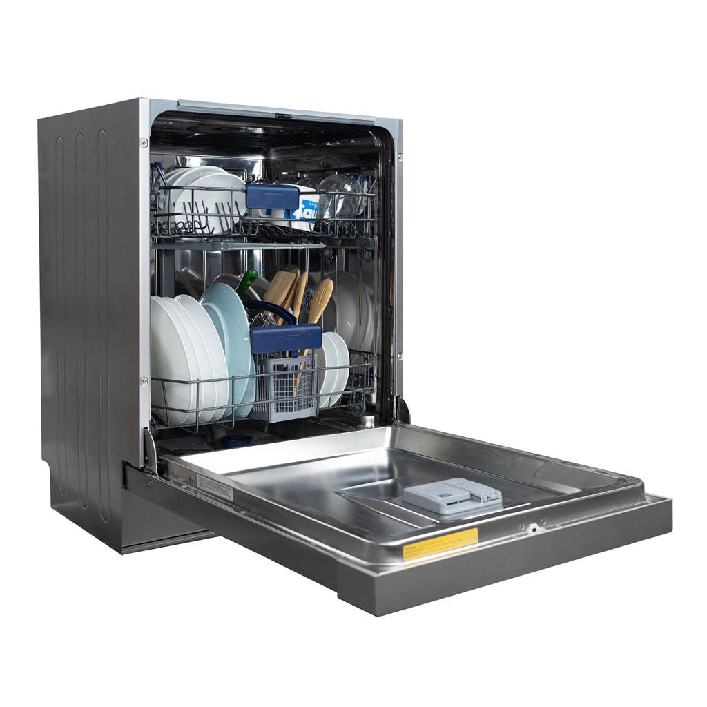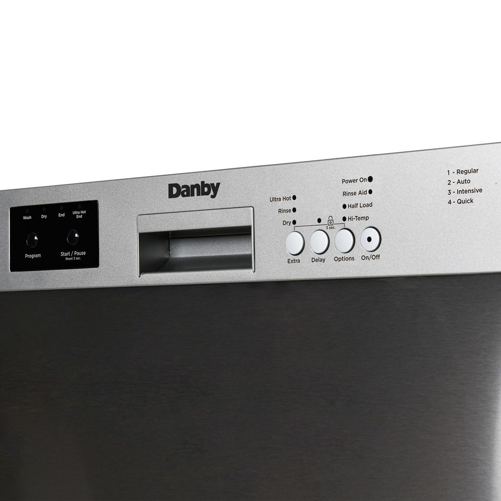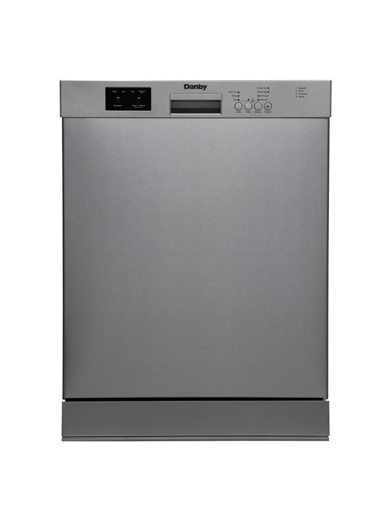 The Danby DDW2400ESS 24" Built-In Dishwasher in Stainless Steel combines durability, efficiency, and style. Its stainless steel tall tub design resists stains, odors, and rust, ensuring a pristine look for years. Operating quietly at 51 dB, it maintains a peaceful kitchen ambiance. Energy Star compliant, this dishwasher is both eco-friendly and cost-effective. With a 14 place settings capacity and 4 versatile wash cycles, it easily handles large family meals or dinner parties. The convenient delay start feature allows you to schedule washes up to 24 hours in advance. The fixed upper dish rack and upper basket mug shelf provide secure and organized spaces for all your dishes. Available in both White and Stainless Steel finishes, it seamlessly integrates with any kitchen decor, offering both functionality and elegance.