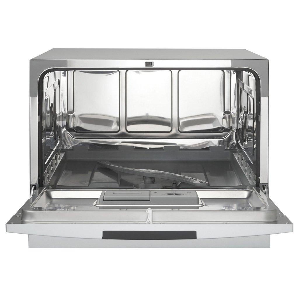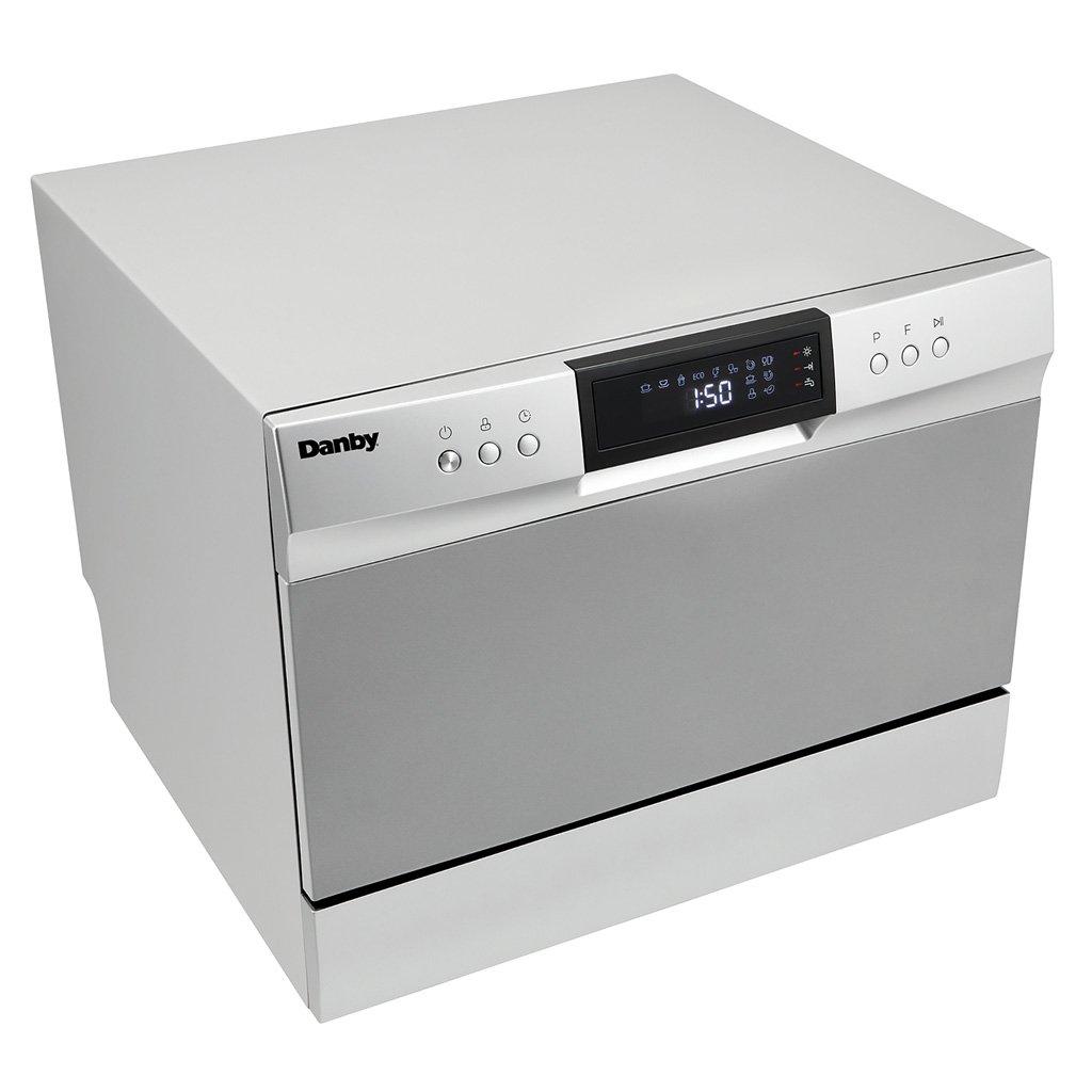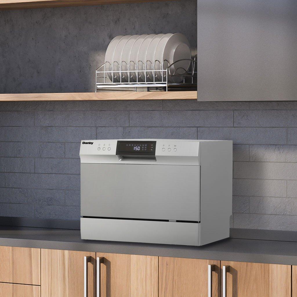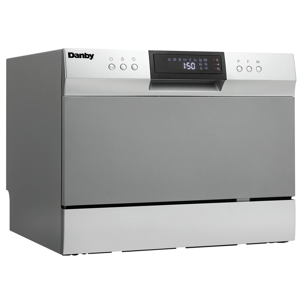 Leave the dirty dishes up to Danby's ENERGY STAR rated counter-top dishwasher, ideal for small space living in a condo or apartment. This unit utilizes just 3.1 gallons (11.7 L) of water for a normal cycle. Choose between eight different wash cycles, heavy, normal, baby care, ECO, glass, speed, rinse, and mini party. Enjoy quick and straightforward installation with the quick connect feature compatible with most faucets. Keeping the appliance clean is a breeze due to its durable stainless-steel interior. There is an auto detergent and rinse agent dispenser for your convenience, and this chic dishwashing unit fits under just about any cabinet.