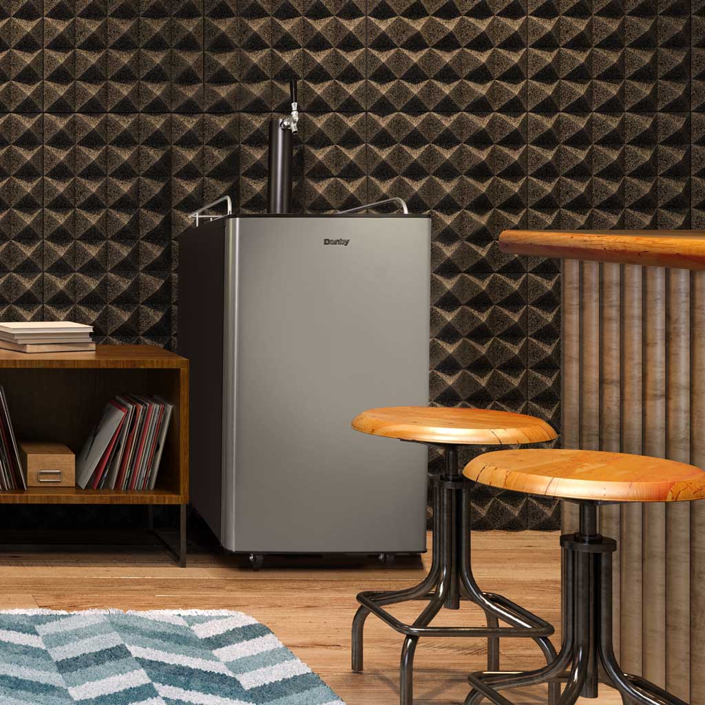 You will be the best party host with this ultimate indoor freestanding kegerator by Danby Appliances, whether you are a beer drinker or an avid entertainer. This single tap keg cooler can be used as a mini-fridge and is an exceptional addition to any wet bar, game room, or man cave, and provides the convenience of cold beer on tap at once. It uses an environmentally-friendly R600A refrigerant and has an automatic-defrosting system, making for an excellent product with hassle-free maintenance. This keg cooler includes a single gauge regulator, CO2 tank, and required hardware. It has a precise mechanical thermostat to keep your beer cold and a spotless-steel finish resembling stainless-steel but much easier to clean. Did we mention it has a scratch-resistant worktop? Furthermore, this unit includes an American Sankey coupler, a chrome guard rail, and drip tray, and optional swivel casters for easy portability. The door hinge is reversible, which allows you to adjust it for either left or right-handed opening based on preference.