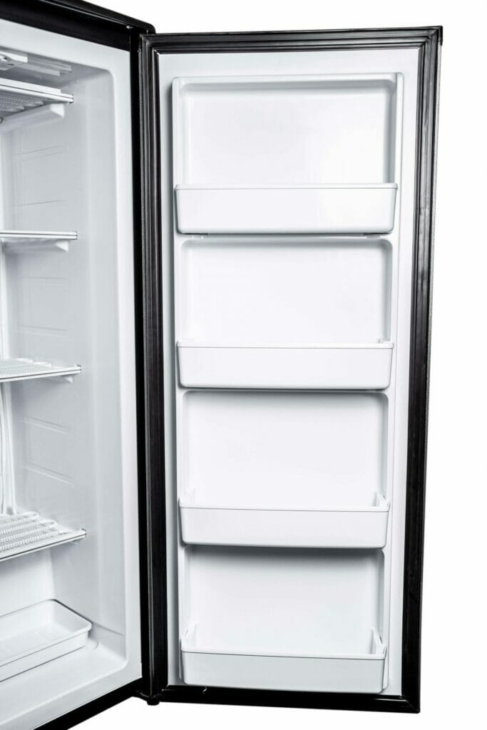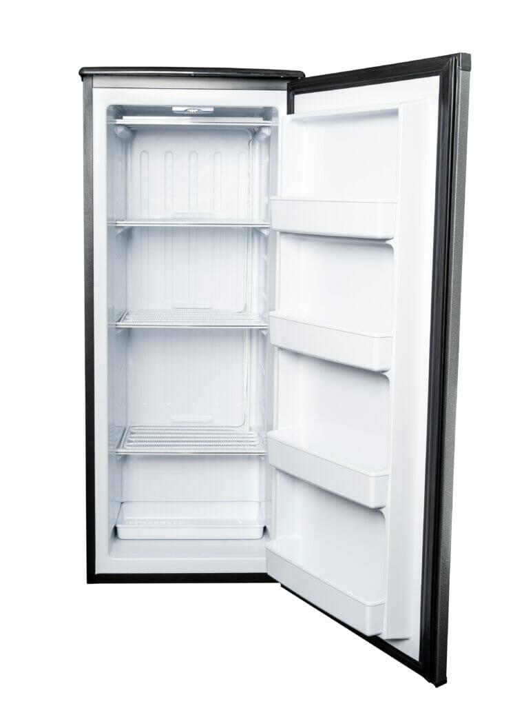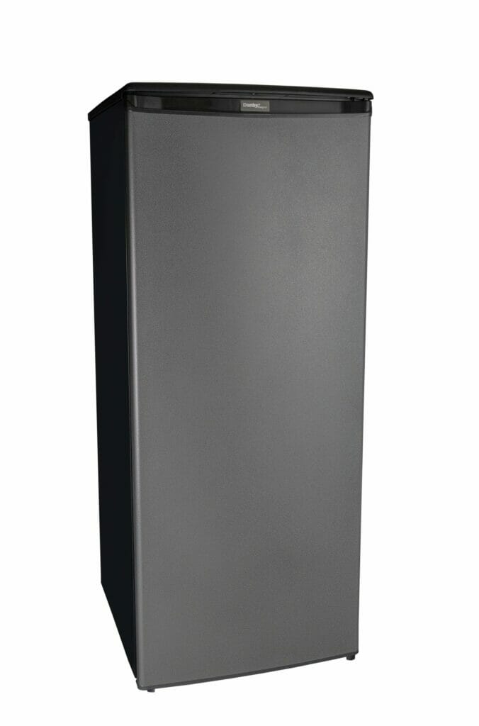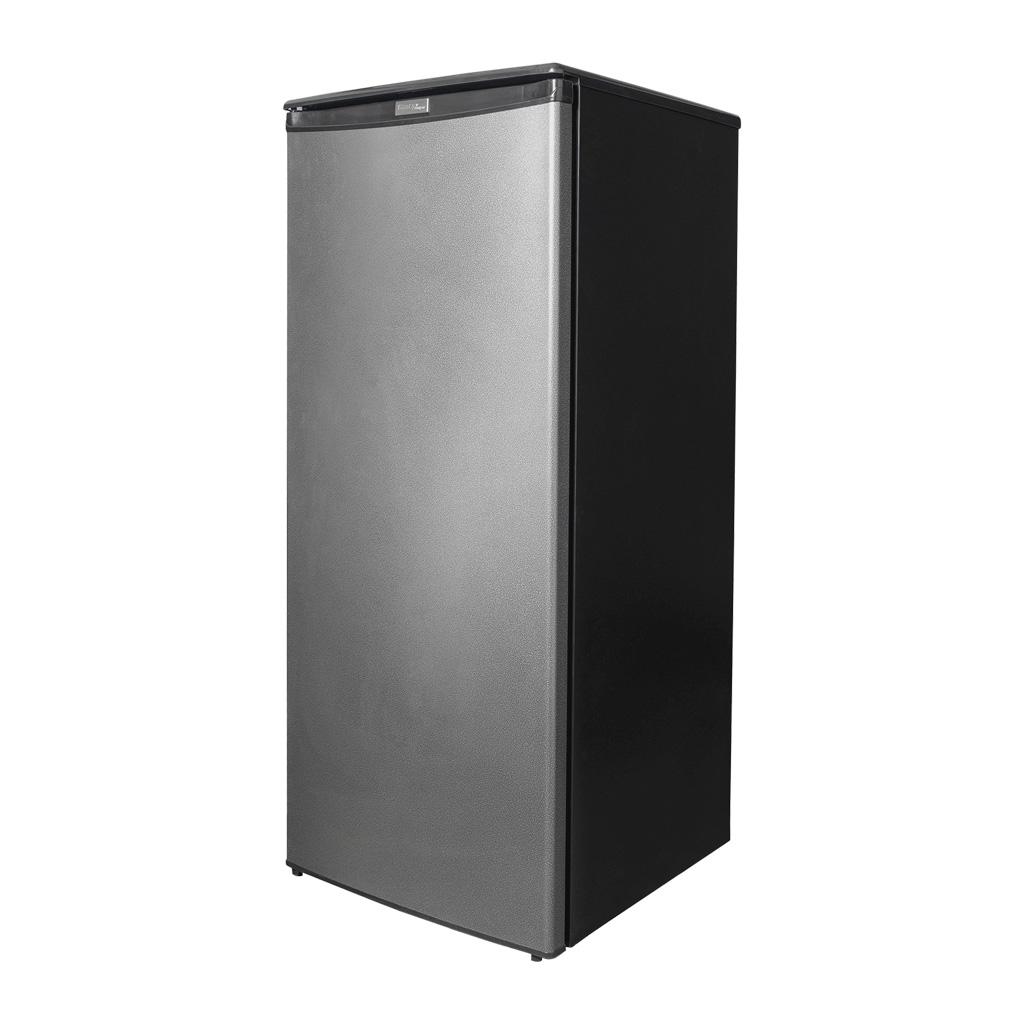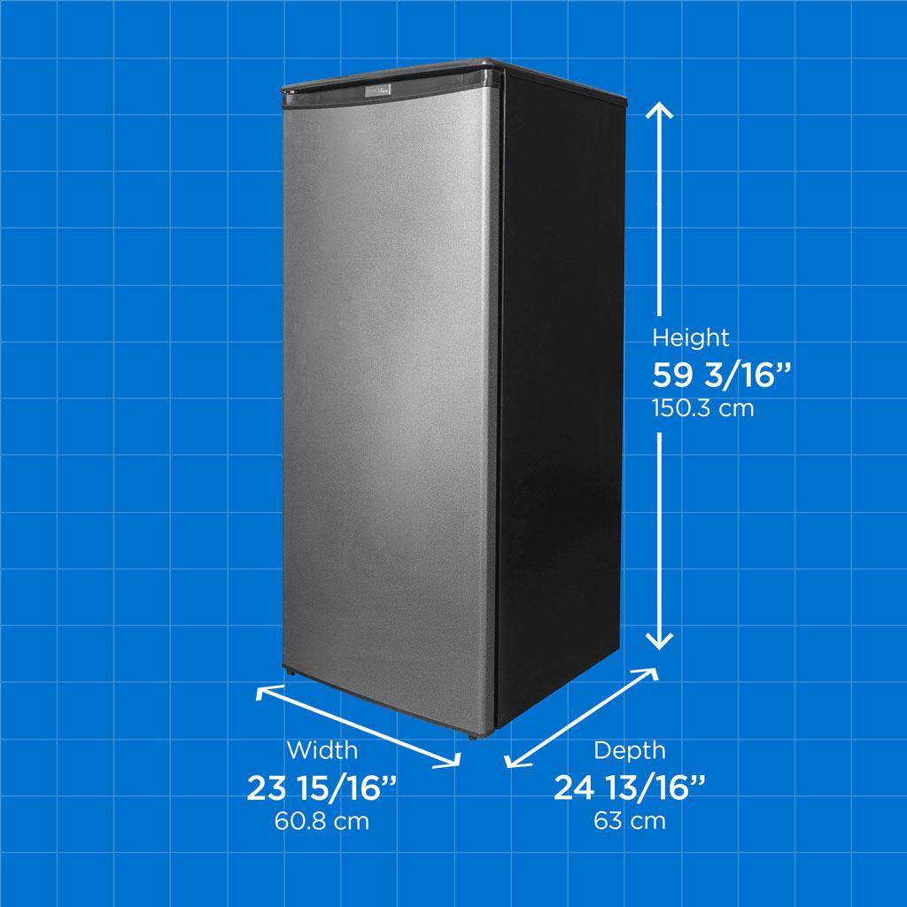 Stock up on your family's frozen favorites with a Danby Designer black upright freezer, ideal for a basement, kitchen, or garage. Save on money and energy with this ENERGY STAR rated product which is great for saving floor space with its upright design. In addition, this unit features an abundance of space for food organization with four storage shelves and four-door shelves for smaller items. This model is garage ready and can perform in temperatures from 0F to 110F (-17C to 43C). Boasting 8.5 cu. ft. (241 L) of freezer space for frozen meals, meats, vegetables, and more, making it perfect for couples and small families. The convenient manual-defrosting function makes it easy to maintain and stay ice-free, and it also features an internal drip tray. The ultra-modern mechanical thermostat is a breeze to program and monitor, while the scratch-resistant worktop is ideal for storing extra accessories. This modern appliance also features a clever, reversible door hinge that enables you to adjust it for a left or right-handed opening. Included is an industry-leading 5-year warranty on parts and labor with in-home service.