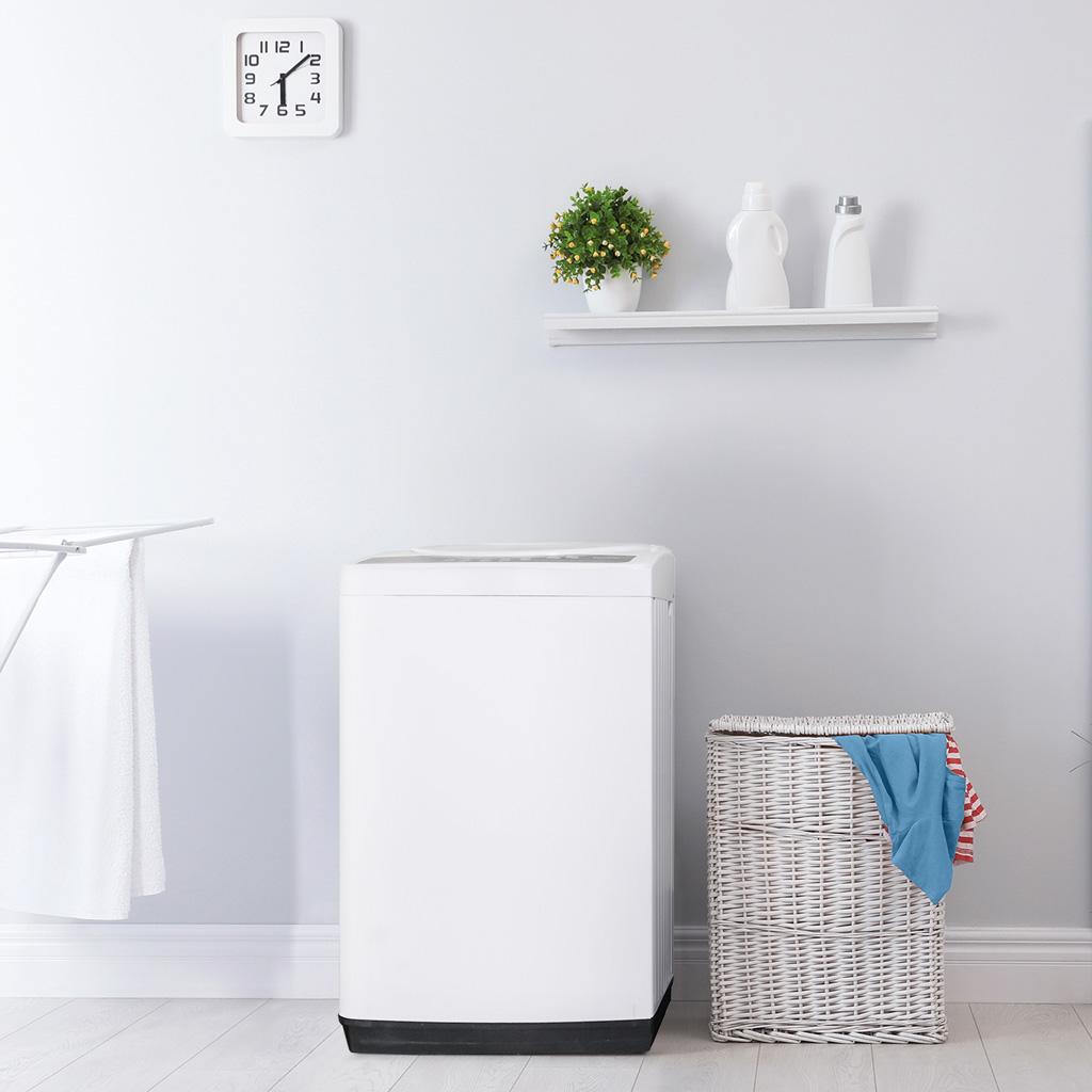 This 1.8 cu.ft, portable top-loading washing machine by Danby is perfect for anyone living in an apartment or small living space without access to laundry. Choose between 4 wash cycles and 10 different water levels to accommodate various load sizes. The Pulsator allows water and detergent to more efficiently penetrate fabrics, ensuring even your heaviest loads come out clean. To install this portable unit, simply connect the hose to your standard faucet using the connection kit included. Rear rollers make it easy to store this unit when not in use. Additional features include a stainless steel drum, childproof lock, auto-balancing, overflow protection and a worry-free 12-month warranty on parts and labour with in-home service.