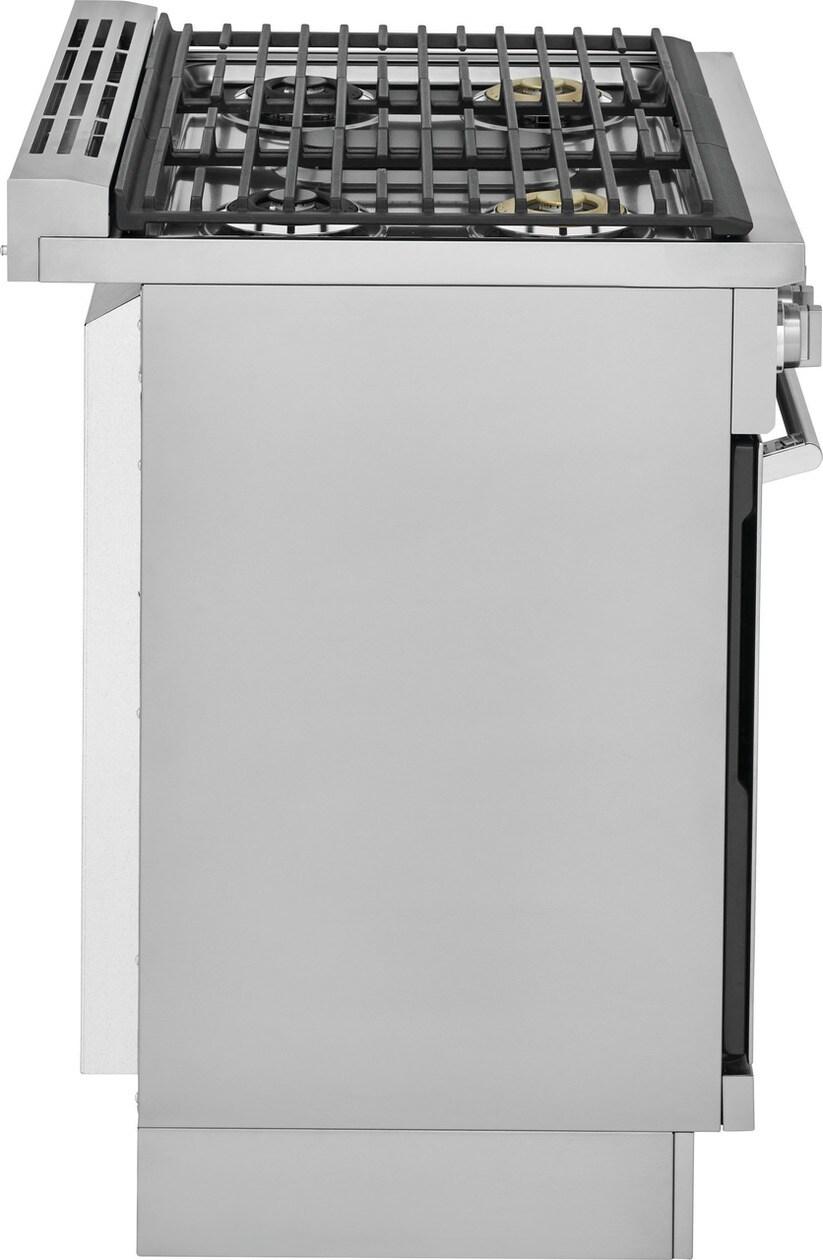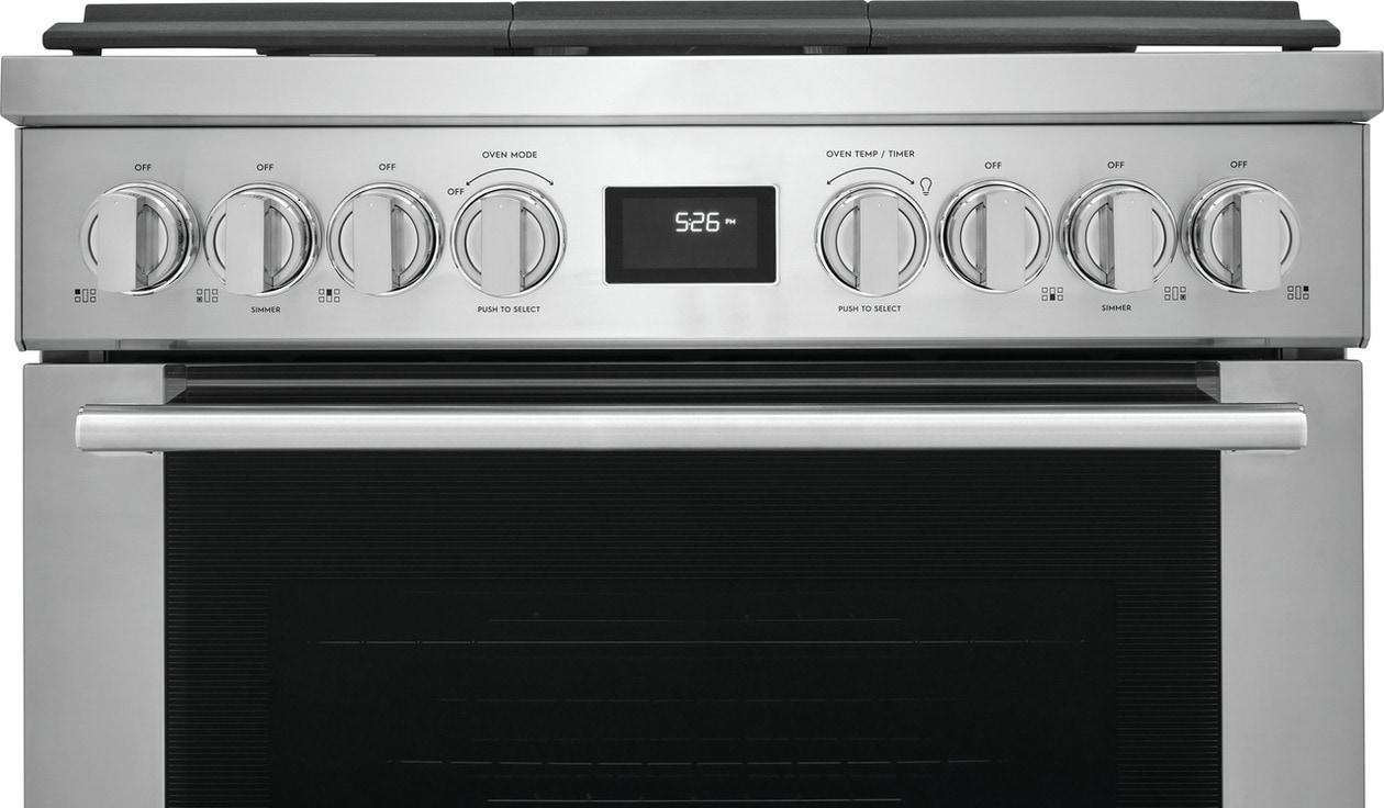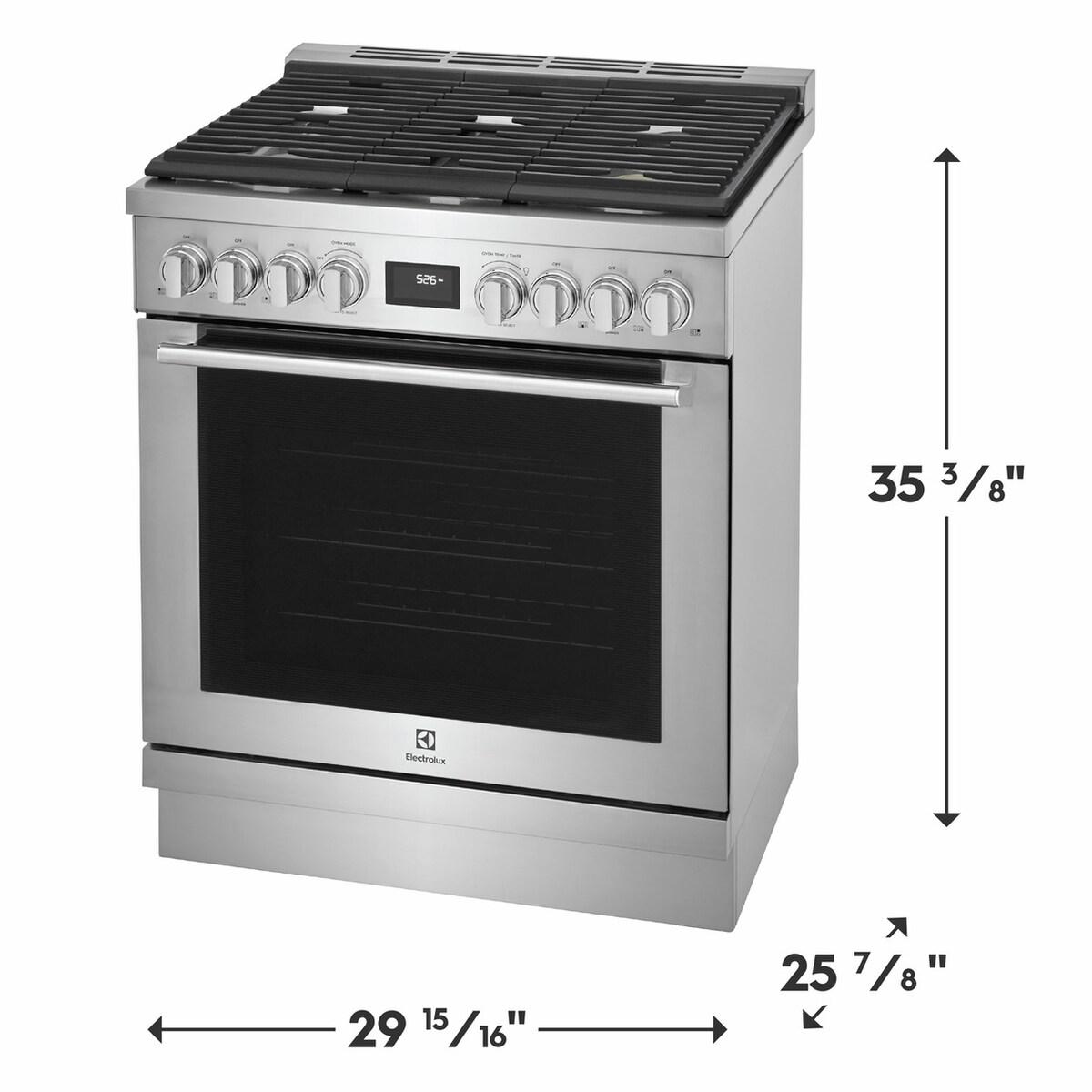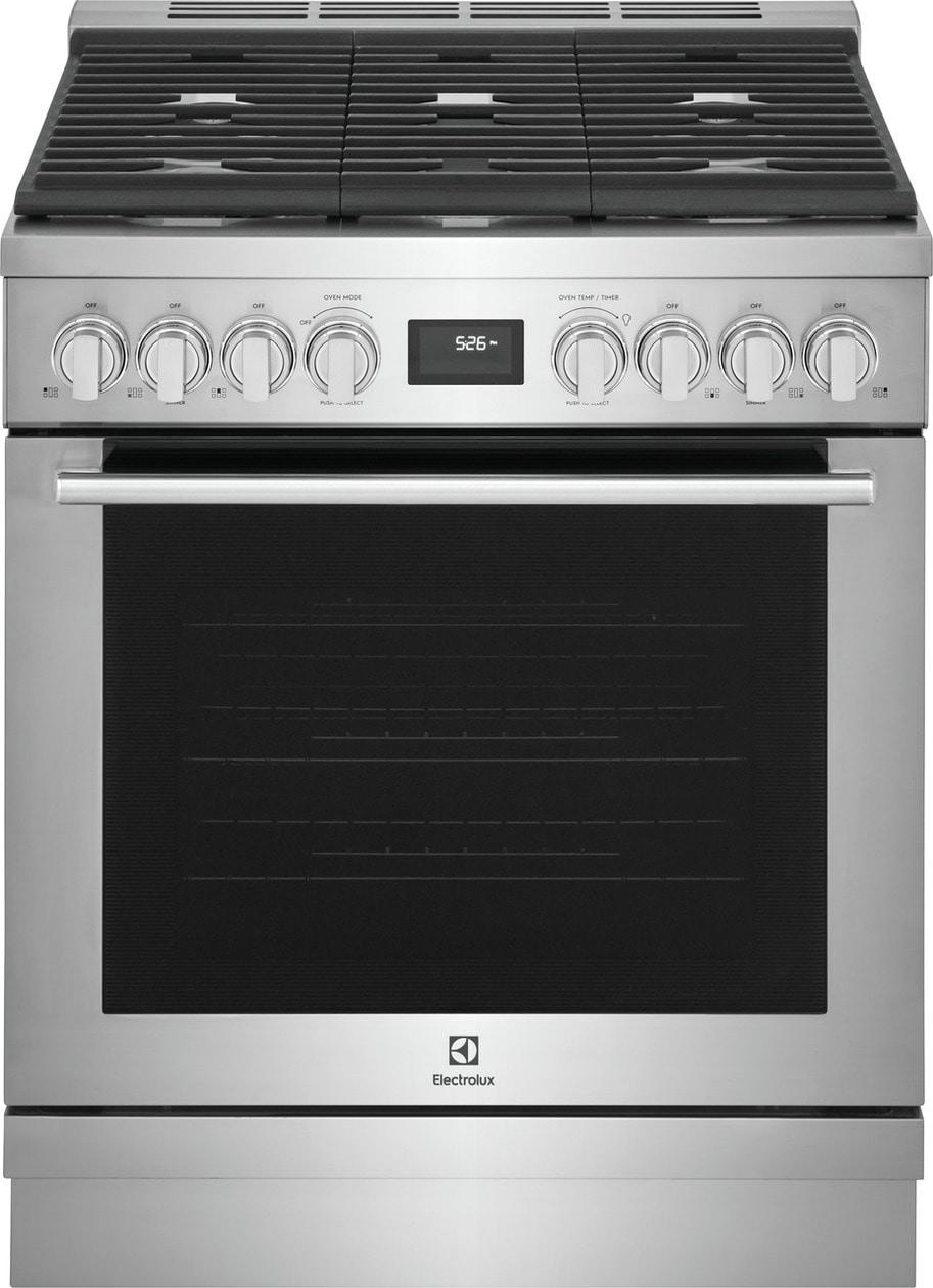 Full-framed linear grates, sturdy knobs, premium brass burner accents and the Electrolux signature pinstriped glass lend to the sleek design that make this range a focal point of your kitchen