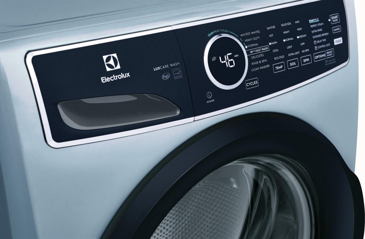 The Electrolux ELFW7437AG 27-inch Front Load Washer is designed for superior cleaning performance and fabric care. With the LuxCare® Wash System, it provides improved wash actions, temperature control, and smart load sensing for a deep clean. The Perfect Steam™ feature gently penetrates fabrics to lift stubborn stains, while the Sanitize cycle eliminates 99% of bacteria and 95% of allergens for enhanced hygiene. This washer also includes a 15-Minute Fast Wash option for quick loads and an Adaptive Dispenser™ that works with all types of detergent, including pod detergents. The StainTreat™ option optimizes temperature and wash actions to tackle tough stains effectively. With its ENERGY STAR® certification, this washer maximizes efficiency while maintaining top performance.