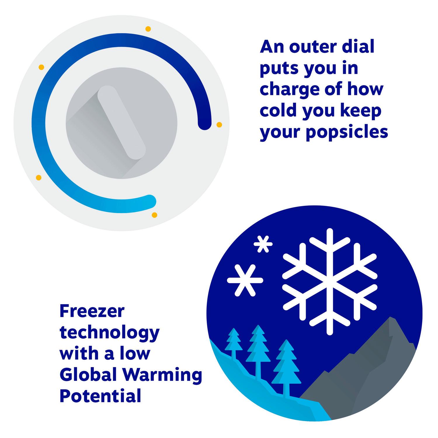 A temperature control dial puts you in charge of how cold you keep your popsicles. The outer dial allows you to easily control your deep freezer's temperature with the turn of a knob - without opening the lid.