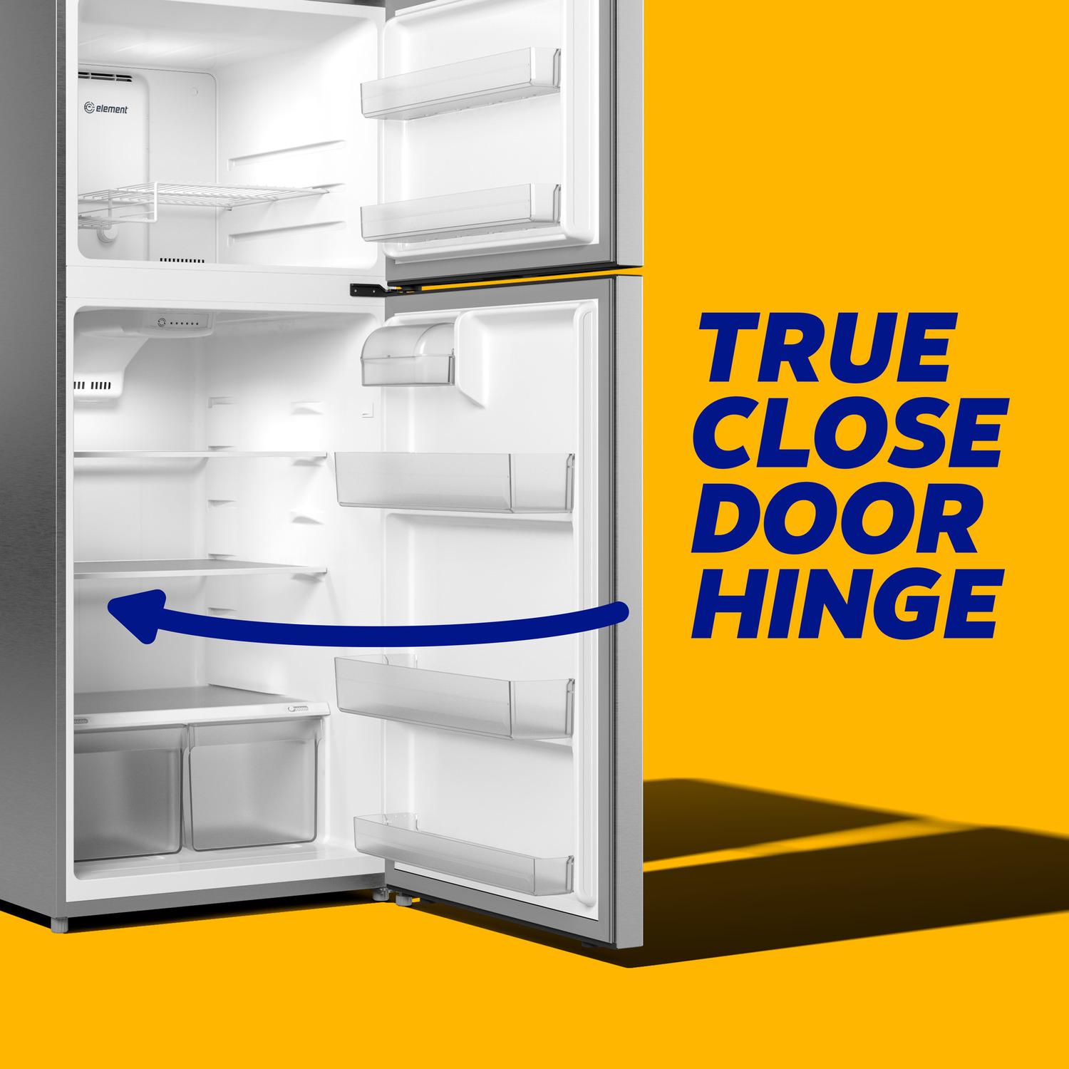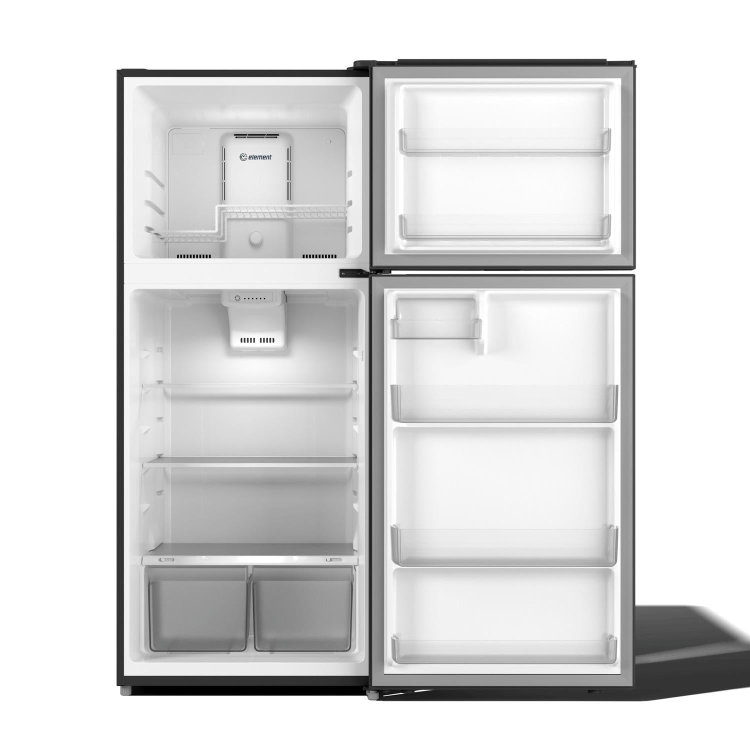 Are you searching for a new fridge? The 17.6 cu. ft. Top Freezer Refrigerator from Element Electronics is the perfect choice for you home. With two full-width adjustable glass shelves, you can customize its storage space. Plus, flexible door storage keeps your gallon-sized drinks handy while freeing up valuable shelf space. Two crisper drawers with humidity control keep your fruit and vegetables delicious and ripe. The true close door hinge prevents the door from slamming and ensures its always securely sealed shut. Element refrigerators are ENERGY STAR(R) certified, lessening energy usage. The recessed handle creates a modern look while saving space in your home. The reversible door, logo-less exterior, and black finish blend with your current appliances seamlessly. The freezer is equipped with a multi-level shelf for storing all your frozen goodies, no matter their size. Element refrigerators feature a no-frost system, reducing the chance for odors and freezer burn. With an extended 2-year warranty, buying a new fridge doesn t have to be a hassle. Bring it home.
