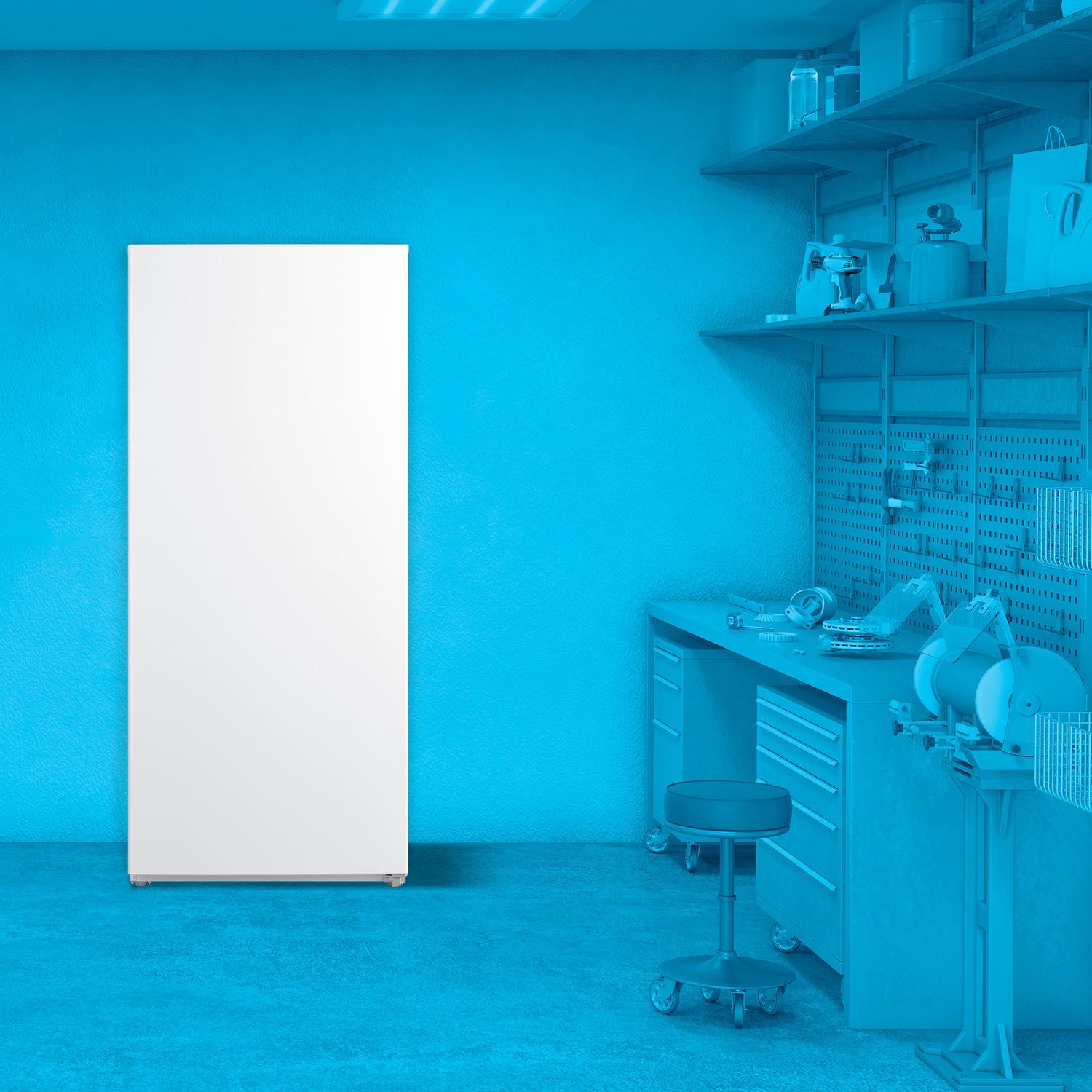 Element's 21 cu. ft. Upright Freezer gives you more space for all of your frozen favorites. It s perfect for your garage, basement, kitchen, utility room, or even man cave - wherever you need easy access to your favorite frozen foods. With four adjustable shelves, you can customize its storage space to fit large or small containers easily. It can be converted from a freezer to a refrigerator with a simple electronic control. Plus, it's garage ready, making it perfect for storing popsicles in the summer. The logo-less exterior and white finish on Element s 21 cu. ft. upright freezer allow it to match any space seamlessly. It features an interior light for grabbing a late-night snack. Element s upright freezer uses a no-frost system, so your food never frosts over. This reduces the chance for odors and freezer burn that can affect the taste of your food. It comes Department of Energy certified to keep your electricity bills down. Bring it home.