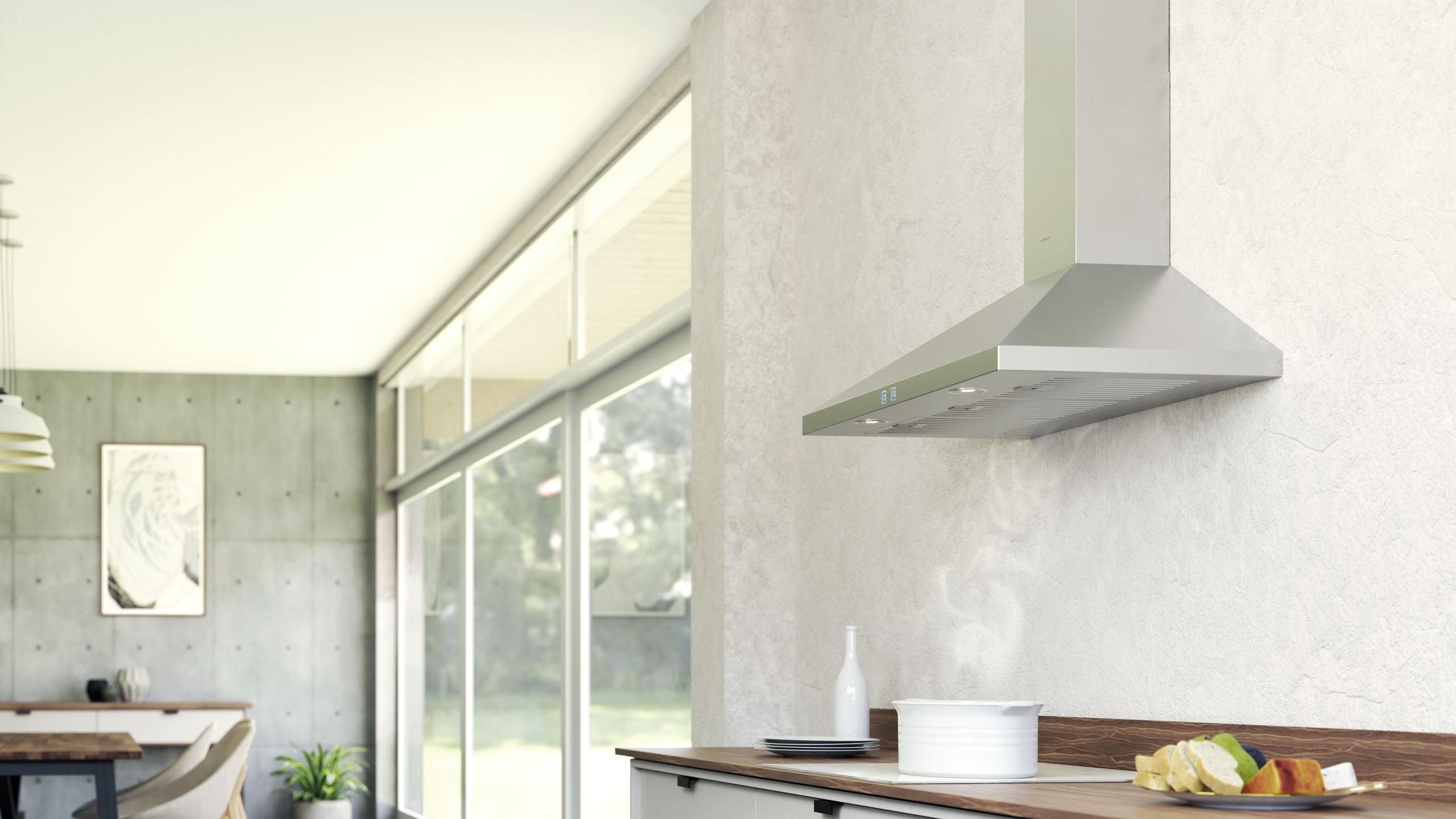 Bolsena with its pyramid-shaped angles and stainless steel finish, makes it a striking visual statement in any kitchen. Available in 30 or 36 widths, features backlit touch controls, LED lighting, and a 4-speed blower. It also features a telescopic chimney for up to 9 2 ceilings. Designed for standard ducted installation it can also be installed as a recirculating system using the kit available as an accessory.