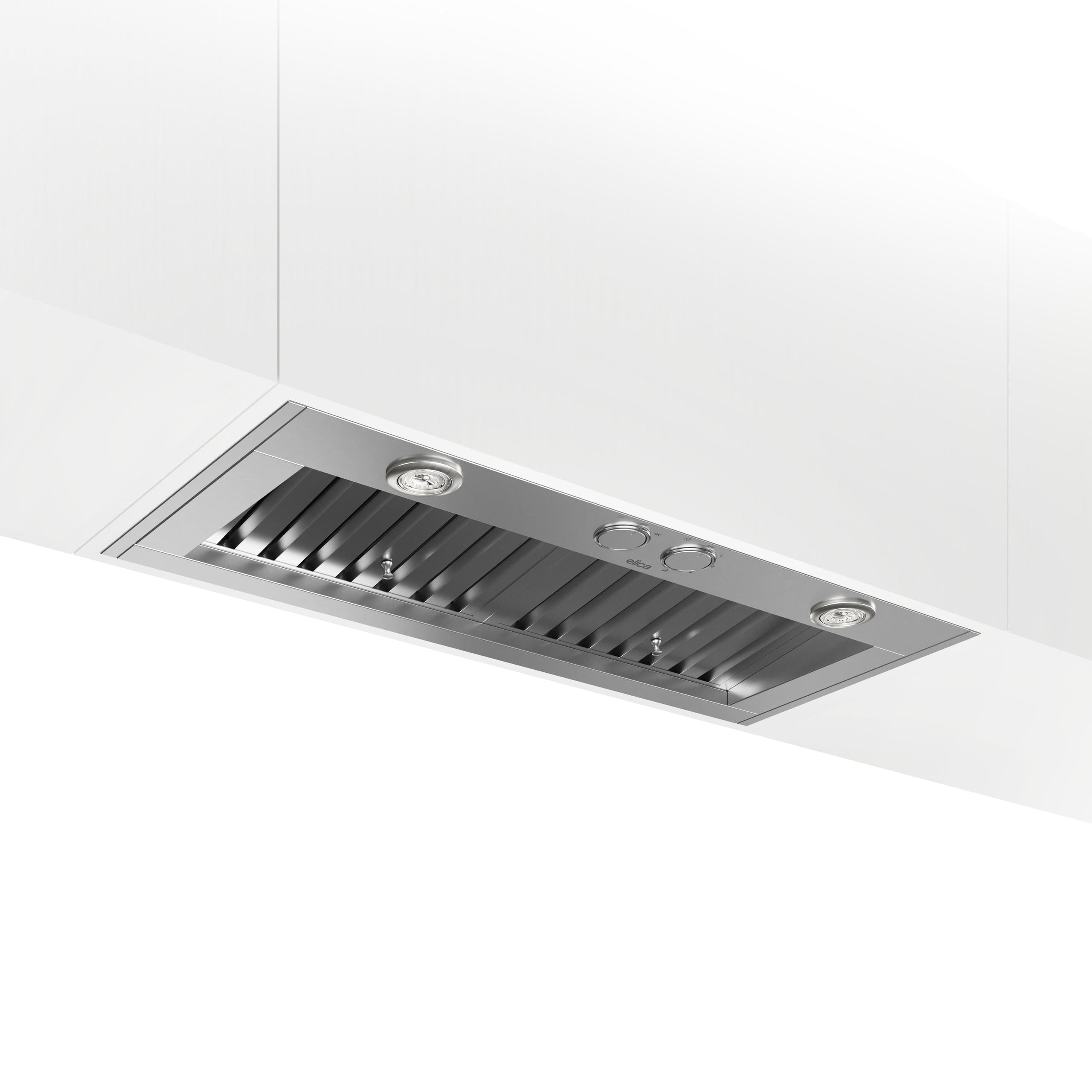 Scanno available in 28 , 34 & 46 width and only 15 5/ depth to support shallower cabinetry, and offer 4 speed, 600 and 1200 CFM blowers for extraordinary ventilating power. The All-In-One design avoids the need to purchase a stainless-steel liner. Scanno comes equipped with ergonomic rotating knob controls which discreetly recess out of sight when not in use and long-life LED lighting illuminates the cooking surface. *Damp-location approved