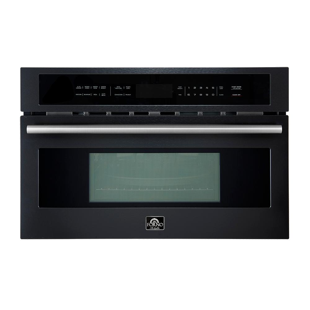The Forno Oliena 30" Microwave & Convection Oven in black combines sleek design with versatile functionality, making it an essential addition to any modern kitchen. Its durable stainless-steel interior ensures easy cleaning, while intuitive glass touch controls and an LCD display provide effortless navigation. With 1,000 watts of microwave power, it heats food quickly, boiling water in just 1 minute and 50 seconds. Switch to convection mode for even cooking with 1,700 watts of true convection, or utilize the 1,750-watt broil and 600-watt bake functions for perfectly cooked meals without using your main oven. Sensor cooking, auto menu options, and specialized modes like defrost, popcorn, and beverage heating enhance convenience. The rapid preheat feature minimizes wait times, so your dishes are ready faster. Designed for performance and efficiency, this combination microwave oven elevates your cooking experience with precision and speed.