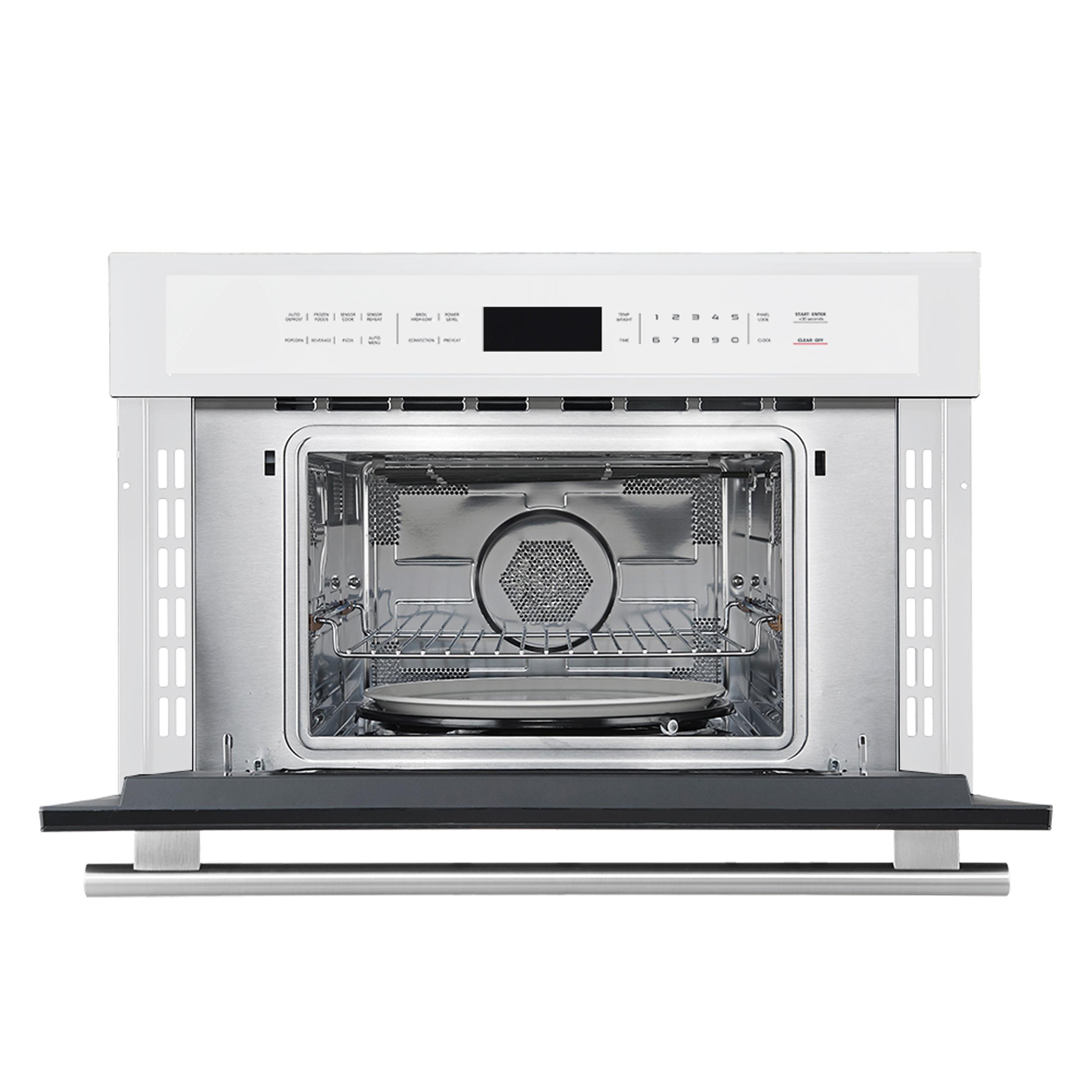 The Forno Oliena 30" Microwave & Convection Oven in white combines sleek design with versatile functionality, making it an essential addition to any modern kitchen. Its durable stainless steel interior ensures easy cleaning, while intuitive glass touch controls and an LCD display provide effortless navigation. With 1,000 watts of microwave power, it heats food quickly, boiling water in just 1 minute and 50 seconds. Switch to convection mode for even cooking with 1,700 watts of true convection, or utilize the 1,750-watt broil and 600-watt bake functions for perfectly cooked meals without using your main oven. Sensor cooking, auto menu options, and specialized modes like defrost, popcorn, and beverage heating enhance convenience. The rapid preheat feature minimizes wait times, so your dishes are ready faster. Designed for performance and efficiency, this combination microwave oven elevates your cooking experience with precision and speed.