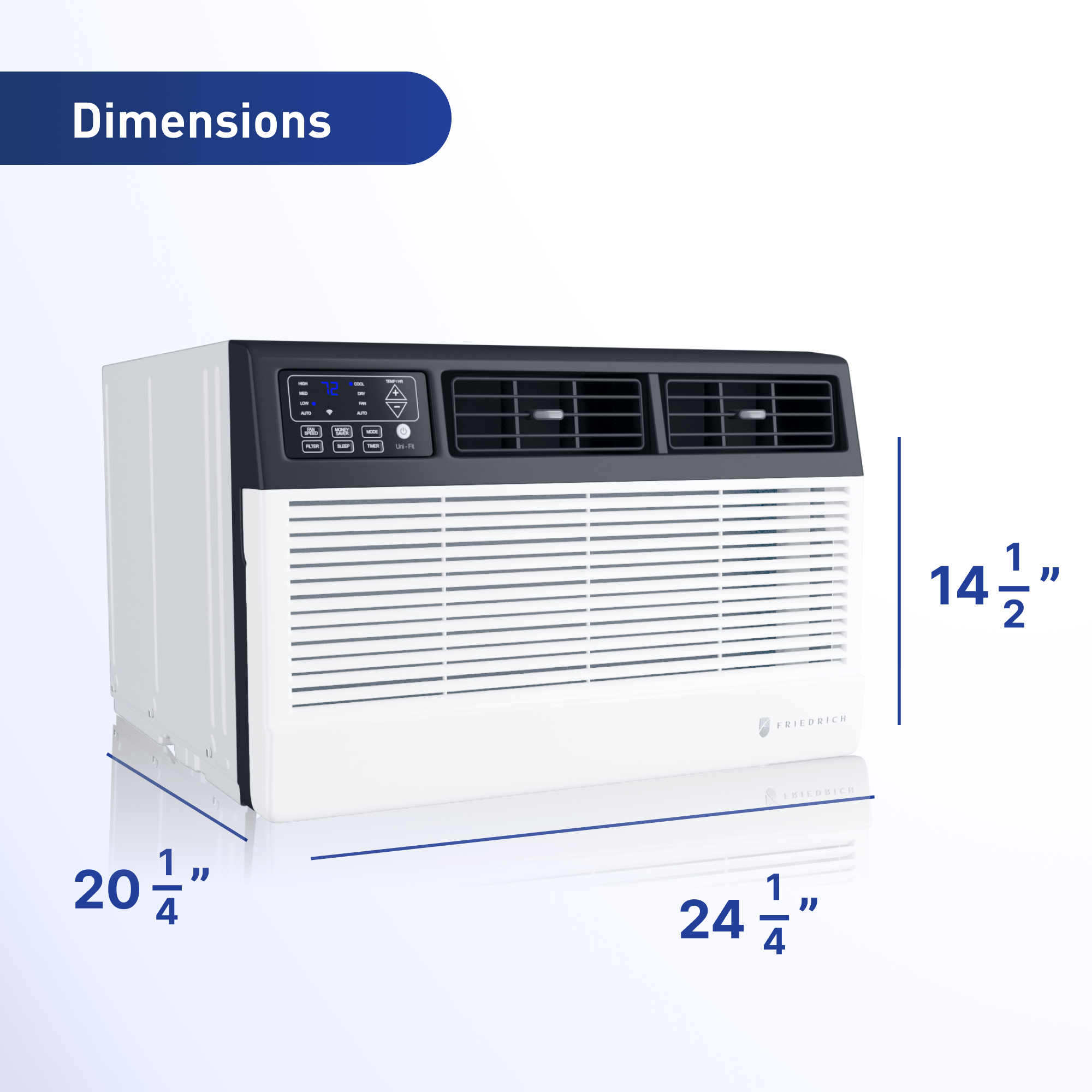 The Friedrich(R) Uni-Fit(R) Smart Through-the-Wall Air Conditioners with Electric Heat offer universal fit for easy replacement in most sleeves, with the chassis designed to fit multiple existing sleeves from 24 1/2 to 27 . They re engineered for quiet operation with its QuietMaster(TM) Technology ensuring up to 25% quieter operation. Crafted with commercial-grade quality and precision engineering, it thrives in demanding applications, delivering long-lasting performance and superior value compared to competitors. With the FriedrichGo(TM) app, setup is simple, allowing you to create personalized cooling schedules and adjust settings remotely, providing ultimate control anytime, anywhere. The Friedrich Uni-Fit(R) Smart Through-the-Wall Air Conditioners not only keeps you cool but also sets the bar high for excellence in cooling solutions.