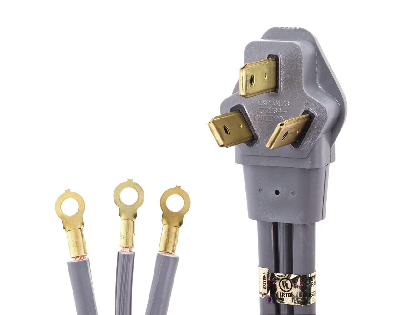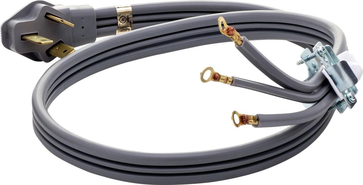 Smart Choice 4-foot long, 50 amp 3-wire range power cord used to connect your electric range to a 3-prong range receptacle.