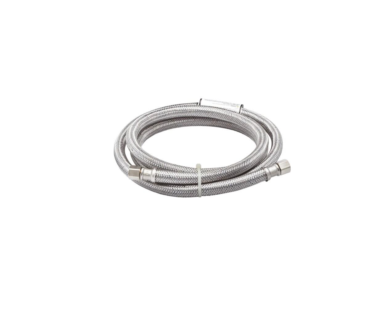 Connect your refrigerator to the refrigerator waterline with this stainless-steel braided connector hose with a 3 layer PVC core hose, for a quick and reliable setup. The kit includes a 5 foot stainless steel refrigerator waterline with a nylon braided finish, chrome nickel-plated brass nuts and 1/4" comp x 1/4" comp.