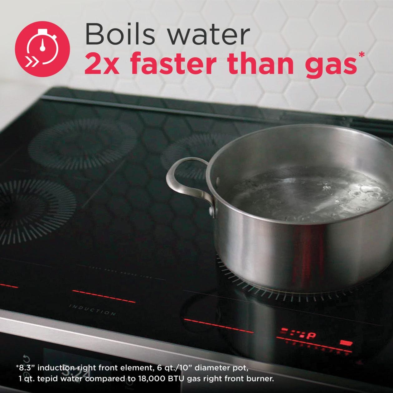 With induction, heat transfers directly to the cookware bypassing the cooktop surface, making induction incredibly fast.