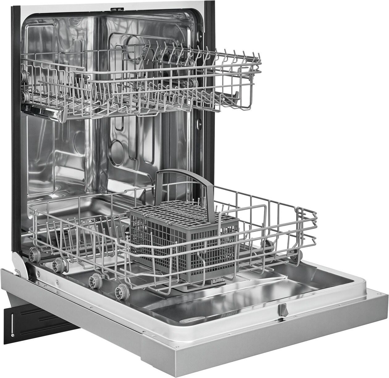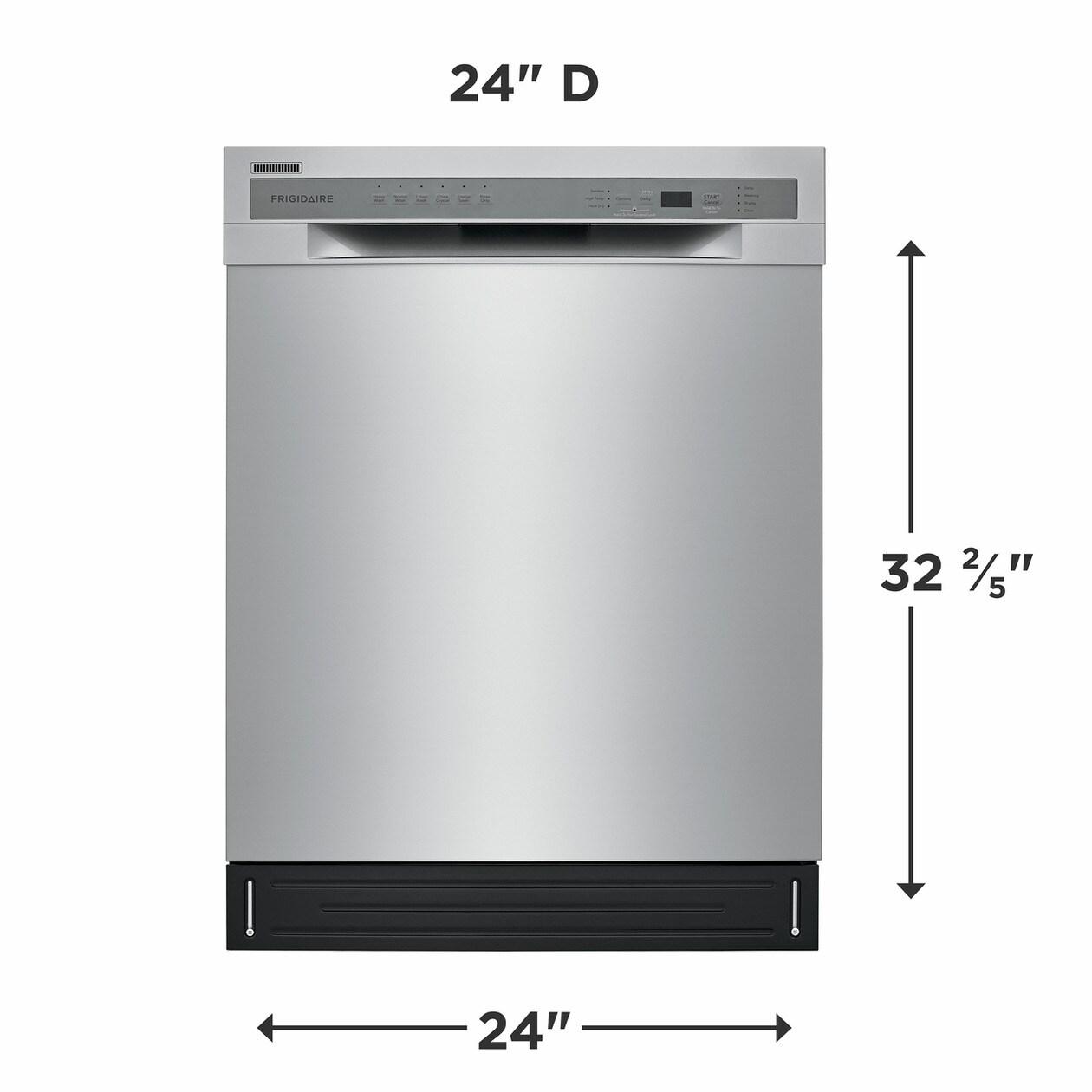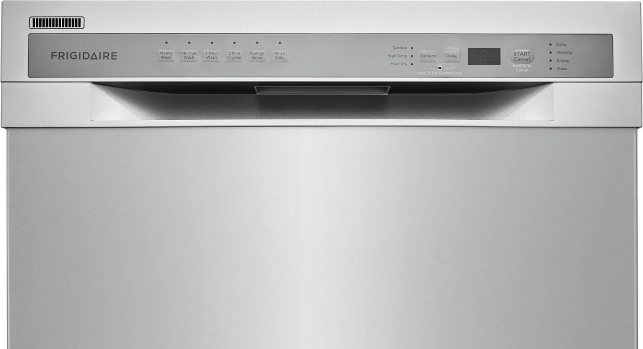 The Frigidaire 24" Built-In Dishwasher is ADA Compliant and features a dual spray arm system that delivers a thorough clean every time. Remove 99.9% of common household bacteria with the Sanitize Cycle, while cleaning up to 12 place settings in one cycle. The Heated Drying System helps ensure your dishes are dry the first time.