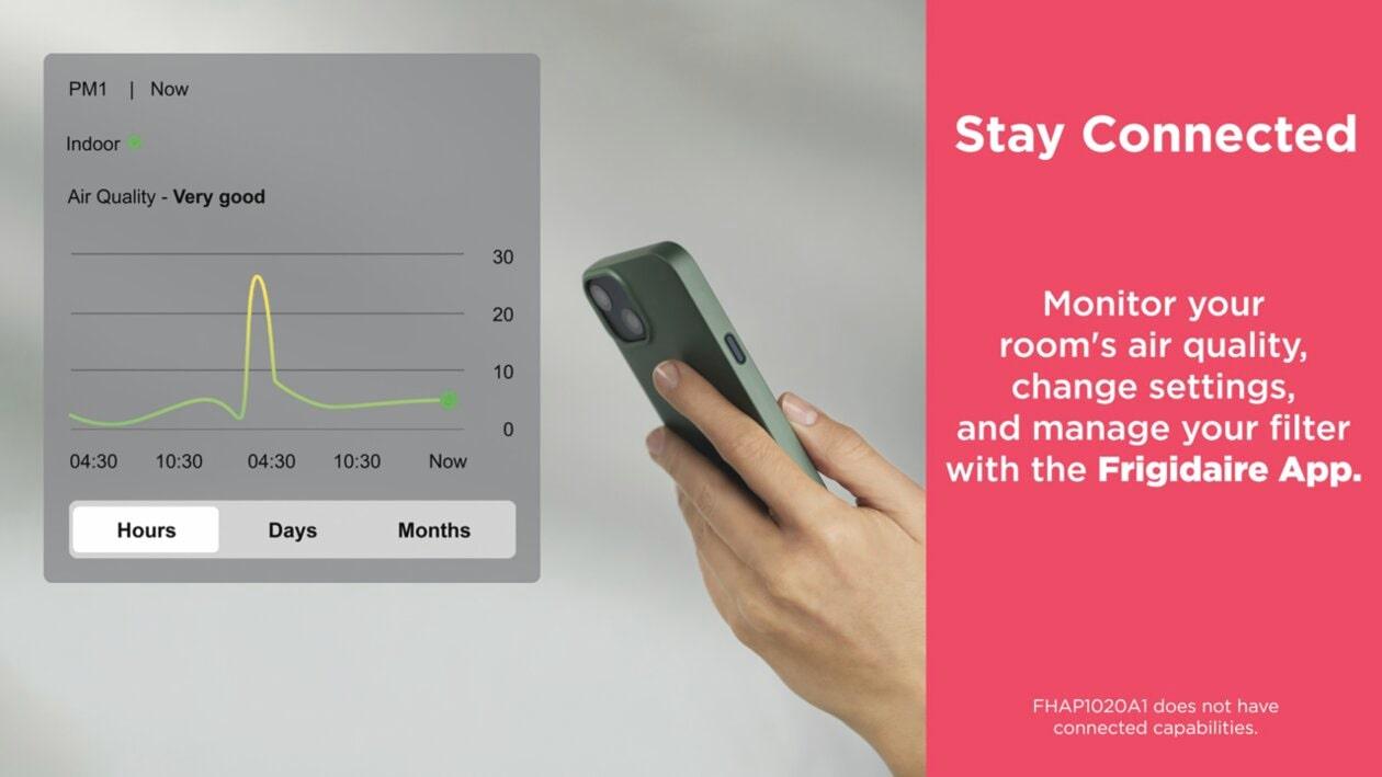 The Frigidaire Air Purifier combines a compact design with powerful performance, making it ideal for small bedrooms or nurseries. This unit effectively eliminates allergens, promoting easier breathing and a healthier lifestyle. With its Air Quality Monitoring Technology, you can effortlessly track your home's air quality using the Frigidaire App, and its ultra-quiet operation at just 20 dBA ensures you can enjoy a peaceful, undisturbed home environment.