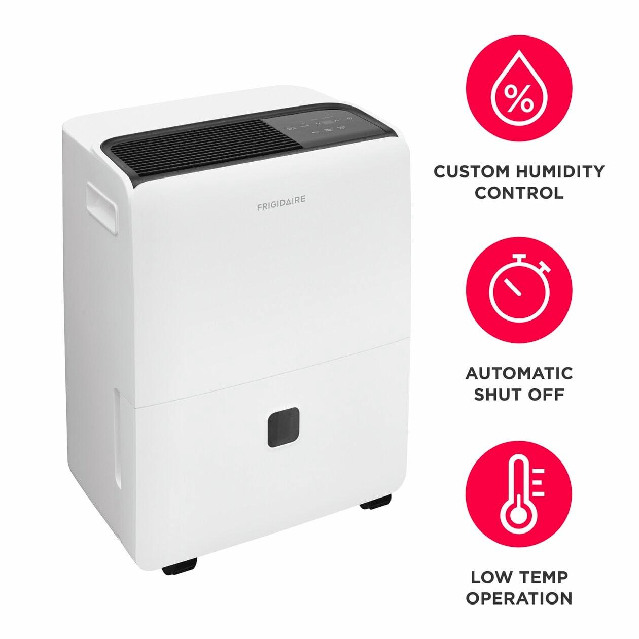 The Frigidaire 60 Pint Dehumidifier with Built-In Pump discharges moisture in an upward direction, either into a sink or out of a window helping make dehumidifying your house hassle-free. The custom humidity controls allow you to easily maintain your desired comfort levels. Keep your dehumidifier working efficiently with our easy-to-clean washable filter.