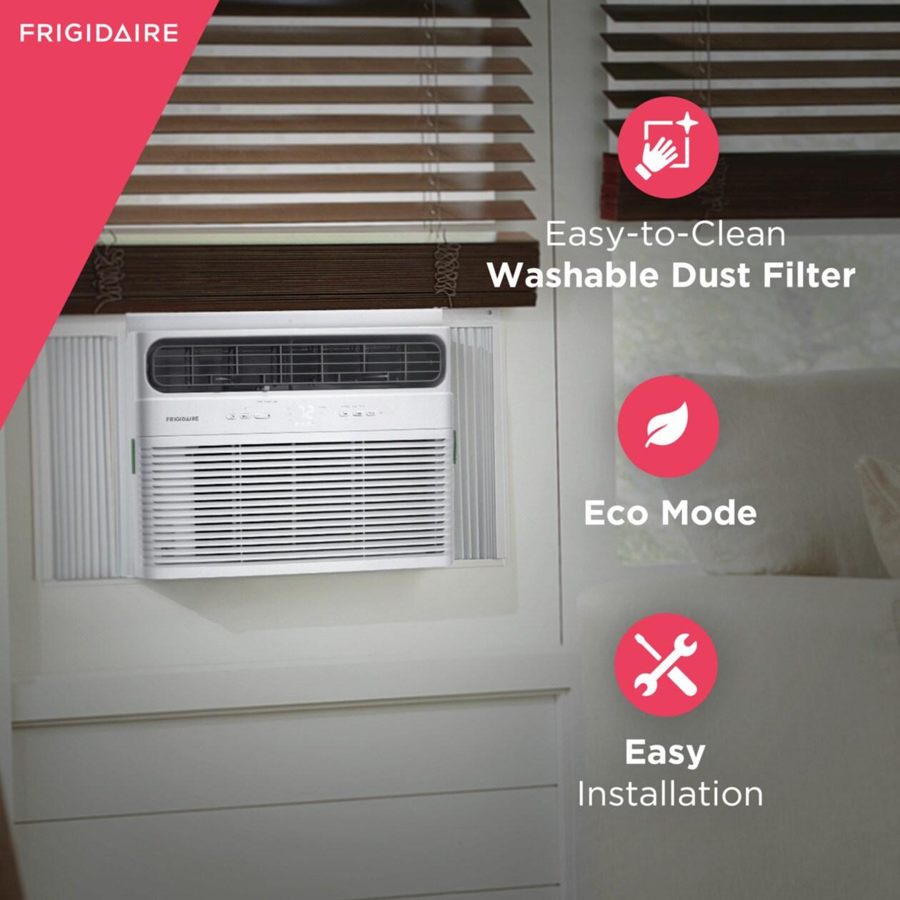 The Frigidaire 8,000 BTU Window-Mounted Room Air Conditioner is more than your standard air conditioner: a supplemental heating function allows you to use this unit year-round. The even weight distribution and slide-out chassis helps make this unit easy to install. Capture dust from the air and keep your air conditioner working efficiently with our easy-to-clean washable dust filter.