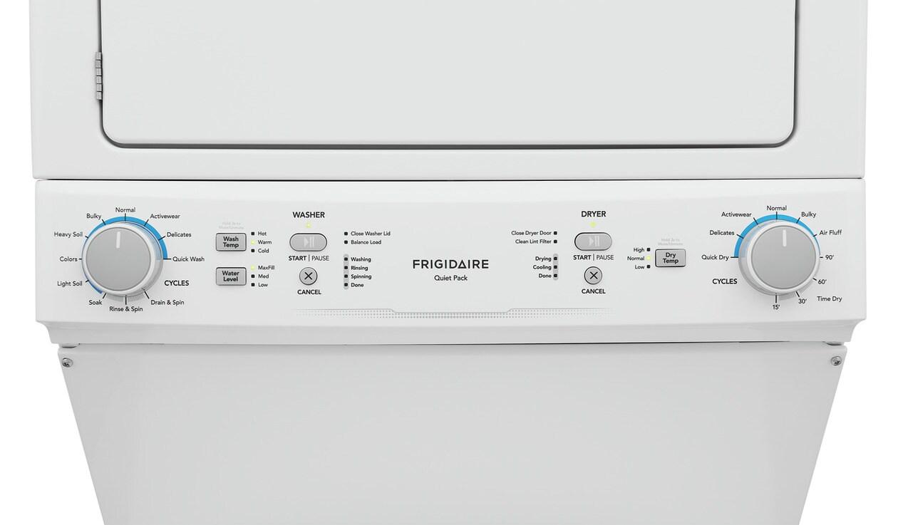 The brand Frigidaire FLCE7523AW laundry center delivers powerful cleaning and convenience in a space-saving vertical configuration. It features a large-capacity 3.9 cu ft stainless steel drum washer with 11 wash cycles, MaxFill™ water level options, and a sound‑dampening system for quieter operation. The matching 5.5 cu ft electric dryer includes 10 advanced drying cycles and sensor-based drying for optimal results. Its long-vent design supports up to 127 ft of ducting, making it ideal for tight laundry rooms or closets. Complete with cycle status lights, end-of-cycle notification, digital and knob controls, bleach dispenser, and sturdy leveling legs, this unit simplifies laundry day with reliable, efficient performance for any household.