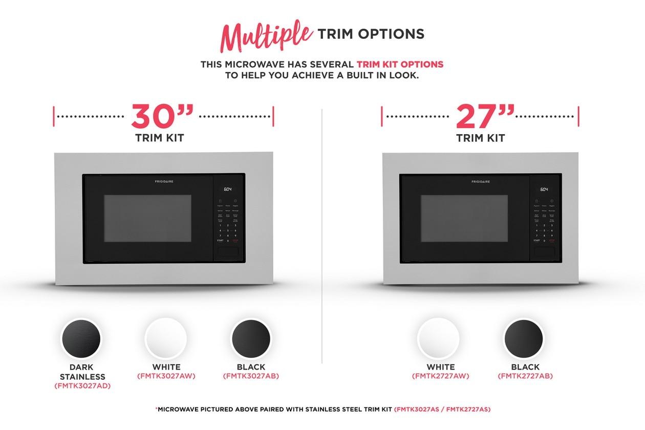 The Frigidaire 1.6 cu. ft. Built-In Microwave includes Sensor Cook, Sensor Reheat and Quick Start options offer time savings so that you can put delicious meals on the table, faster. Plus, enjoy premium interior LED lighting - making it easier to monitor your food while it cooks. Complete the look of your kitchen with stylish built-in trim kits available in 27" and 30" widths.